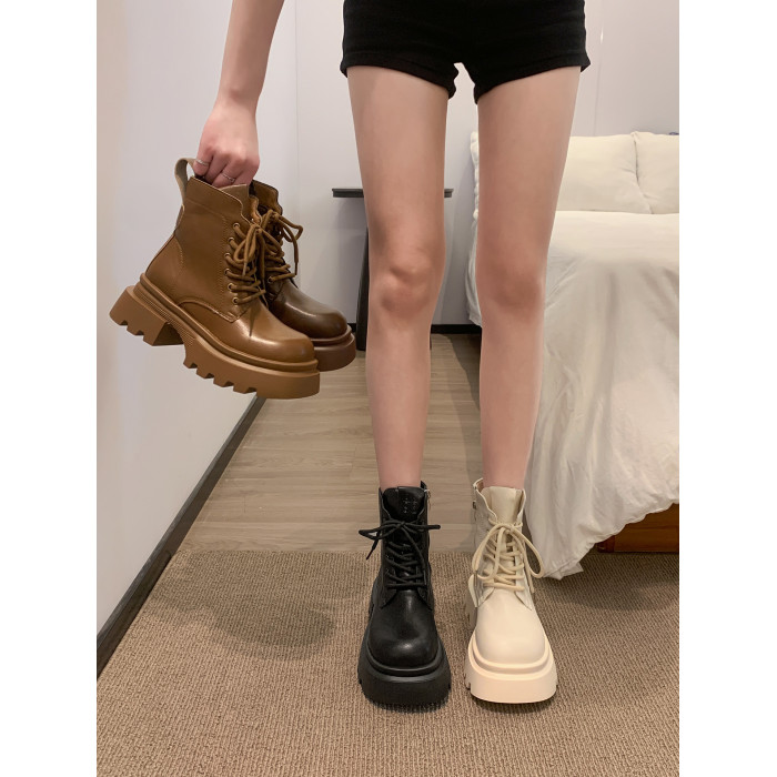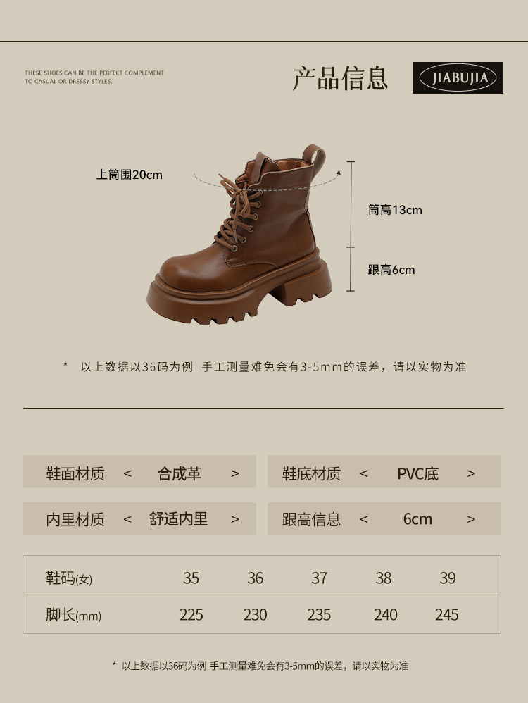 賈不假馬丁靴女款2026新款春季小個子百搭時尚靴厚底鞋英倫風短靴
