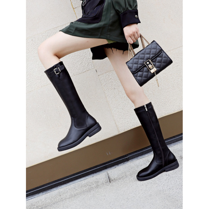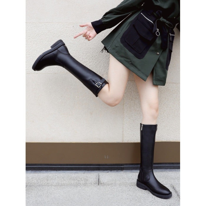 騎士靴女高筒2025秋季新款真皮馬靴小個子長筒不過膝靴子女馬丁靴