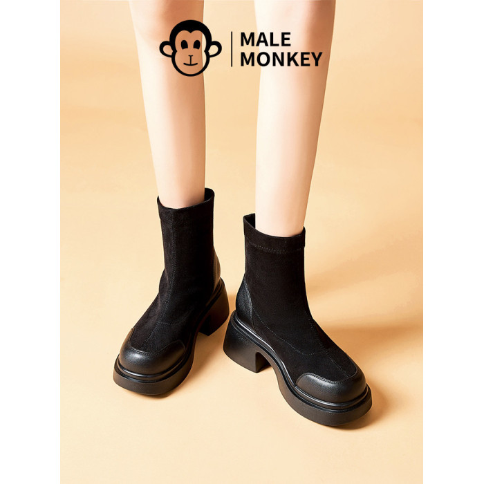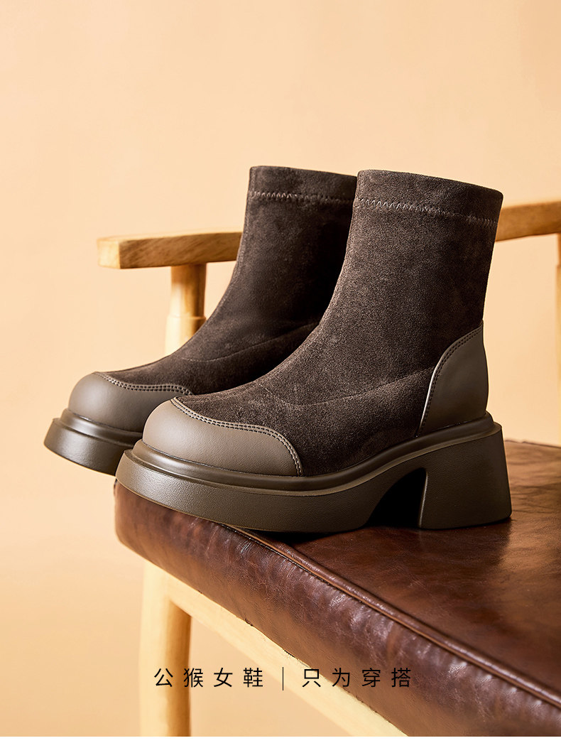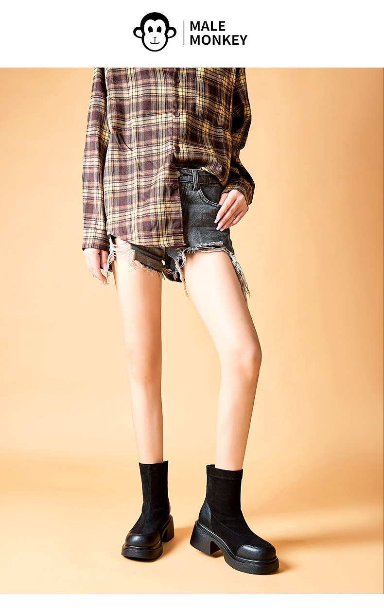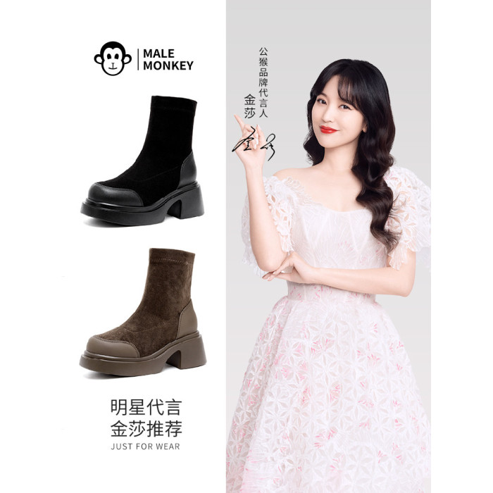 明星代言 公猴高跟瘦瘦靴厚底增高馬丁靴女秋冬美拉德短靴襪子靴