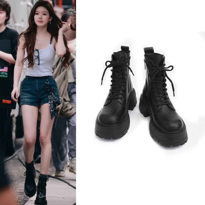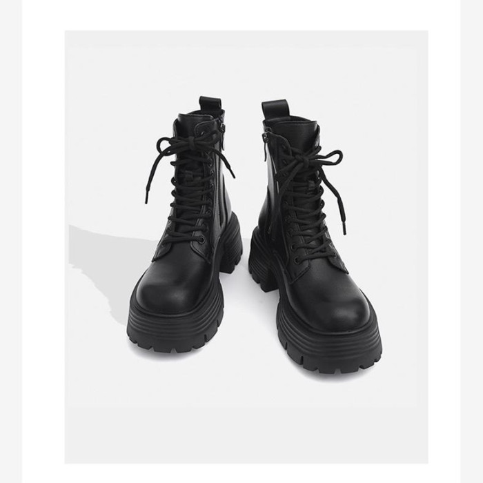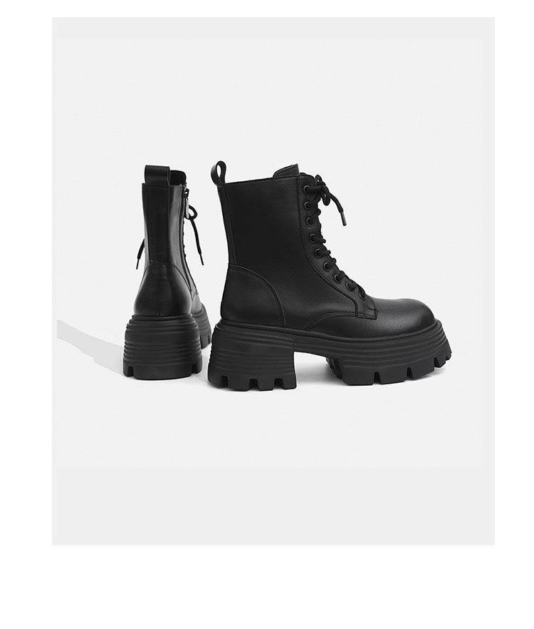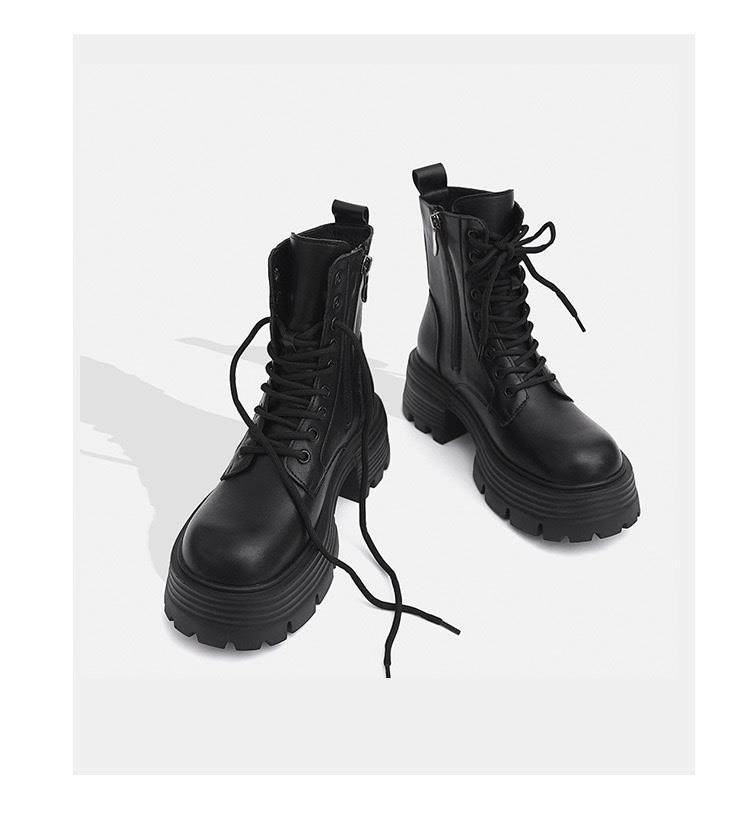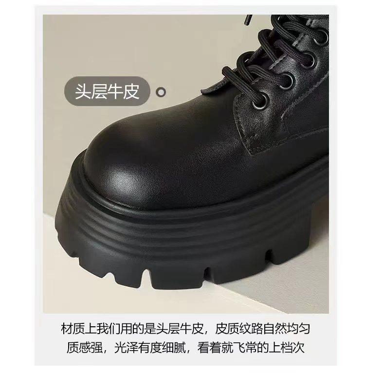 日本GP趙露思馬丁靴女秋冬季單靴厚底增高英倫風瘦瘦靴短靴系帶靴