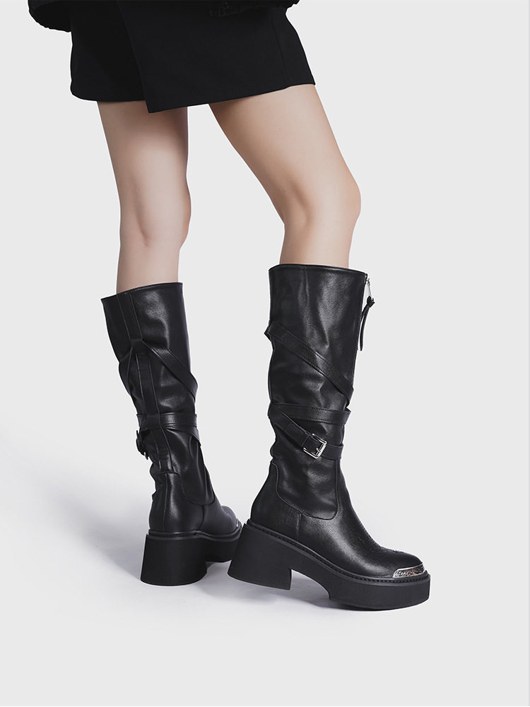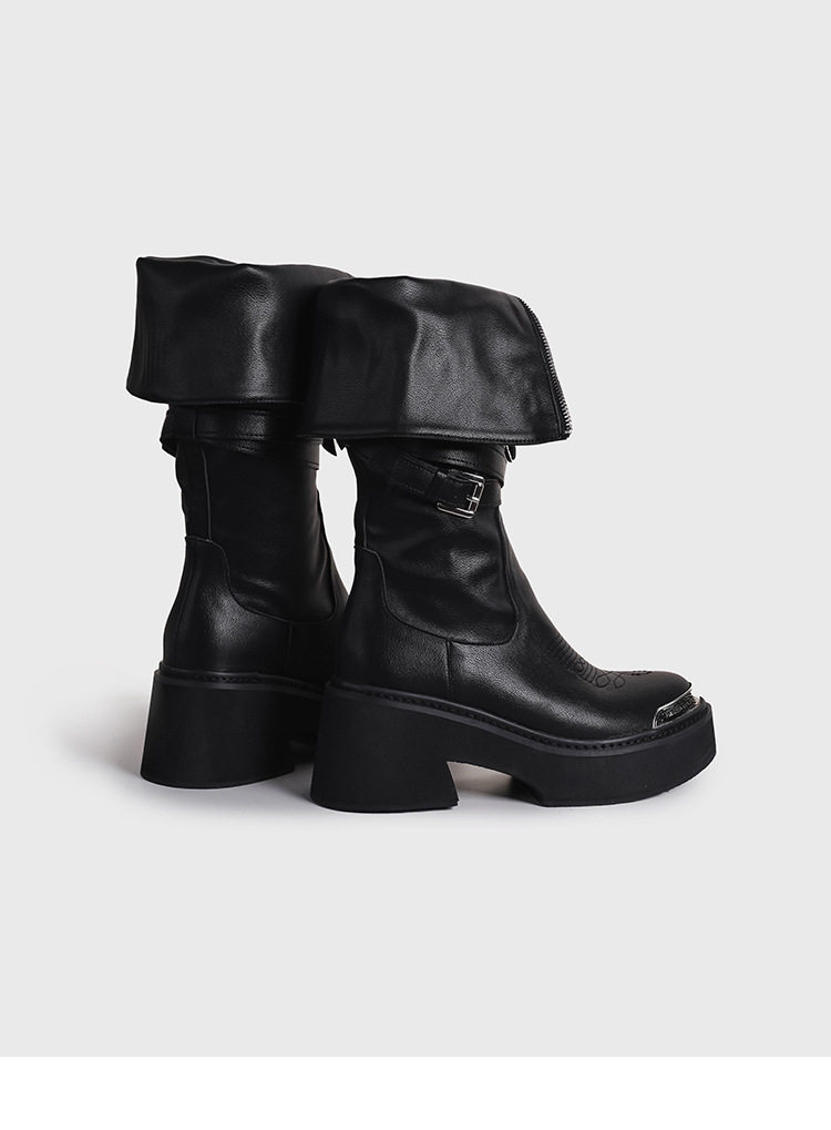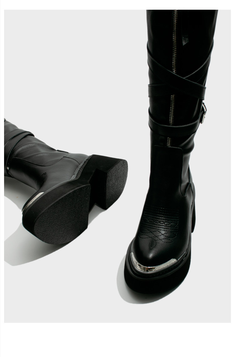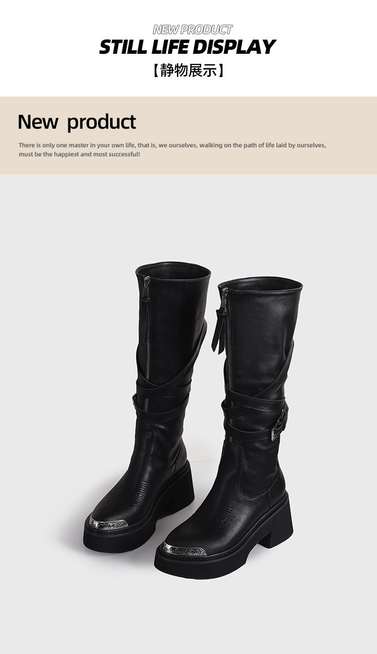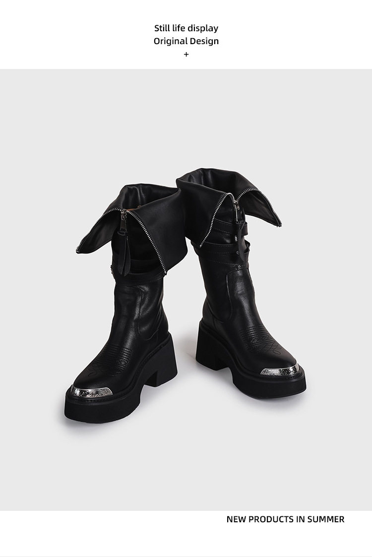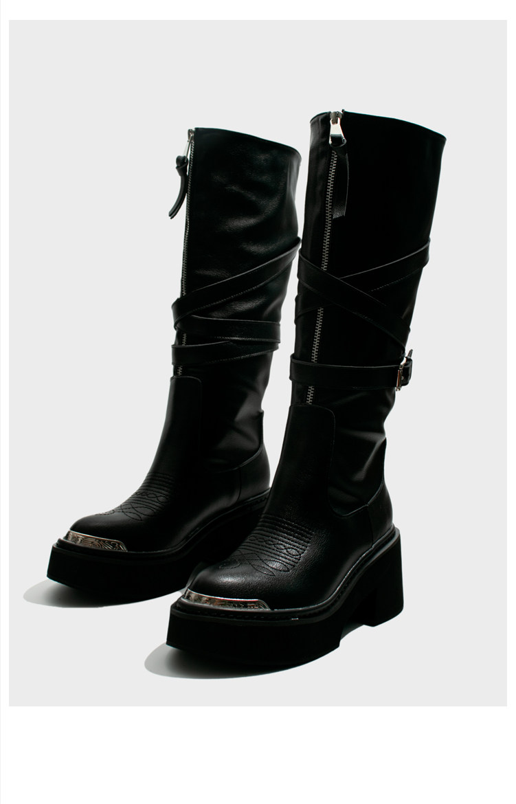 Visual focus 鉚釘重金屬高筒靴女y2k港潮龐克松糕厚底長筒時裝靴