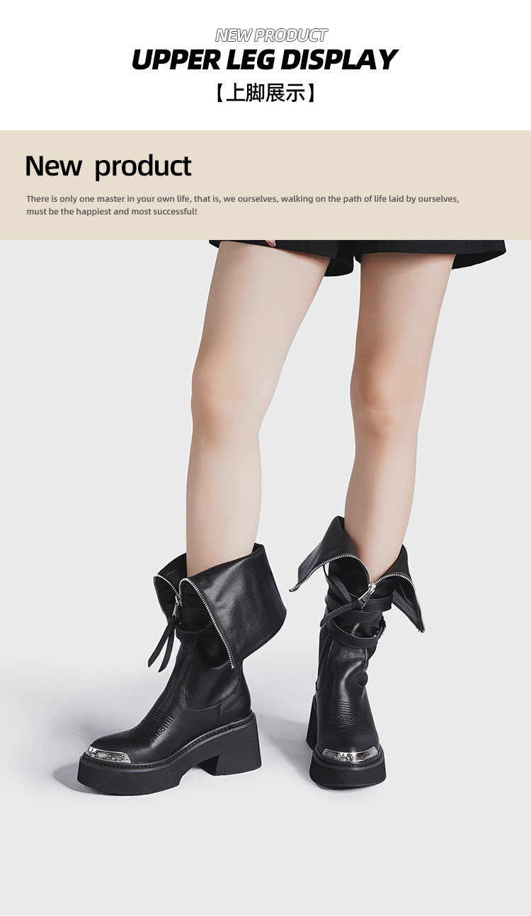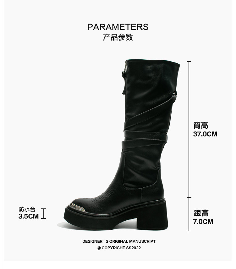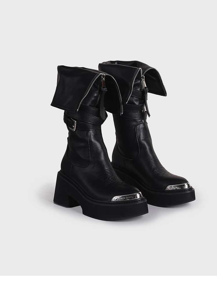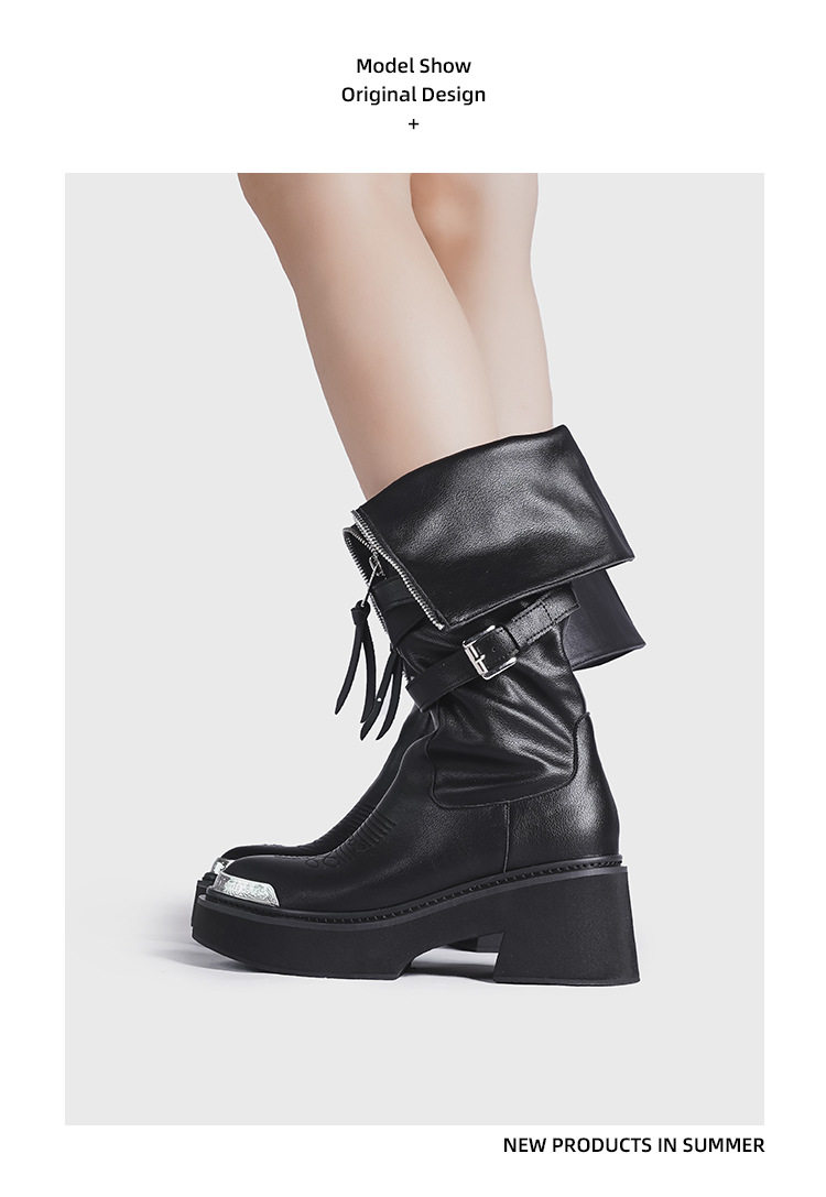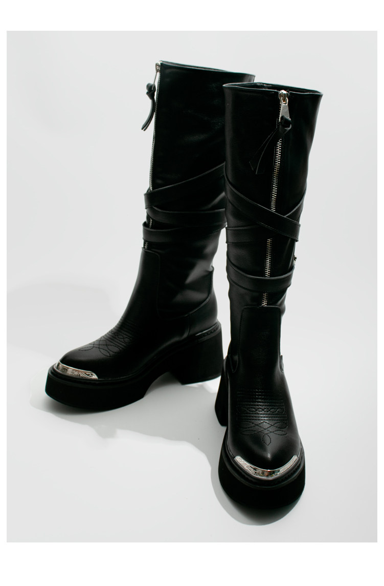 Visual focus 鉚釘重金屬高筒靴女y2k港潮龐克松糕厚底長筒時裝靴