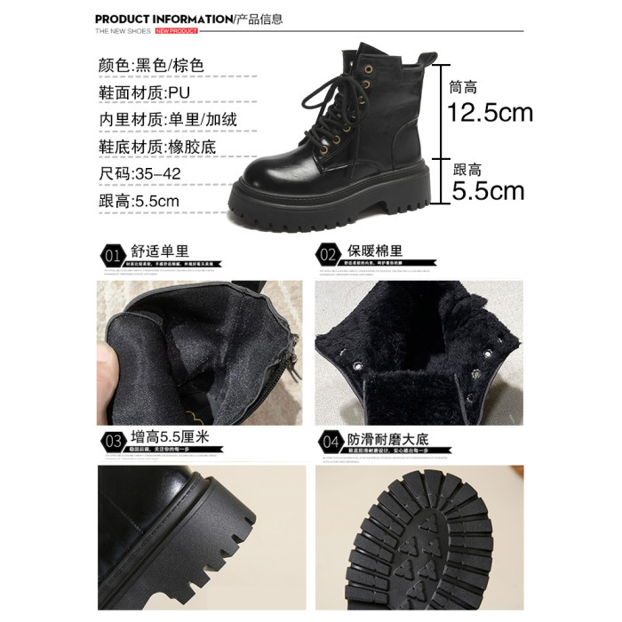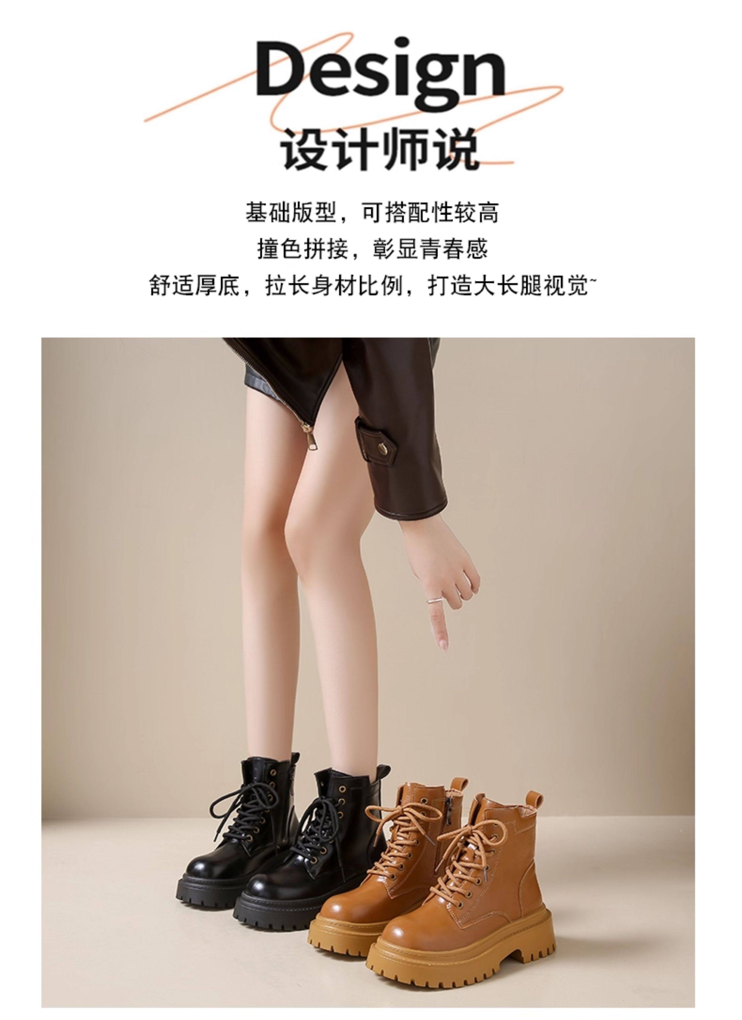 厚底馬丁靴女款加絨靴子2026新款秋冬季英倫風增高短靴復古機車靴