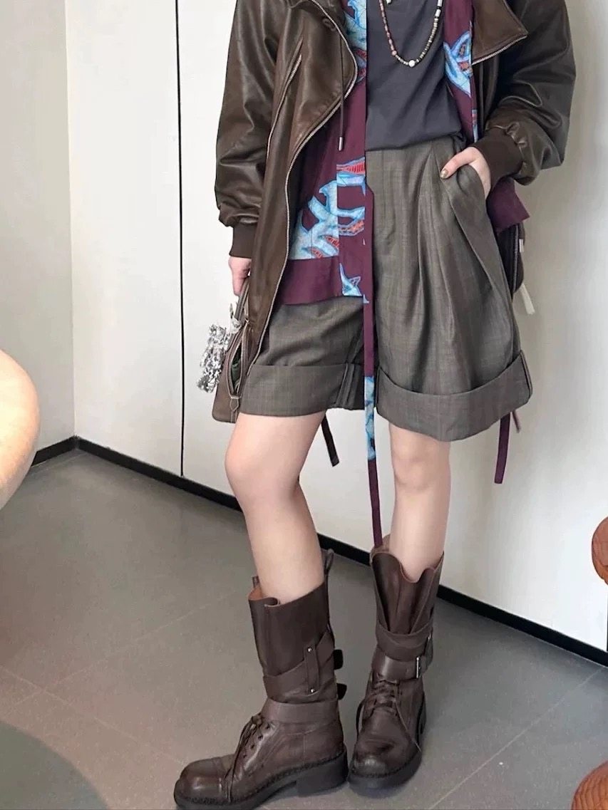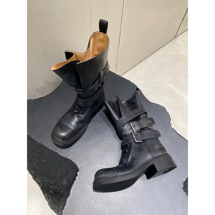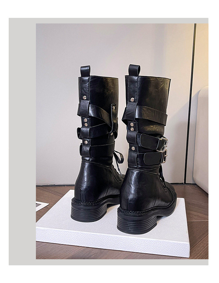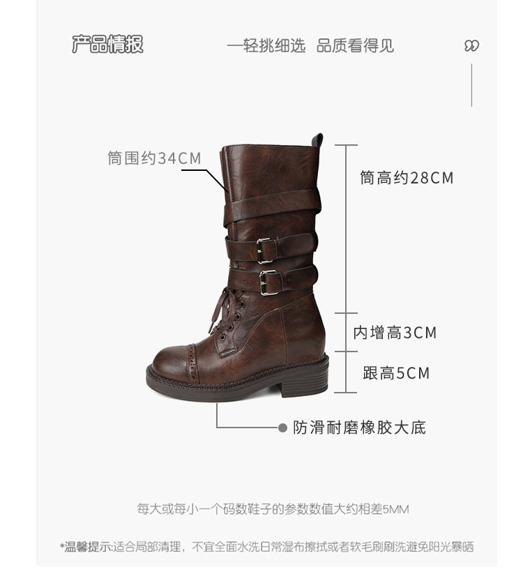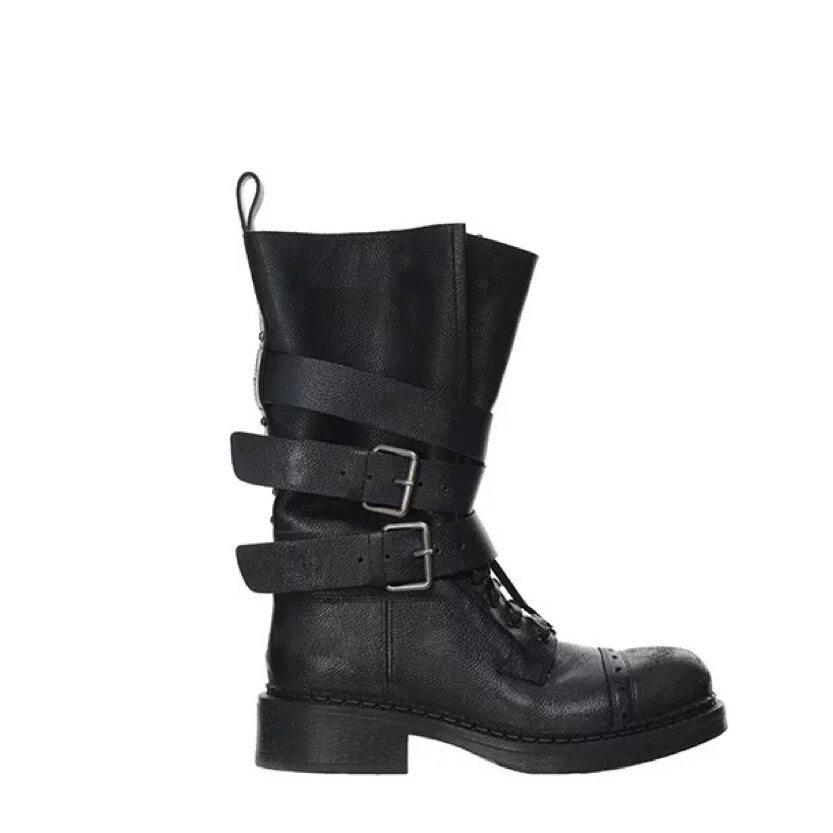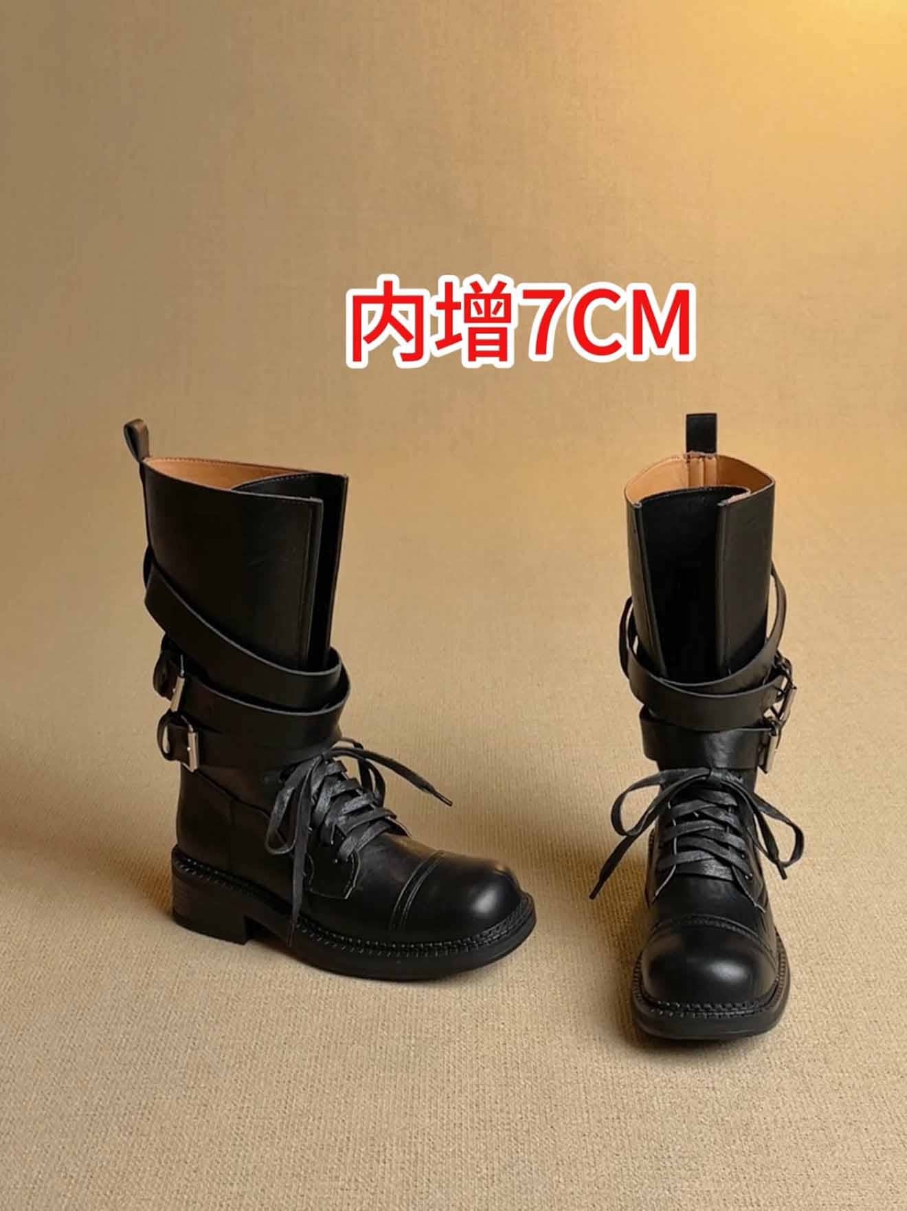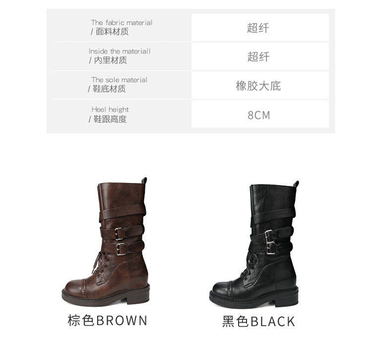牛皮版~真皮厚底粗跟擦色馬丁靴女2025新款中筒皮帶釦機車靴單靴