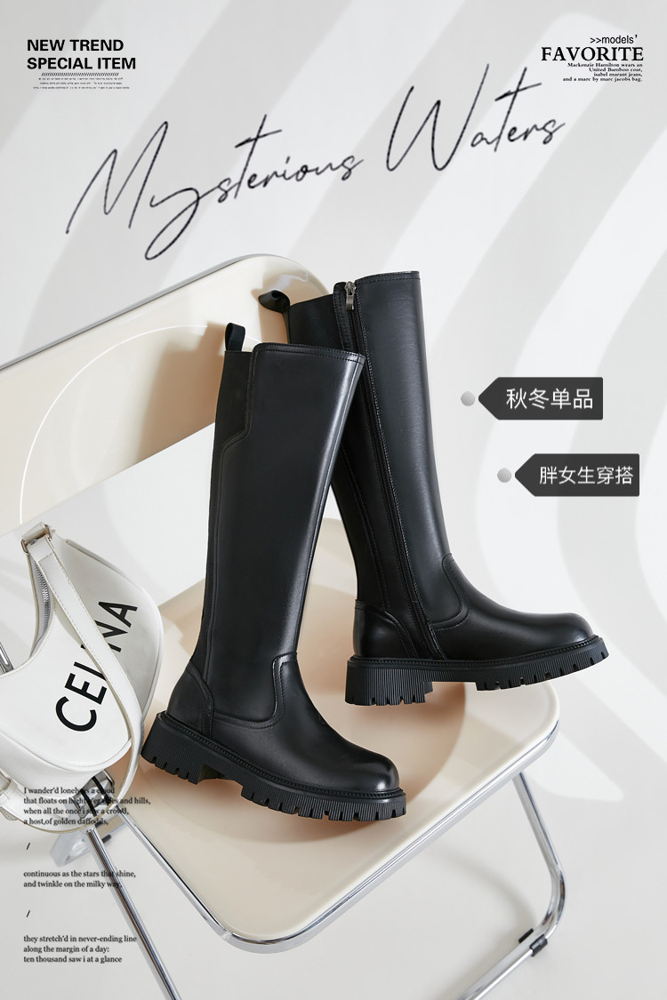 秋冬大碼女靴大筒圍高筒靴 胖mm粗腿騎士靴單靴 不過膝長筒靴加肥