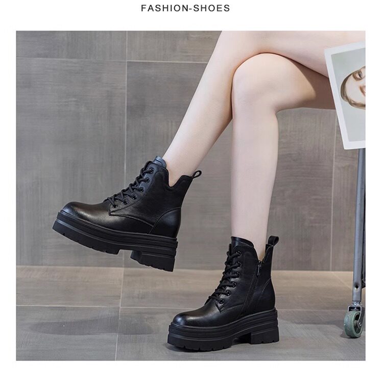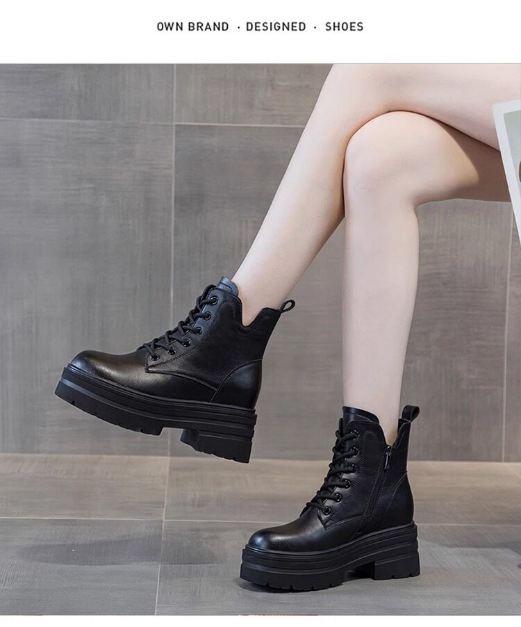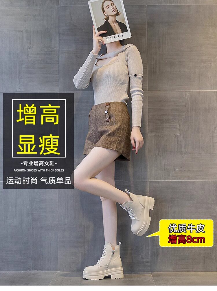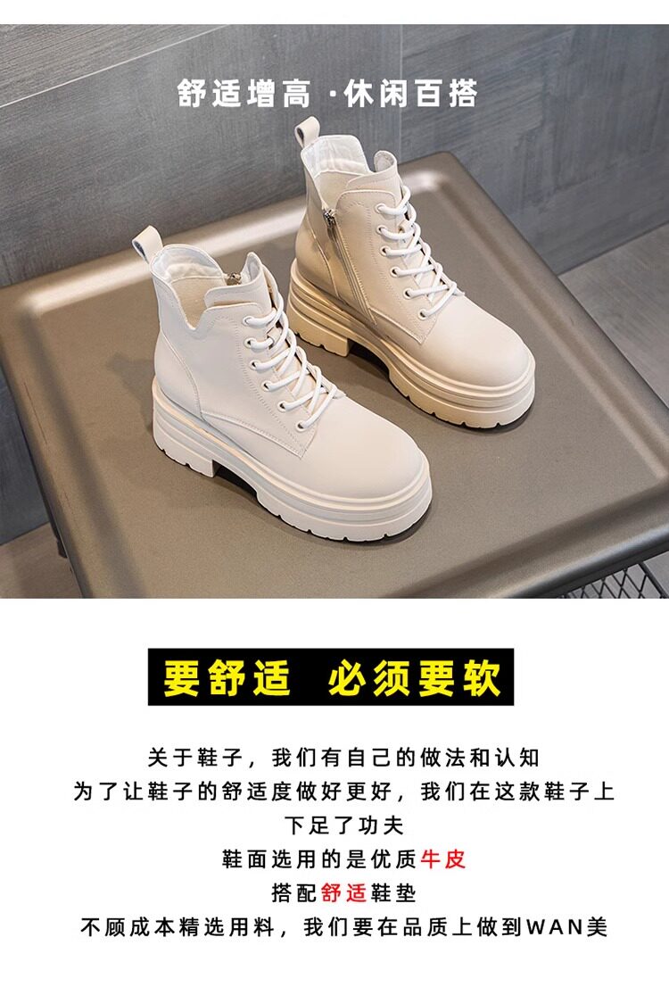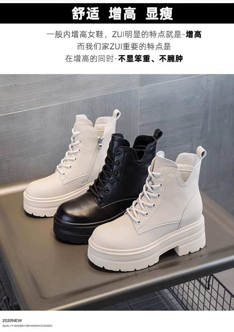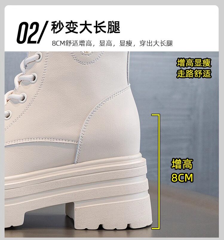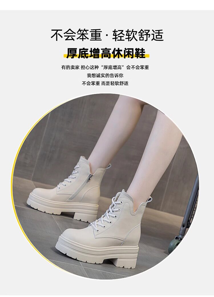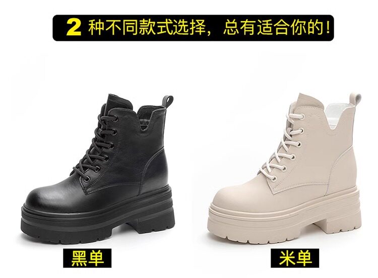 內增高馬丁靴女真皮短靴爆款秋冬新款小個子8cm厚底增高加絨靴子