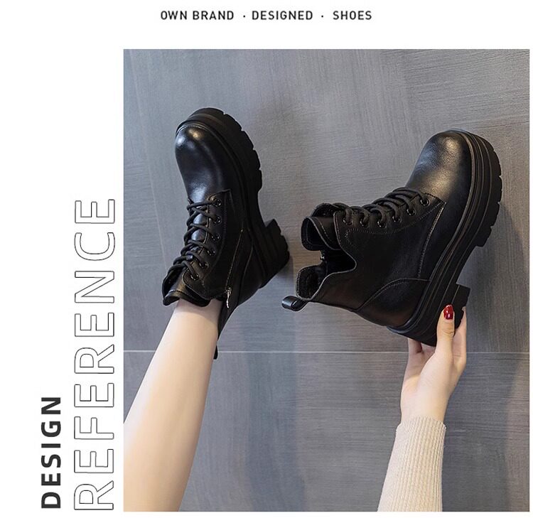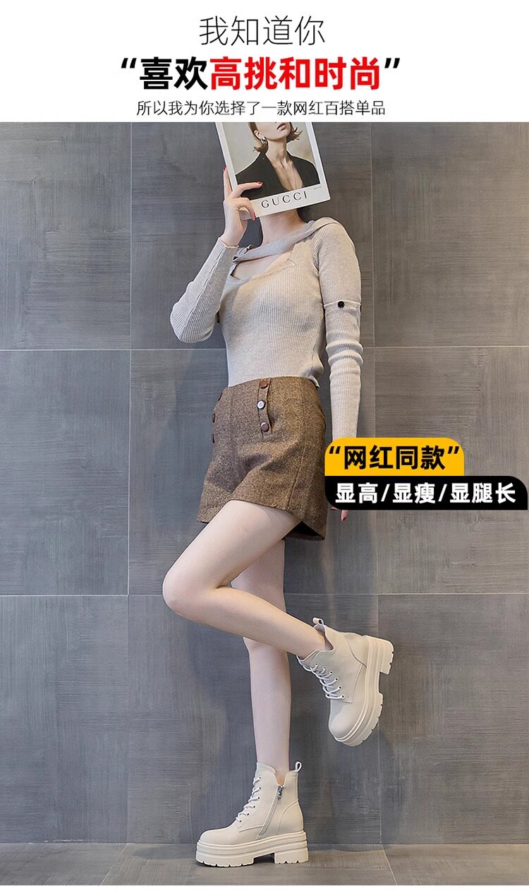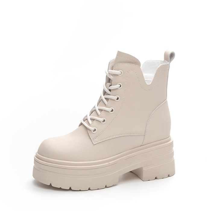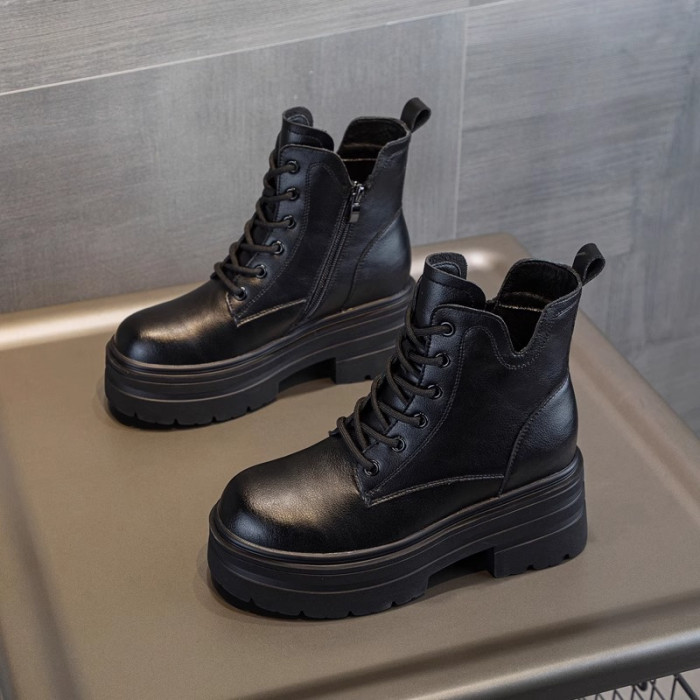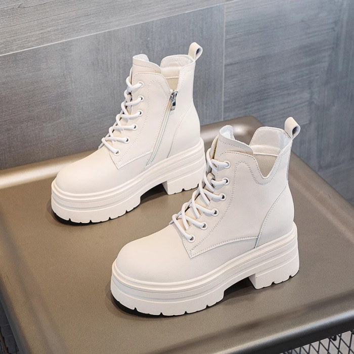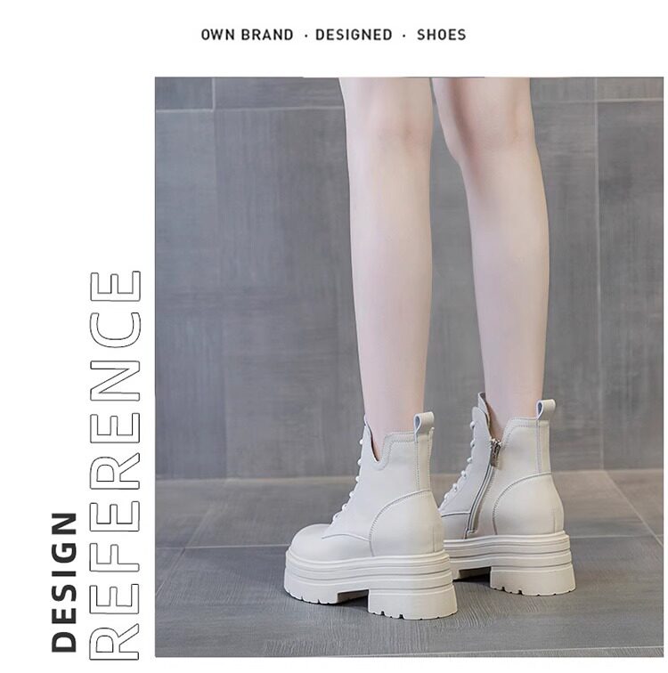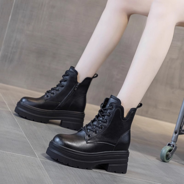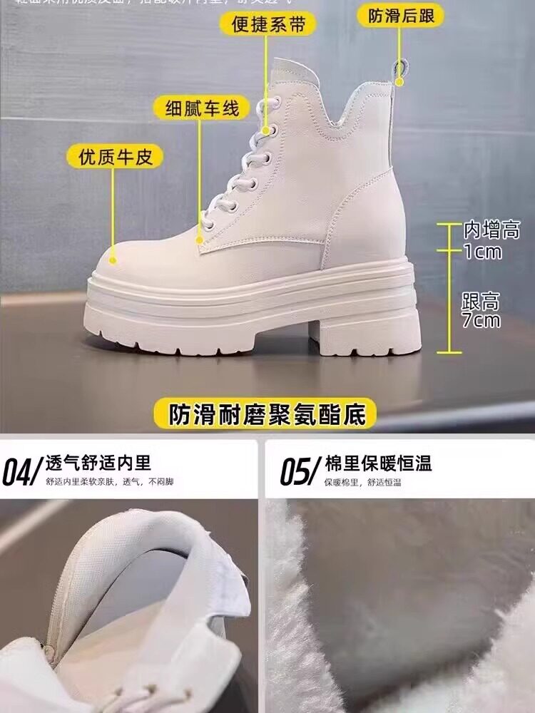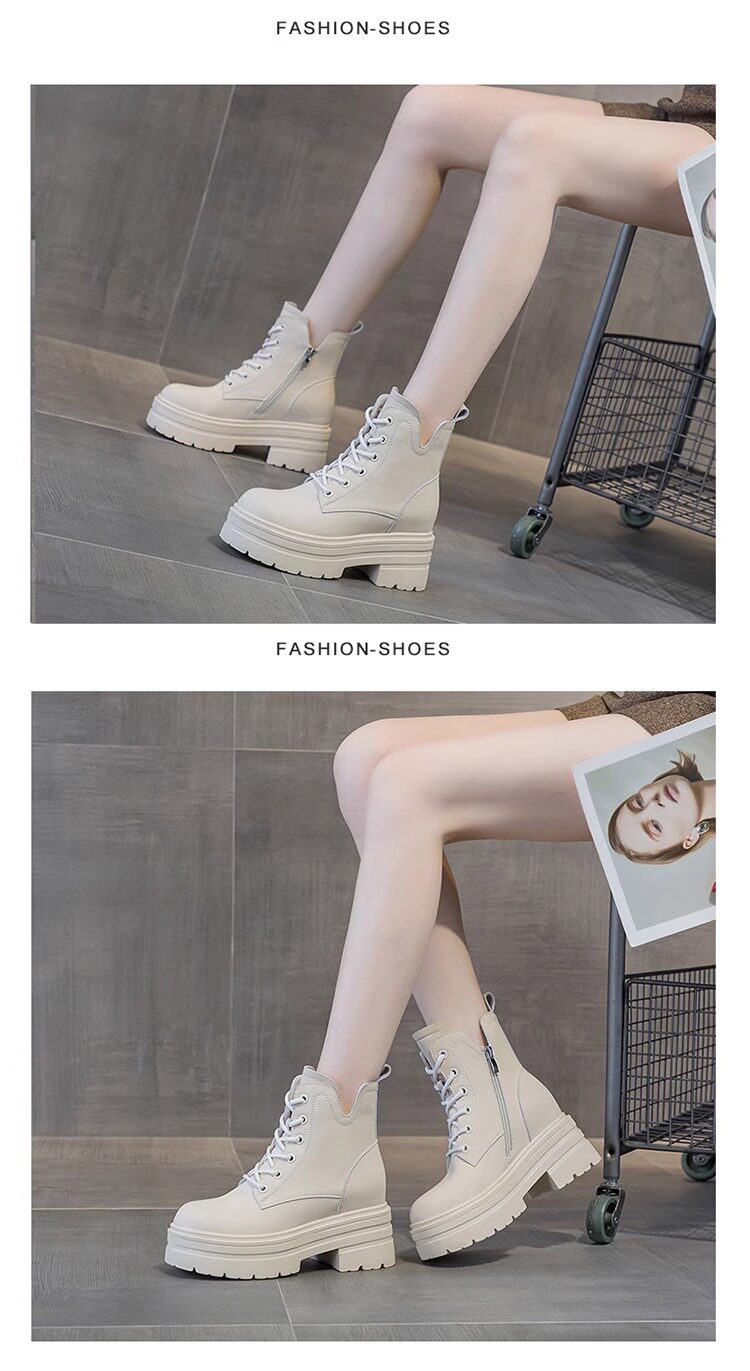 內增高馬丁靴女真皮短靴爆款秋冬新款小個子8cm厚底增高加絨靴子