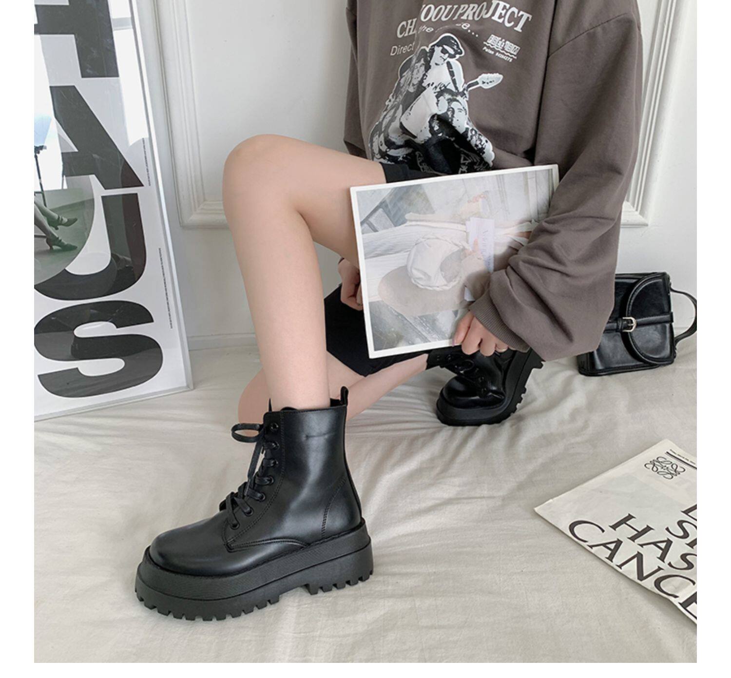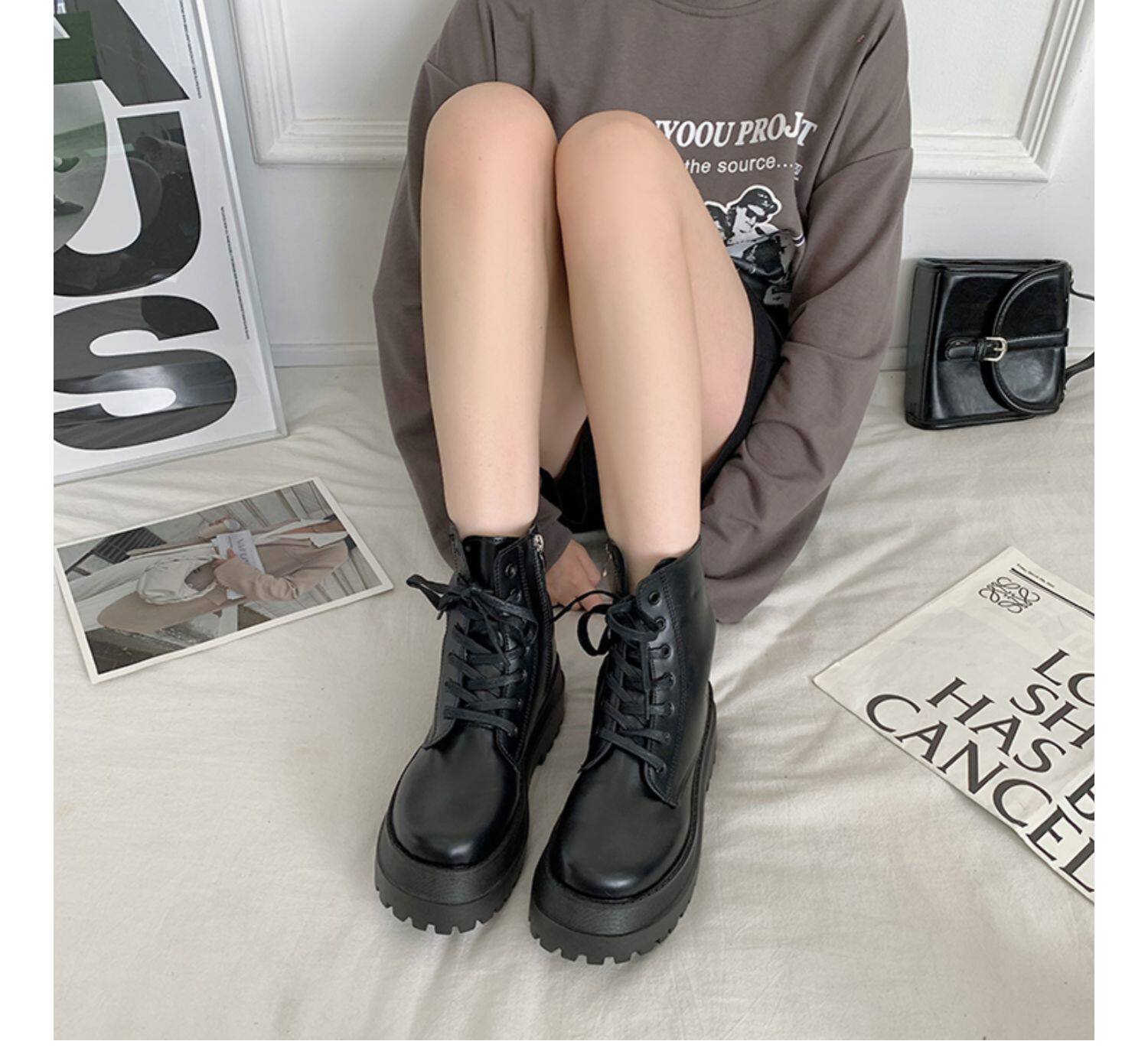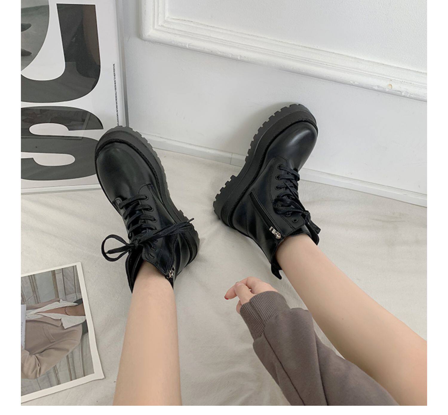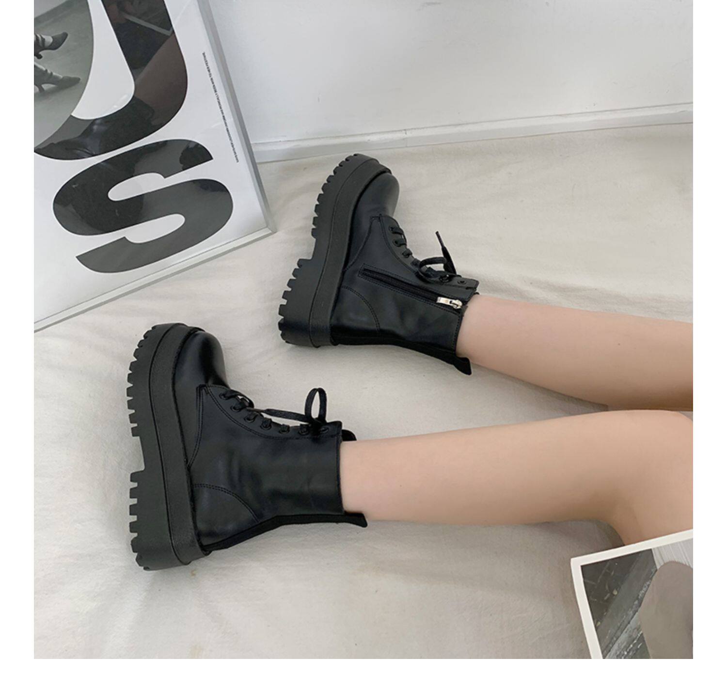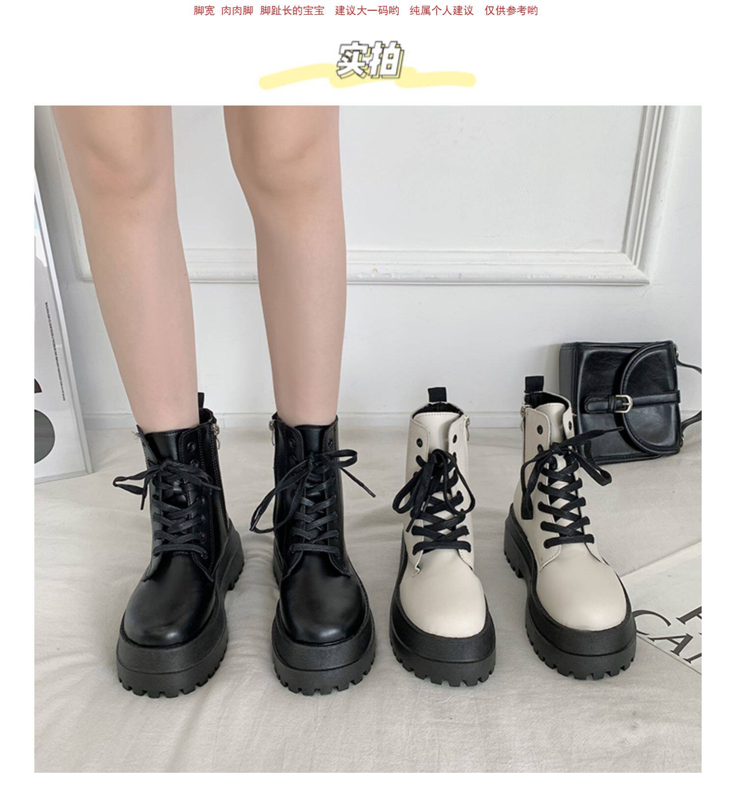 2025厚底馬丁靴女系帶小個子增高短筒靴子秋冬英倫顯腳小短靴鞋子