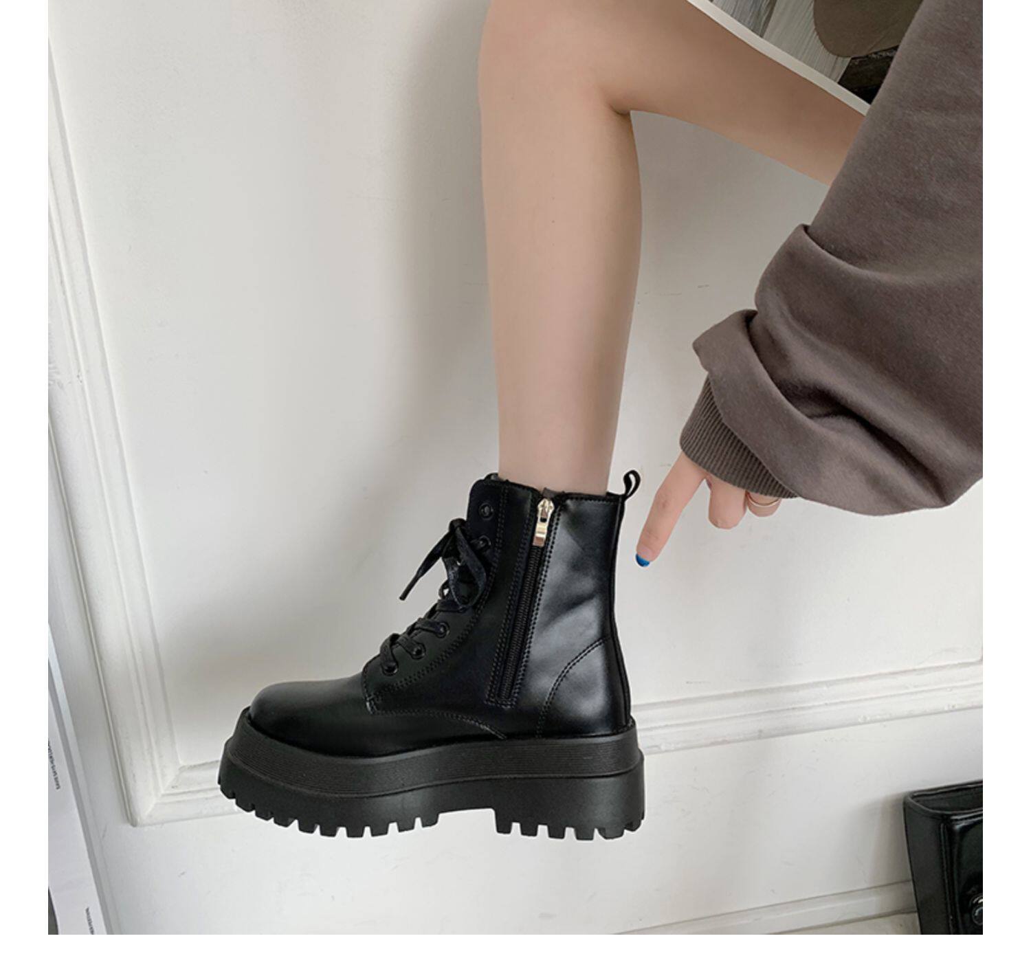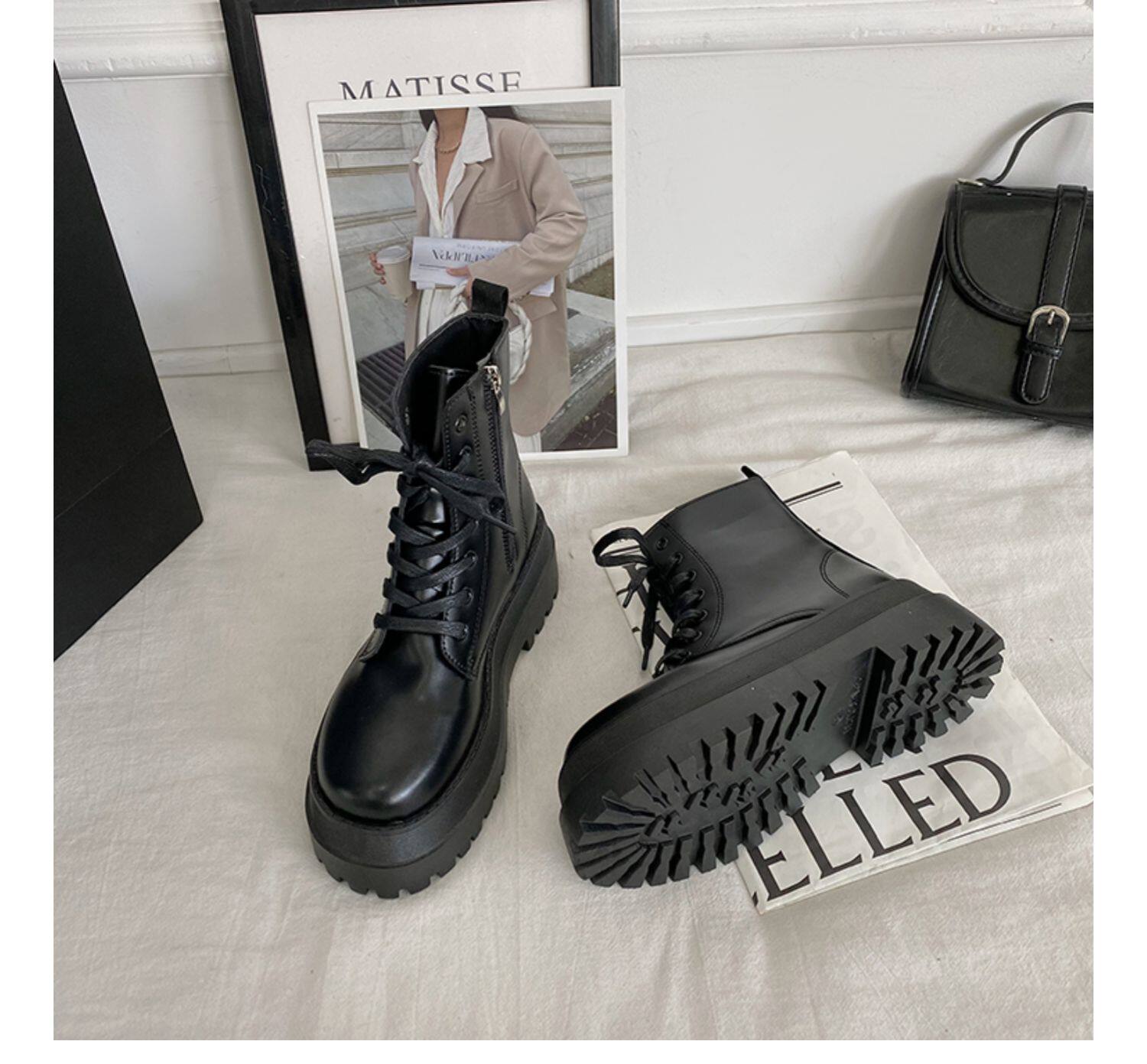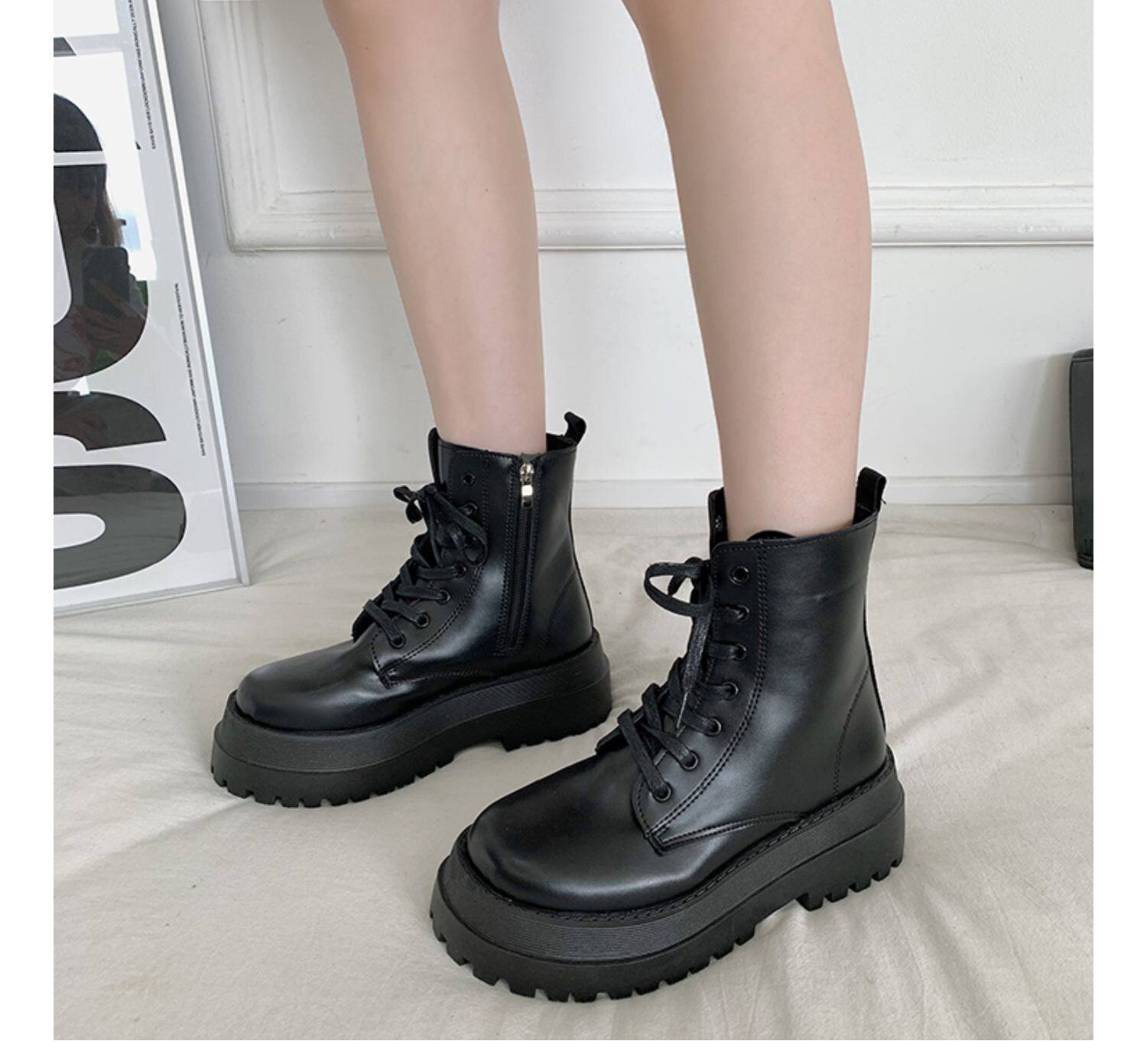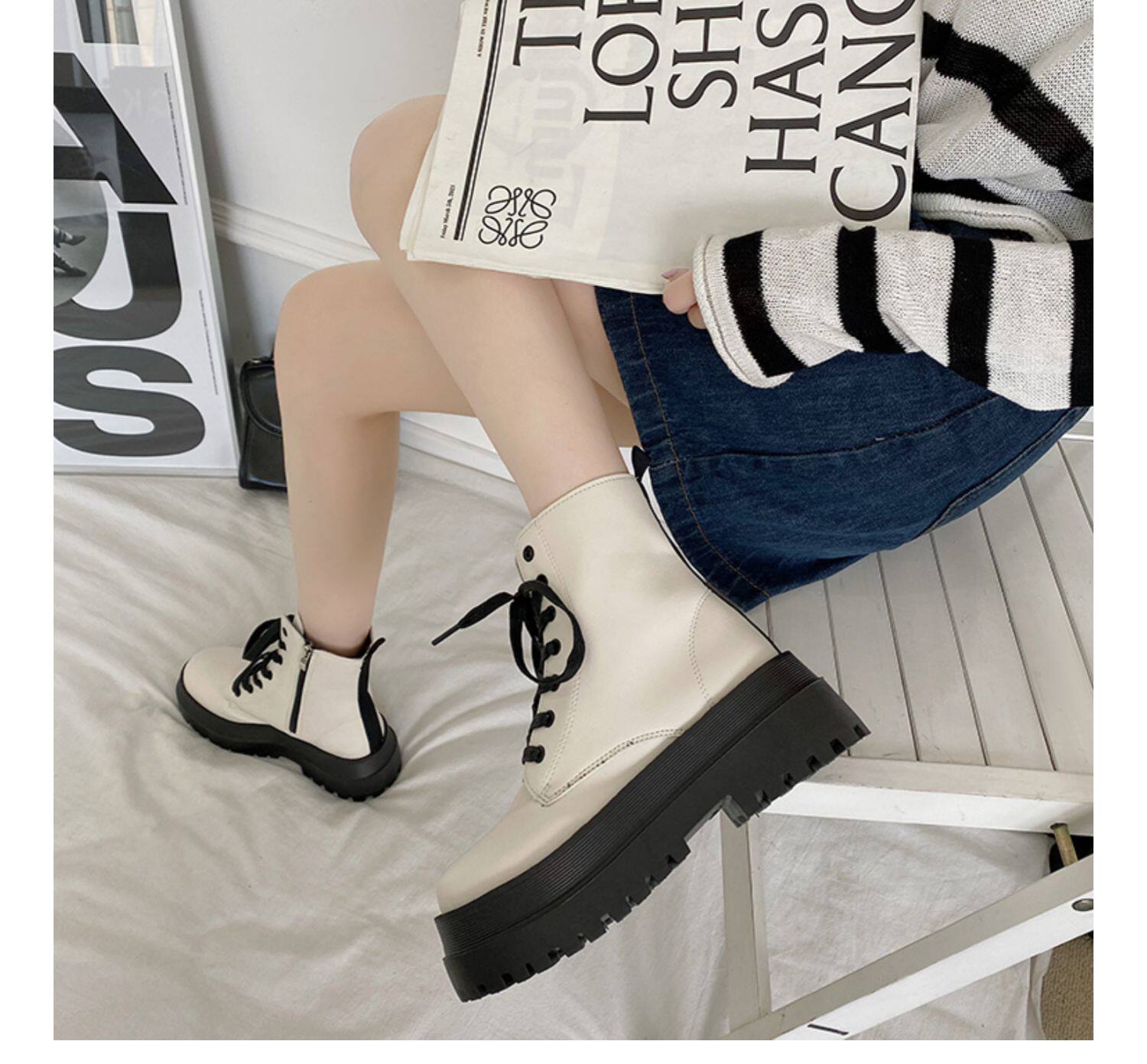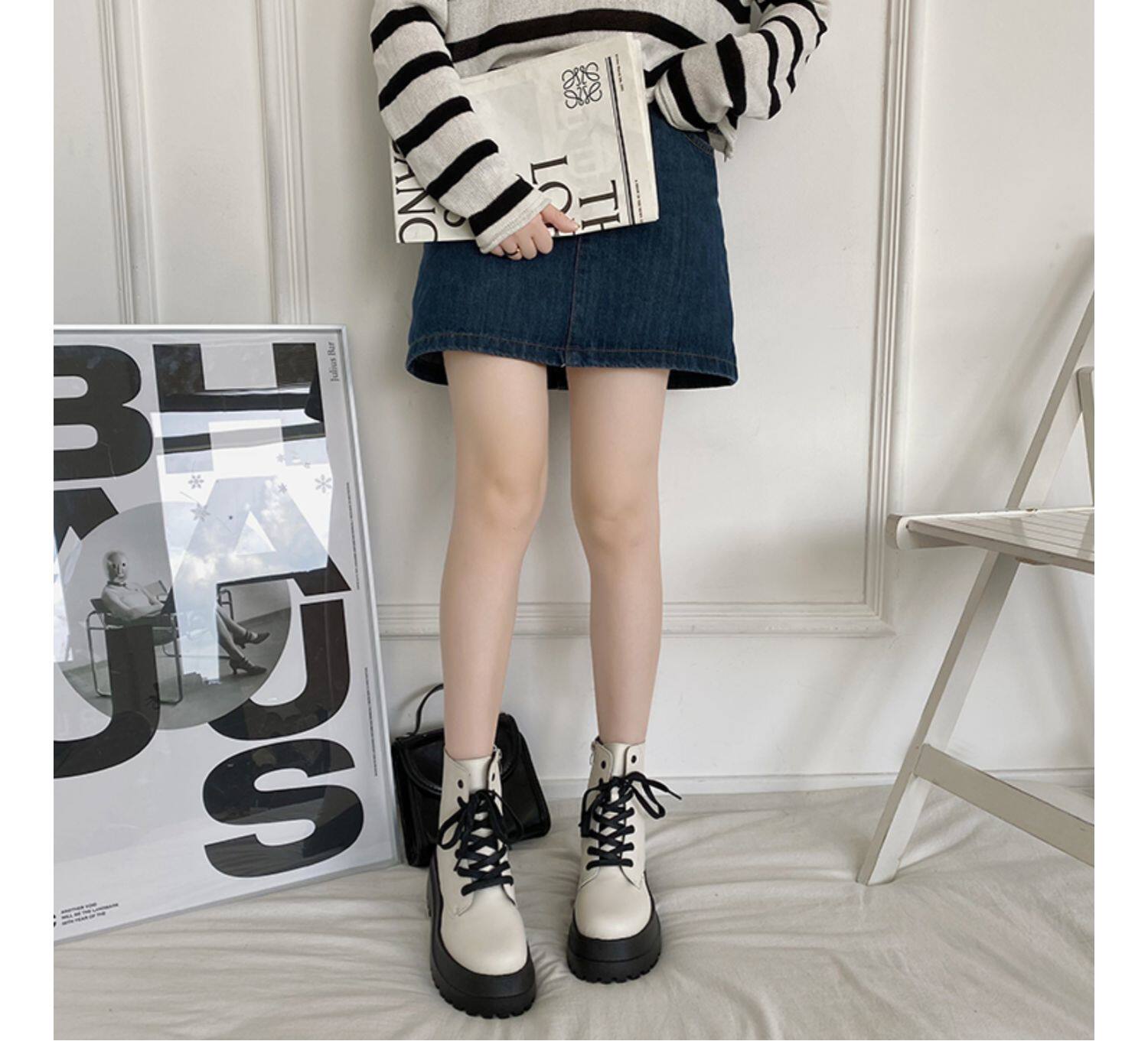 2025厚底馬丁靴女系帶小個子增高短筒靴子秋冬英倫顯腳小短靴鞋子