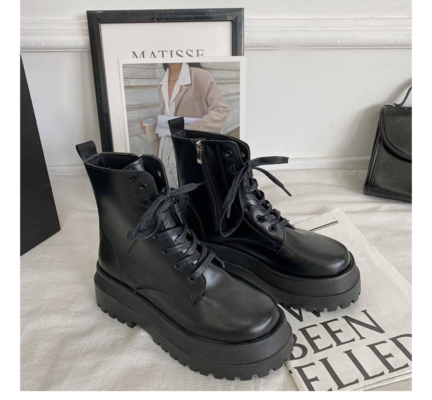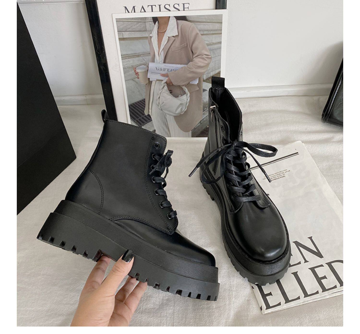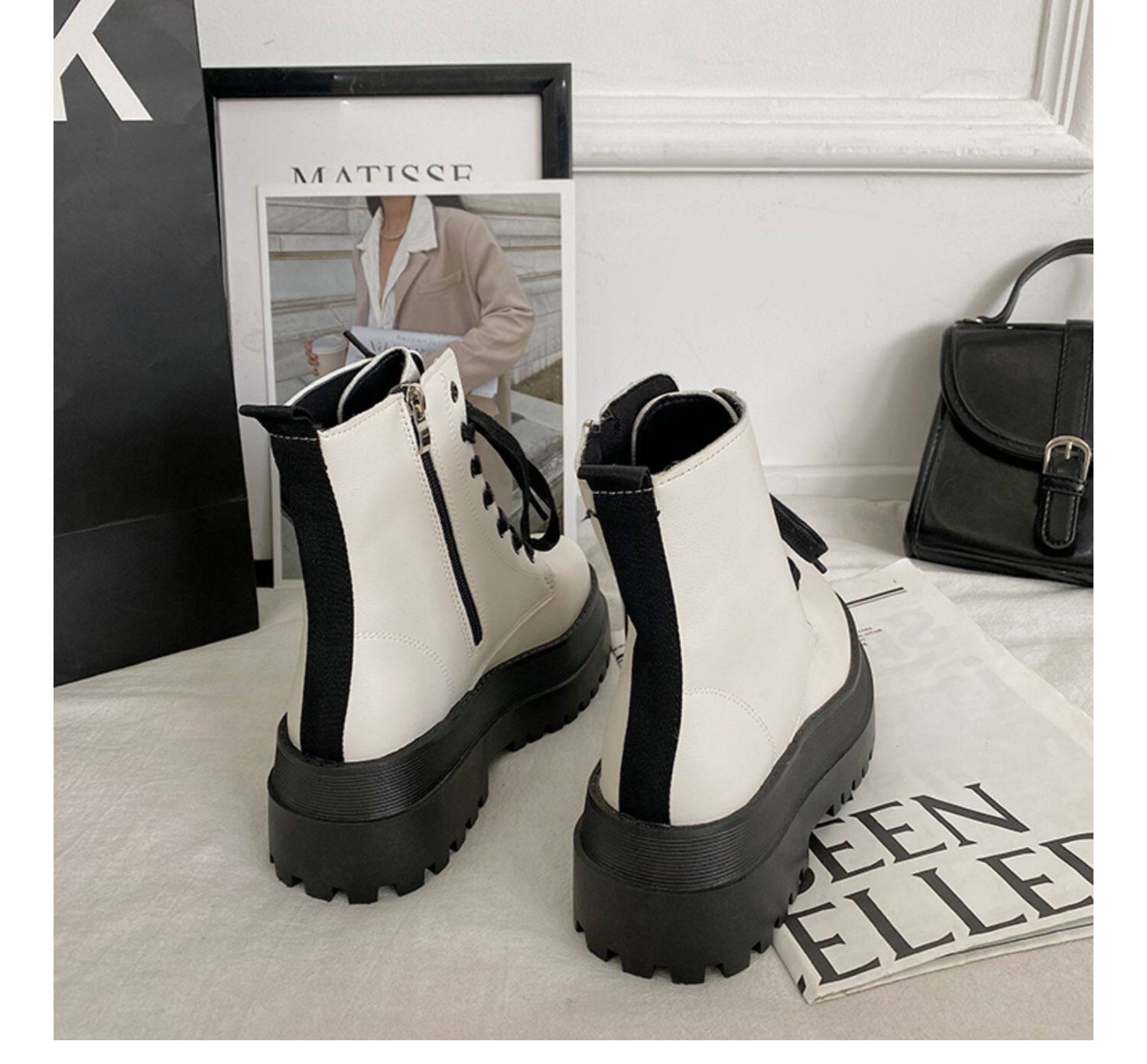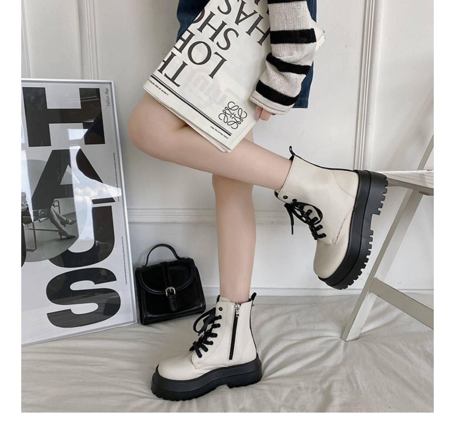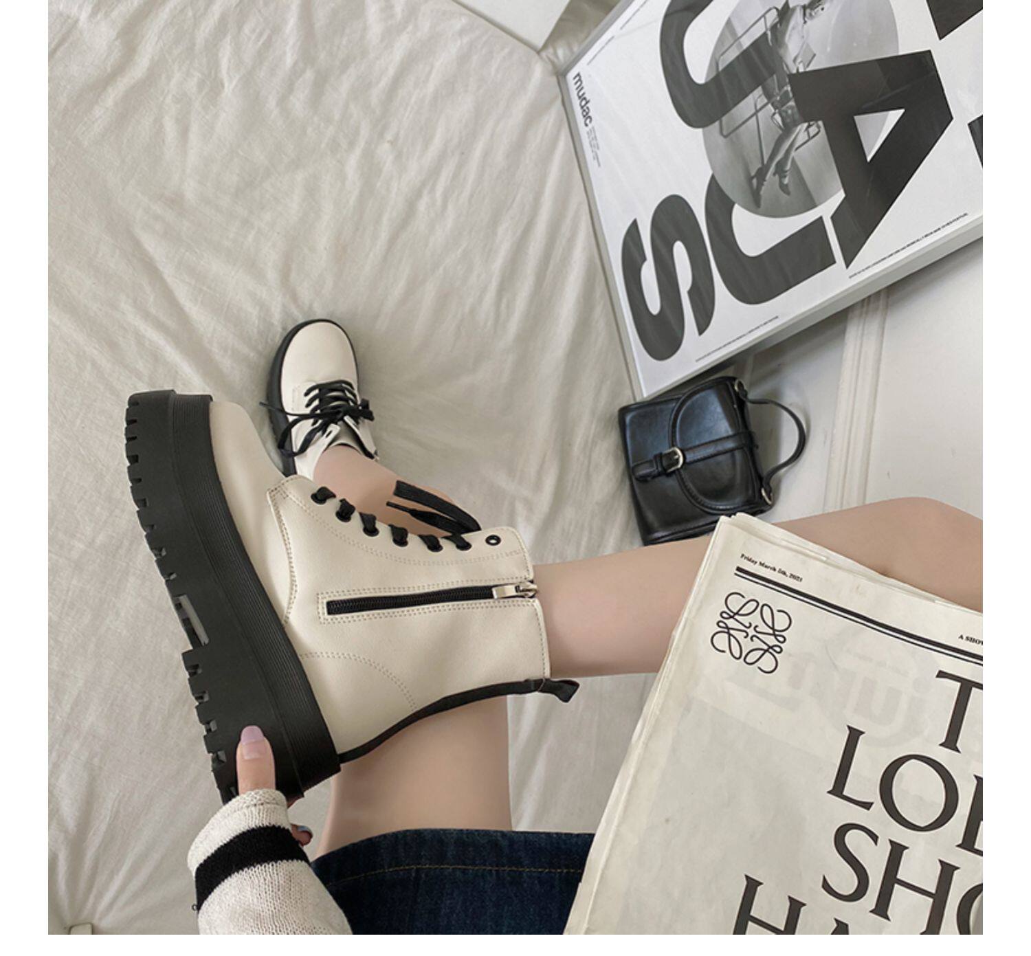 2025厚底馬丁靴女系帶小個子增高短筒靴子秋冬英倫顯腳小短靴鞋子