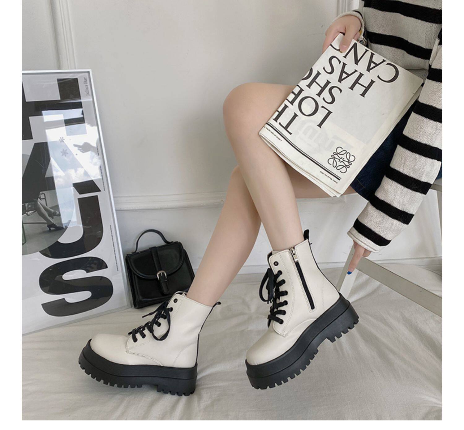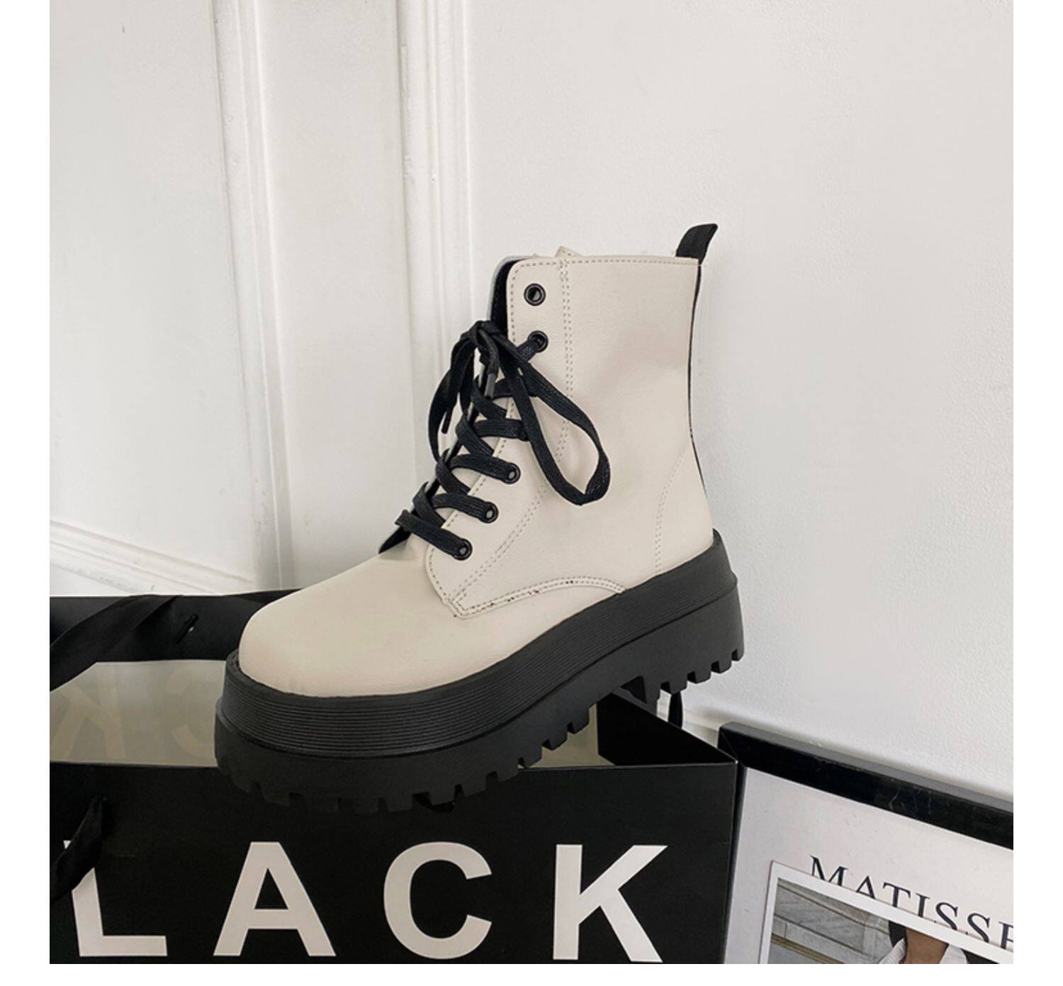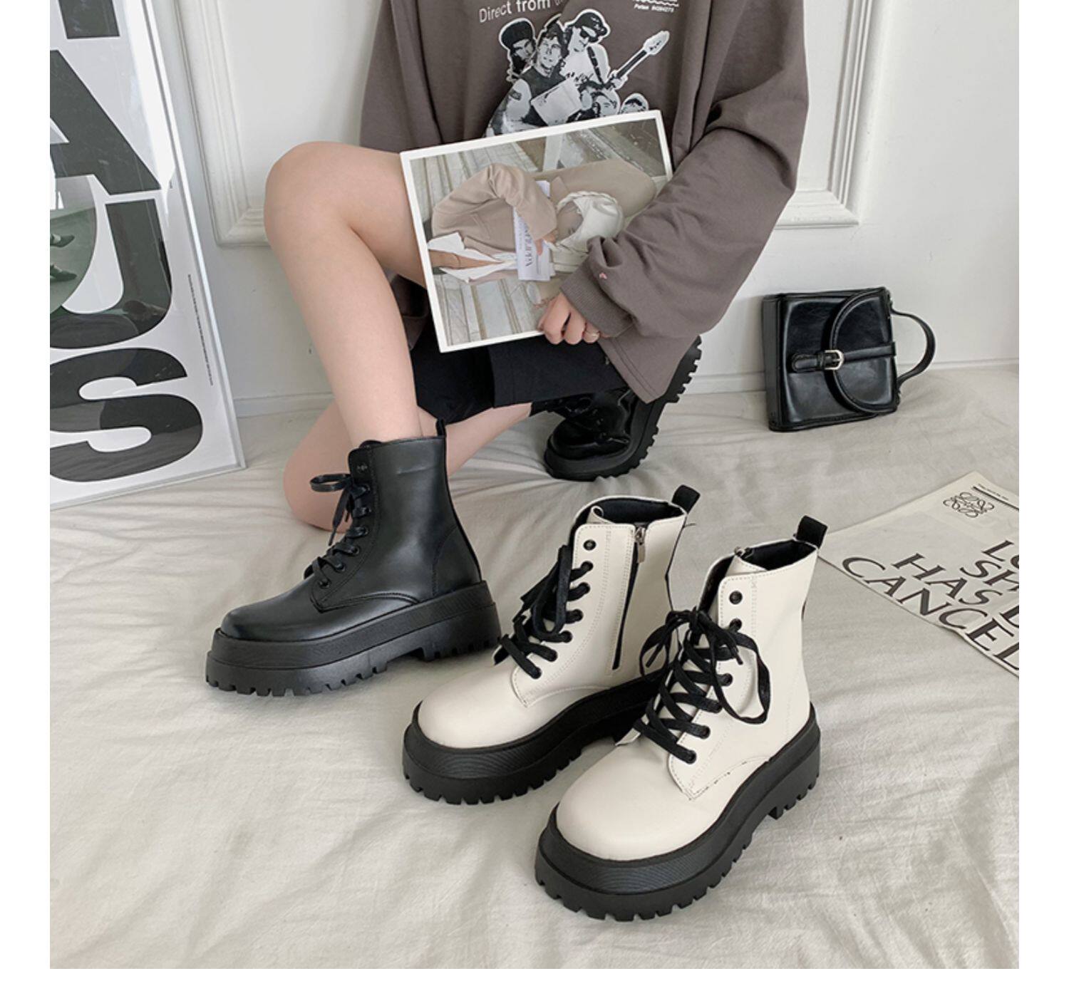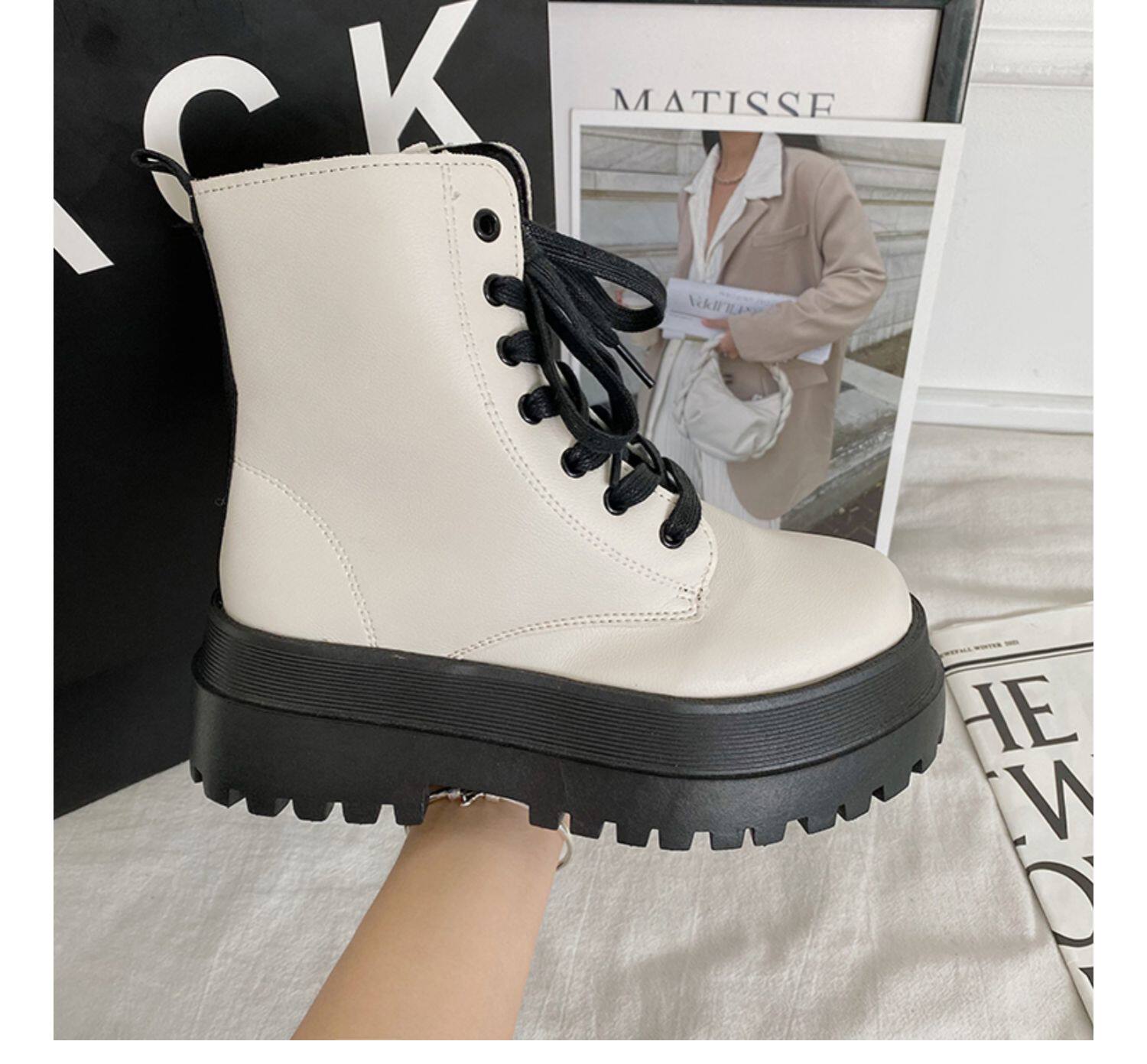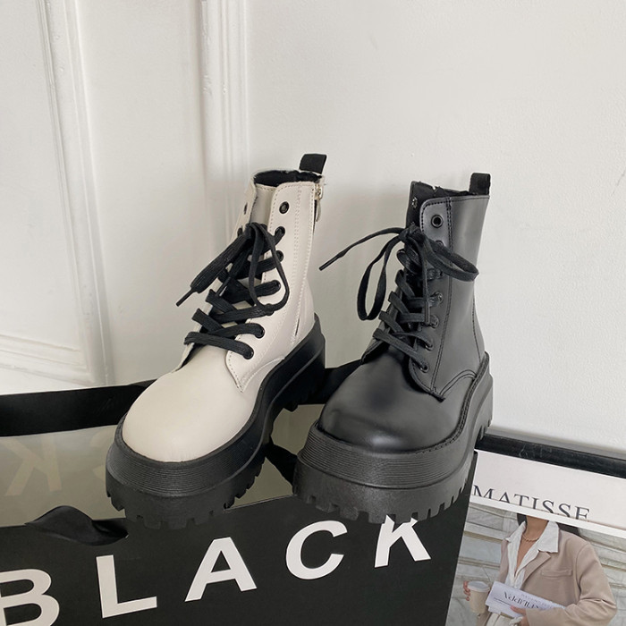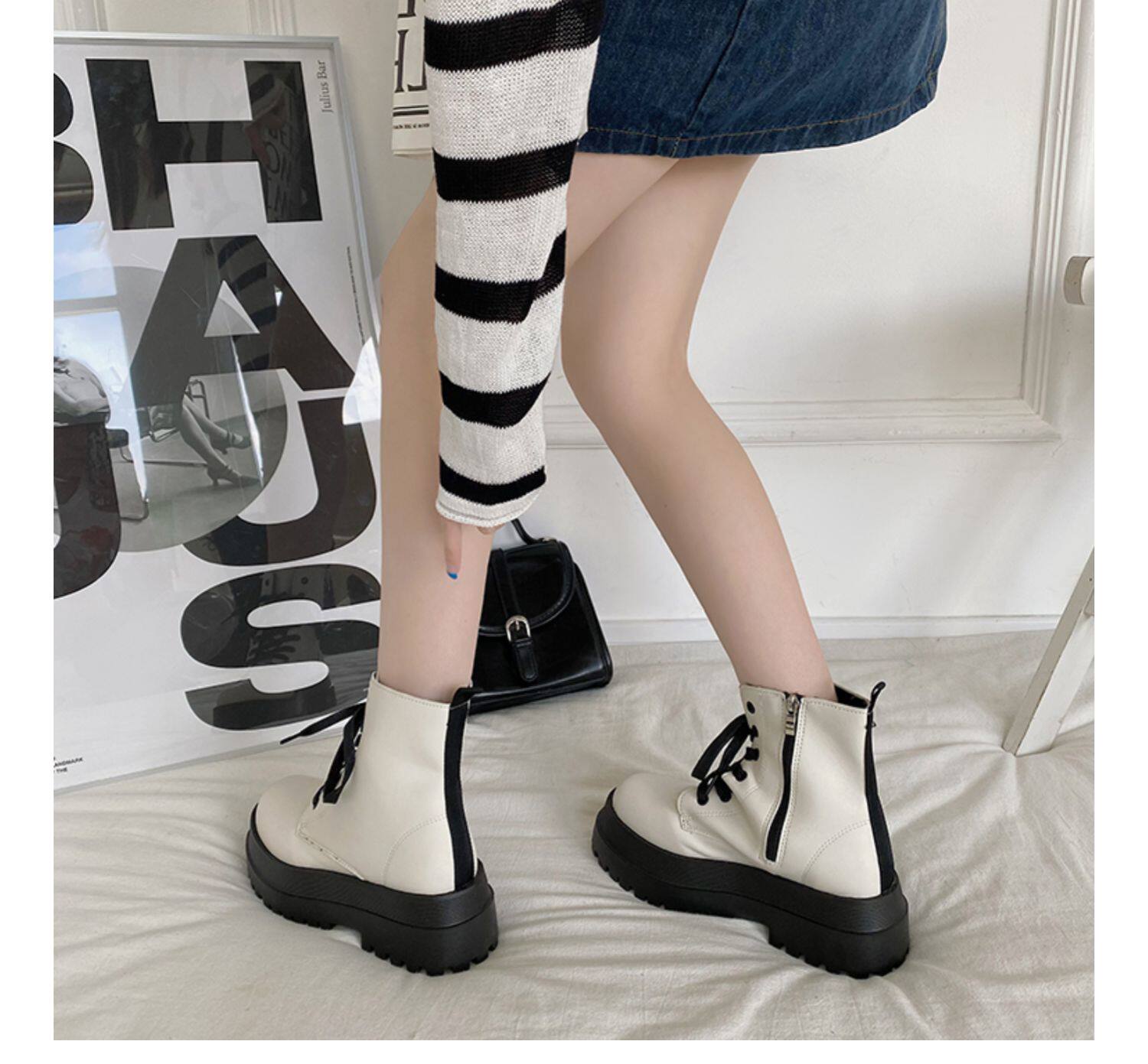 2025厚底馬丁靴女系帶小個子增高短筒靴子秋冬英倫顯腳小短靴鞋子