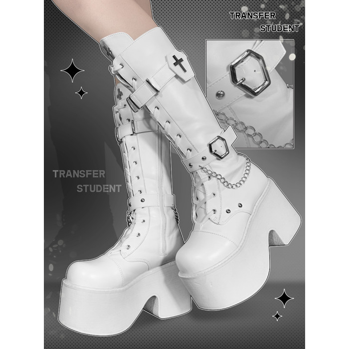 轉校生 血族枷鎖 原創龐克風厚底馬丁靴圓頭哥特風長靴高筒騎士靴