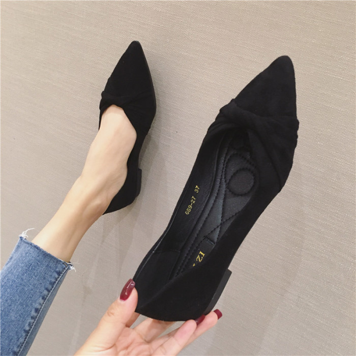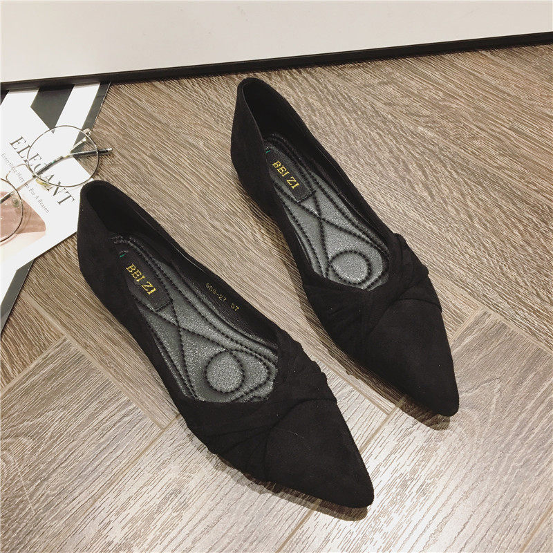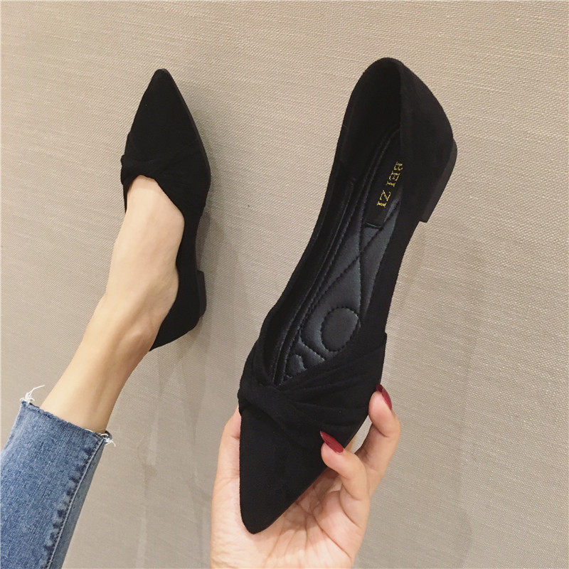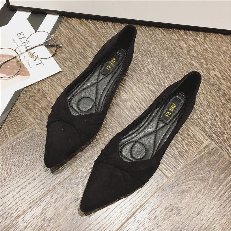 2025夏季新款百搭舒適黑色上班單鞋女溫柔時尚尖頭軟底平底鞋女鞋
