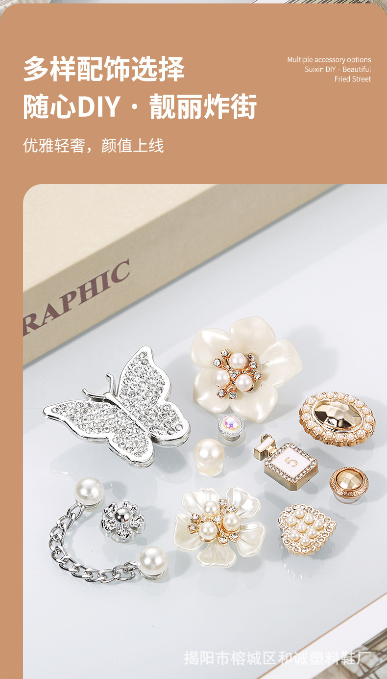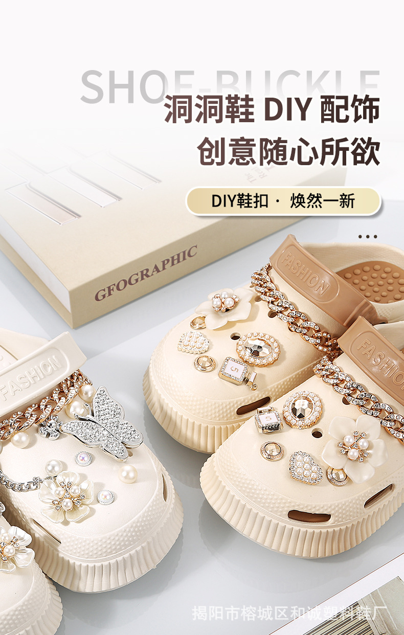 小紅薯DIY裝飾水鑽鞋釦鏈條配件飾釦輔料洞洞鞋花鞋鏈裝飾釦套裝