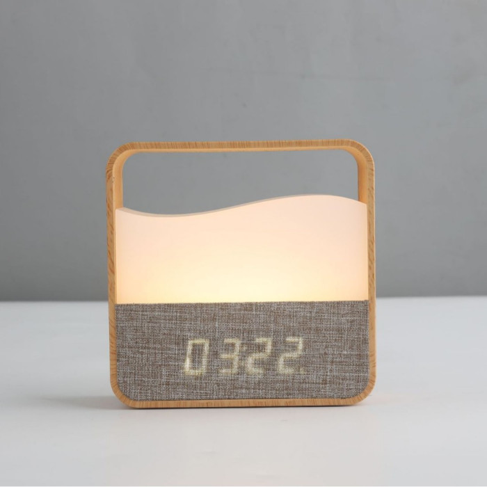 新款時鍾閙鍾木紋創意小夜燈床頭燈遙控氛圍燈爆款