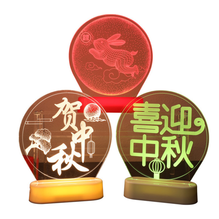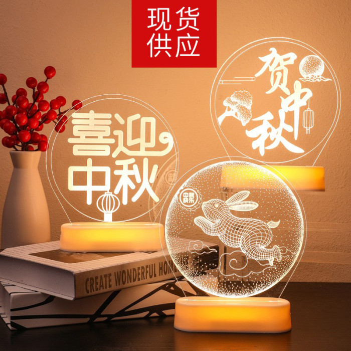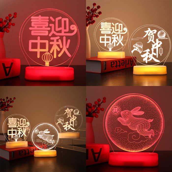 喜迎中秋節字牌 擺件燈玉兔子發光桌面布置氛圍節日裝飾場景道具
