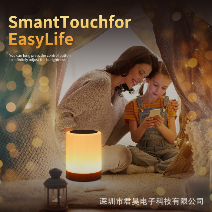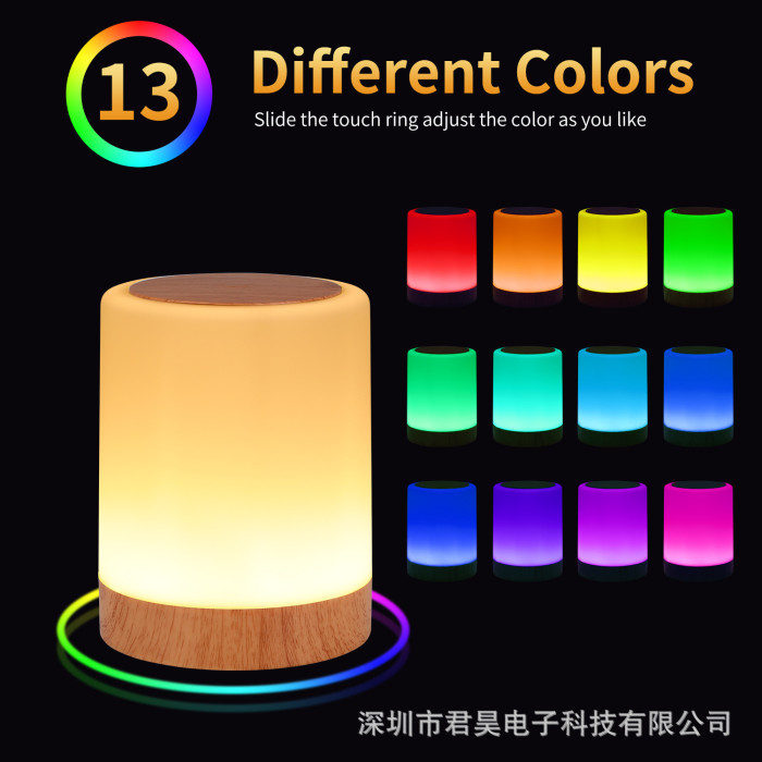 新款創意木紋觸控遙控七彩床頭燈氛圍燈桌面燈戶外LED夜燈