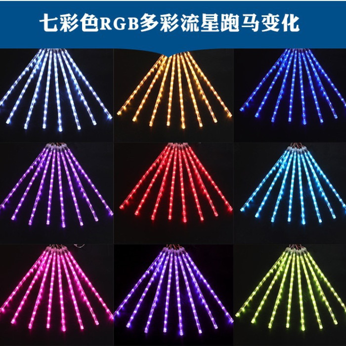 彩燈戶外用防水七彩流星雨LED燈串氛圍閃爍流水燈套裝流星燈條