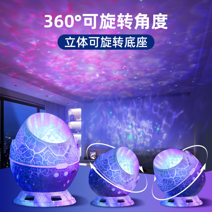 裂紋透光恐龍蛋星空燈水波紋滿天星雷射投影燈藍牙音箱氛圍燈