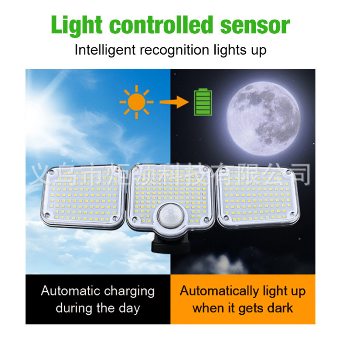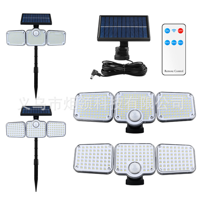 2025新款三頭太陽能感應壁燈分體庭院燈戶外花園人體感應燈