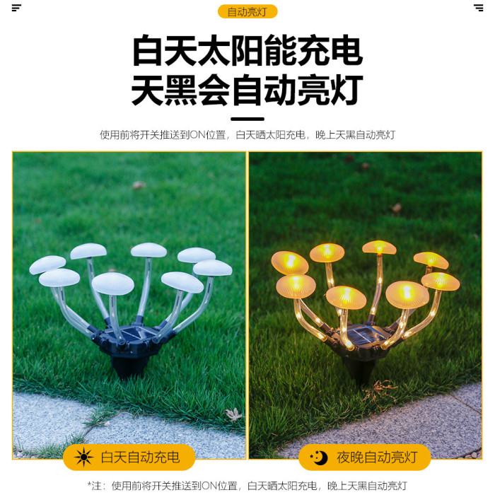 | 規格分類 | 8頭太陽能蘑菇燈【暖光】 |