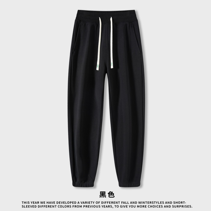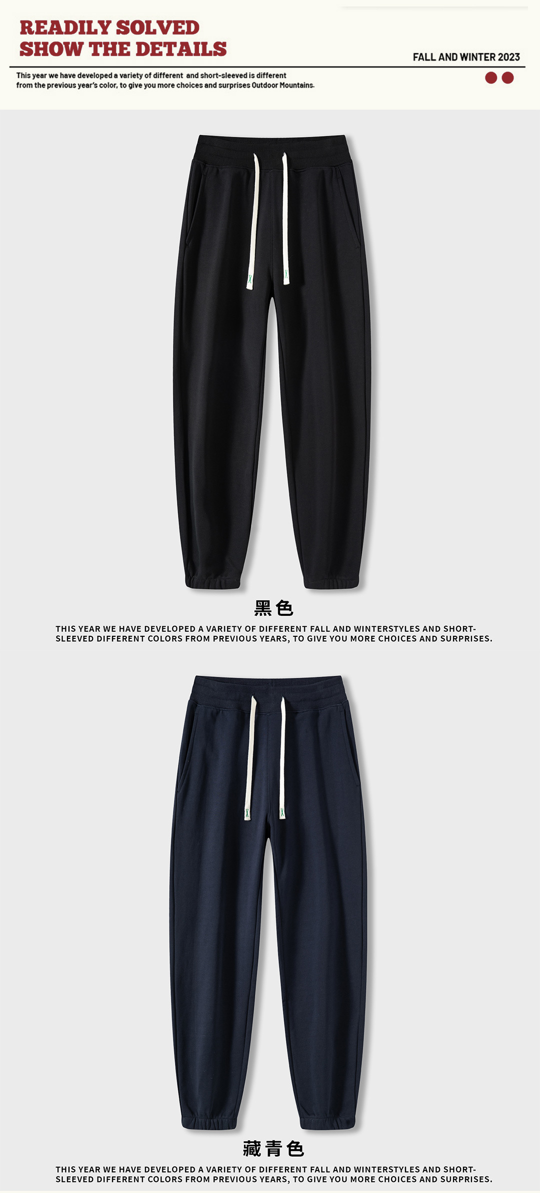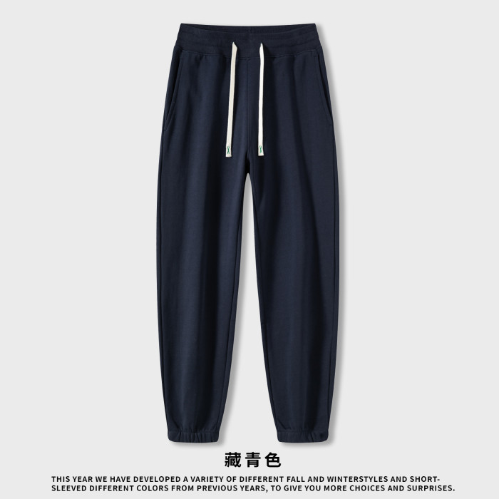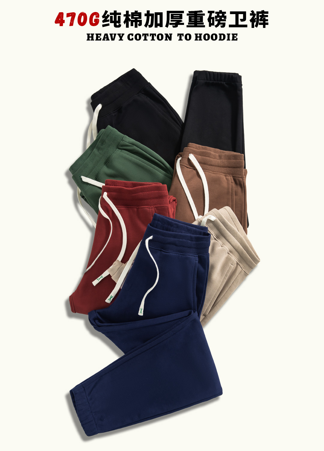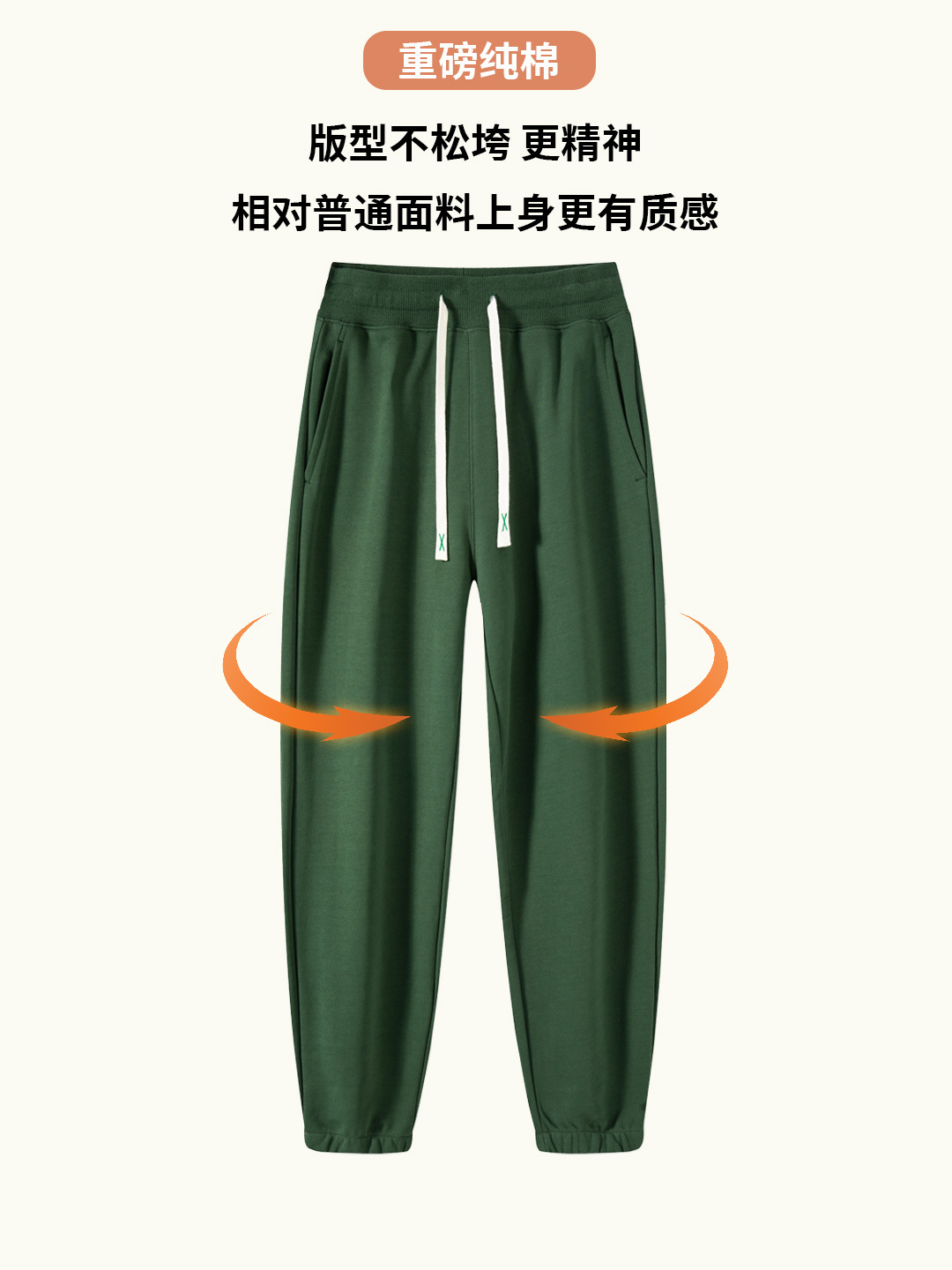 470G純棉秋冬重磅加厚運動束腳松緊小腳收口抽繩休閒衛褲男保暖