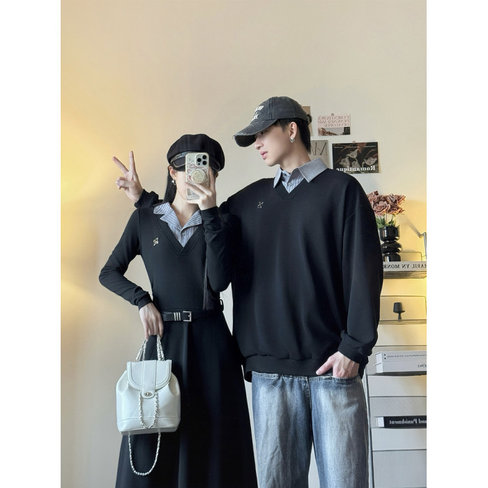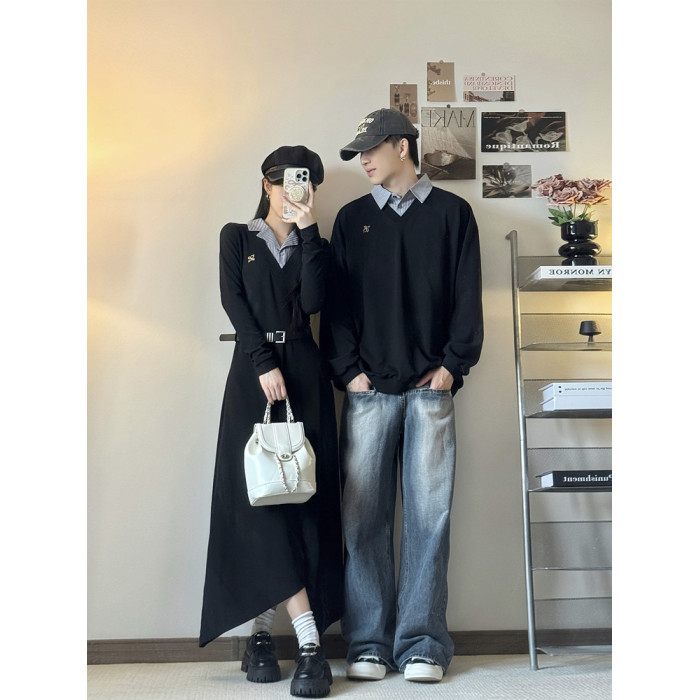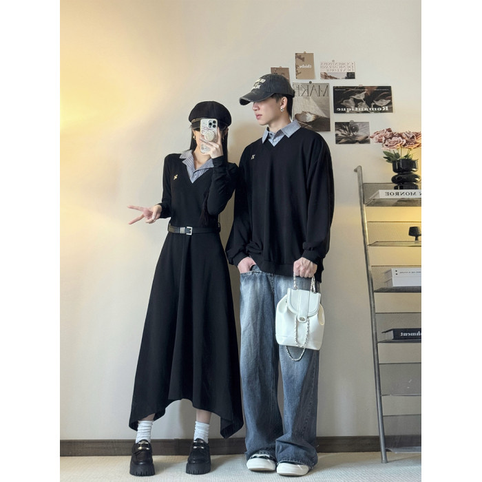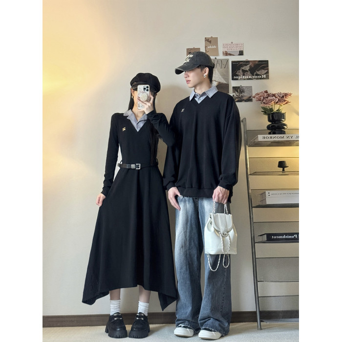 情侶裝2025新款秋季法式赫本風一裙一衣收腰顯瘦Polo領連衣裙潮流