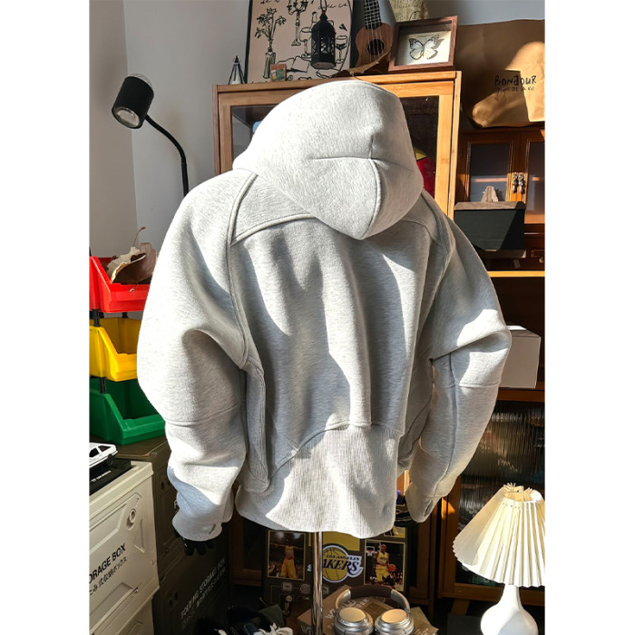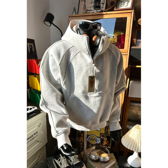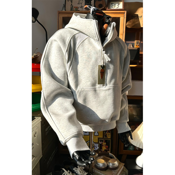 白花灰高領半拉鍊衛衣男款連帽秋季cleanfit美式重磅boxy短款外套