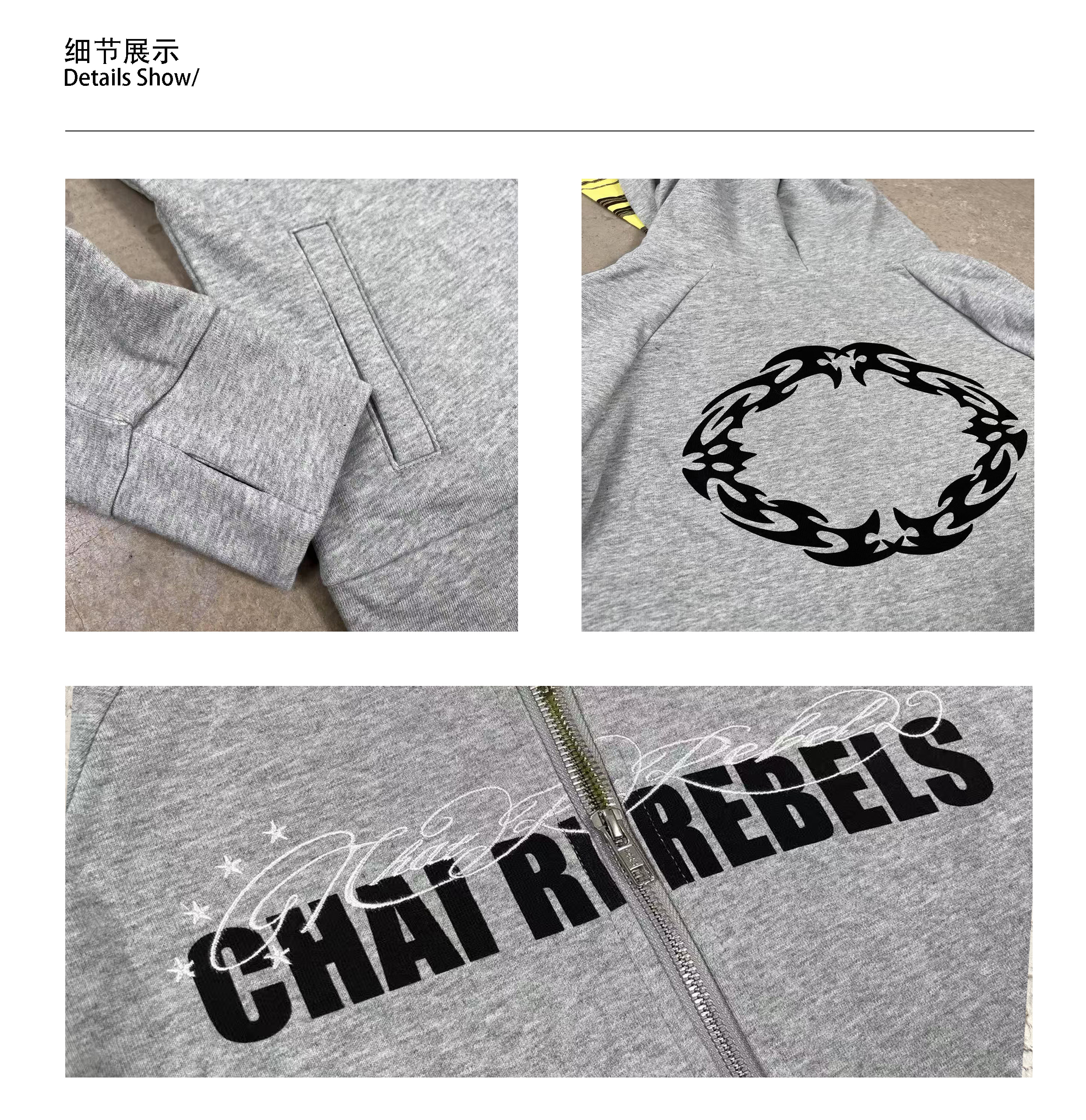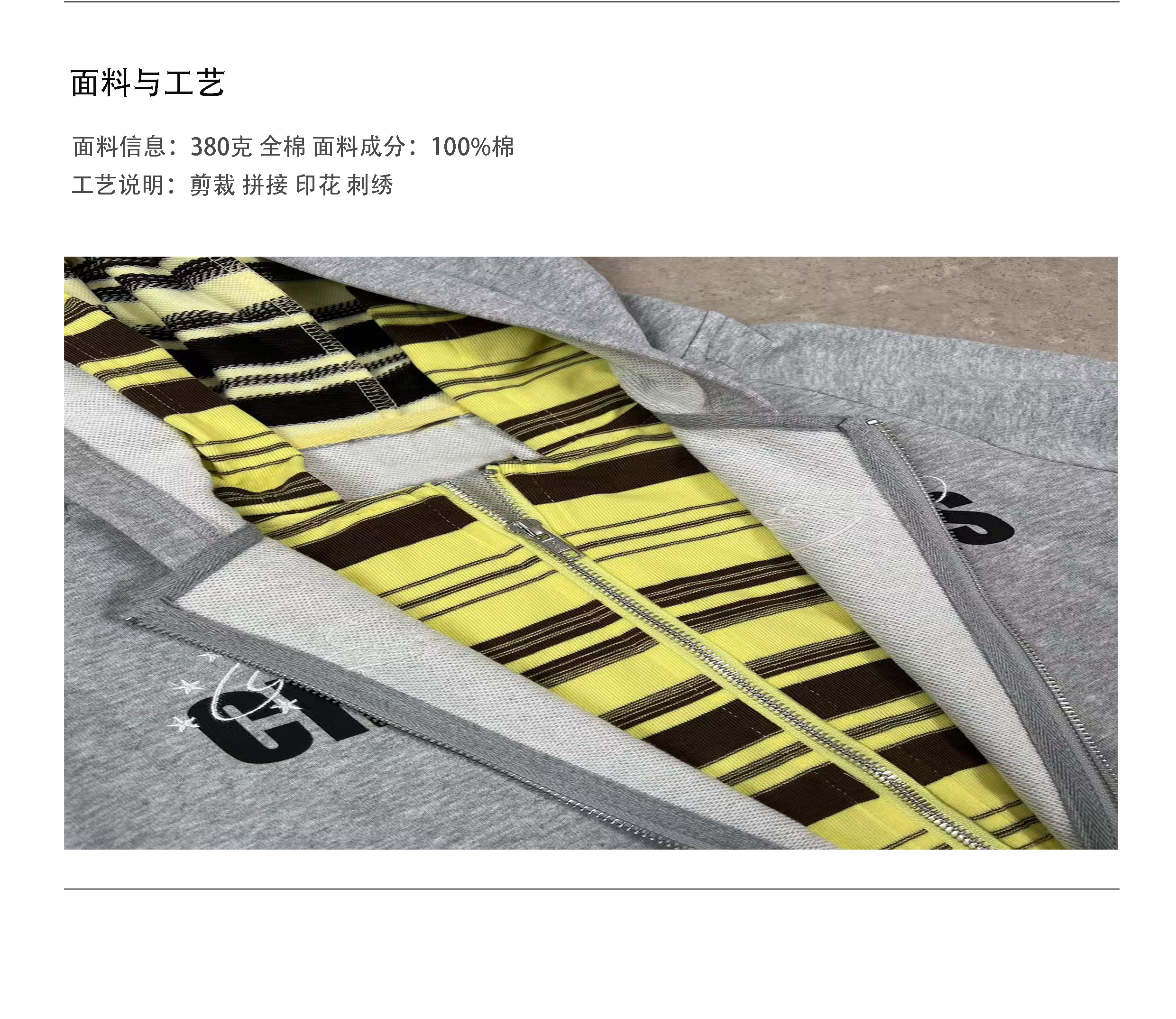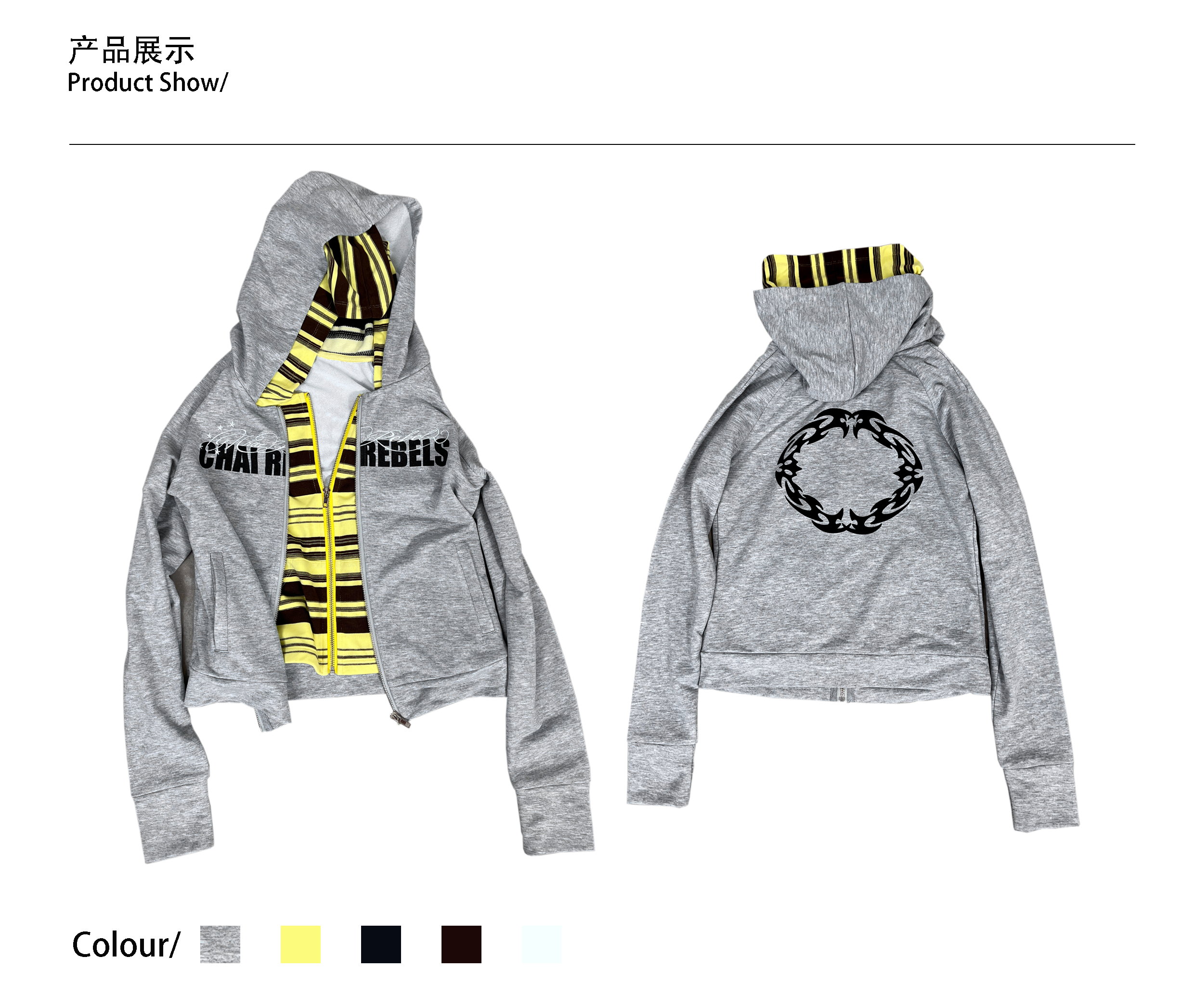 CHAI (拆)25AW 星標刺綉印花撞色條紋假兩件修身連帽拉鍊帽衫