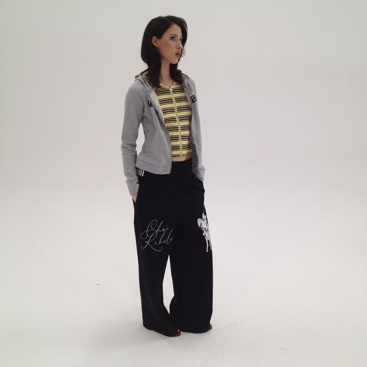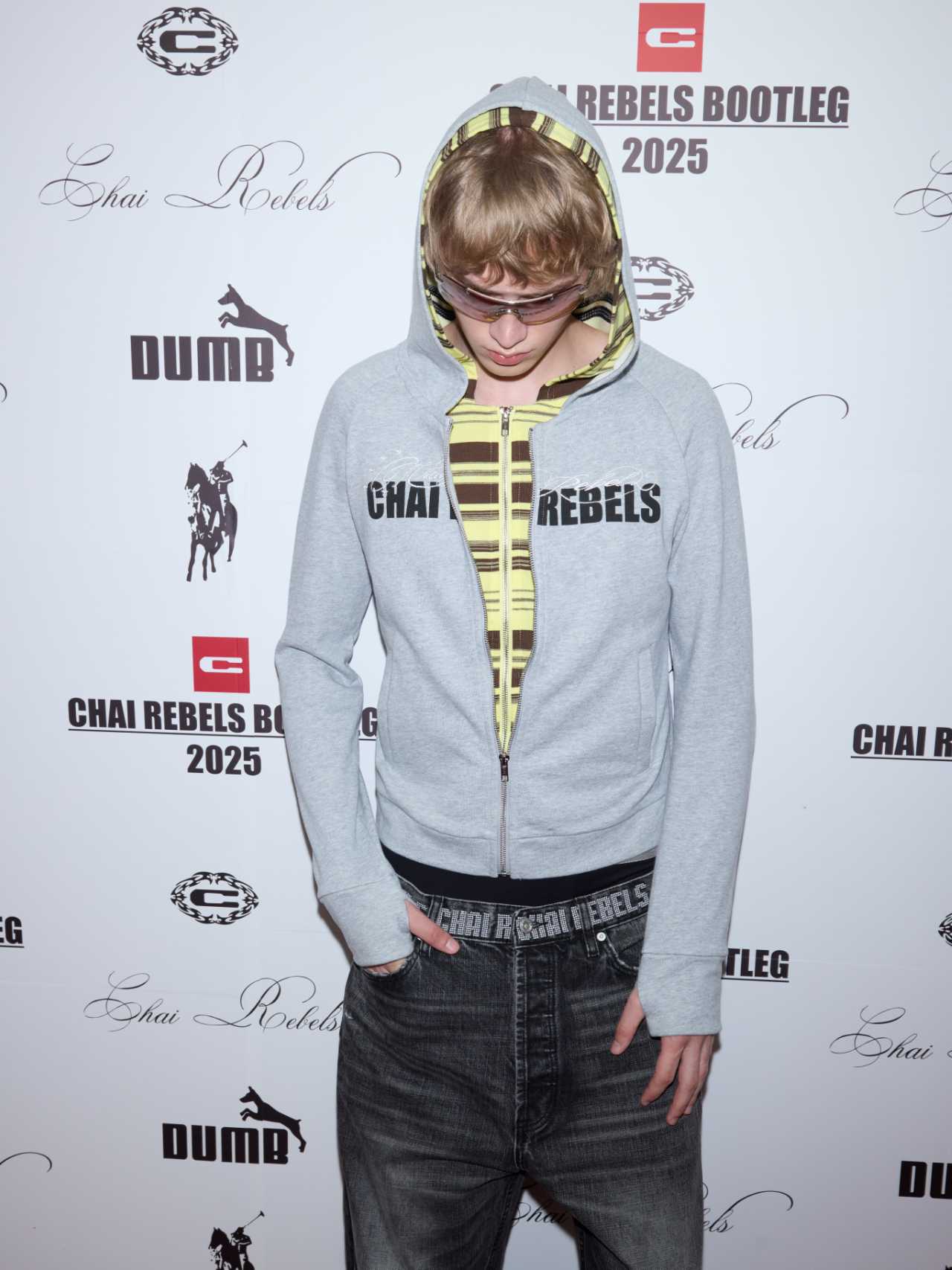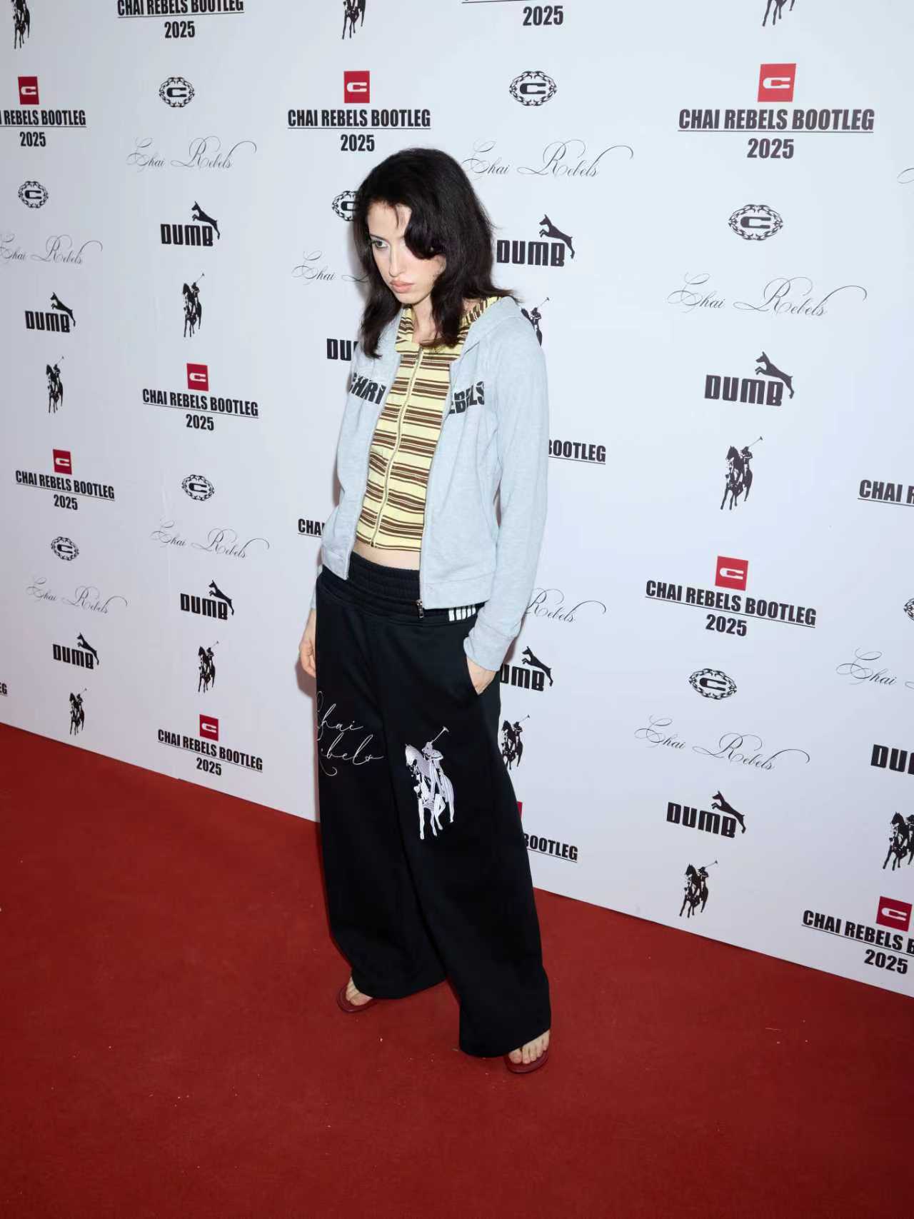 CHAI (拆)25AW 星標刺綉印花撞色條紋假兩件修身連帽拉鍊帽衫
