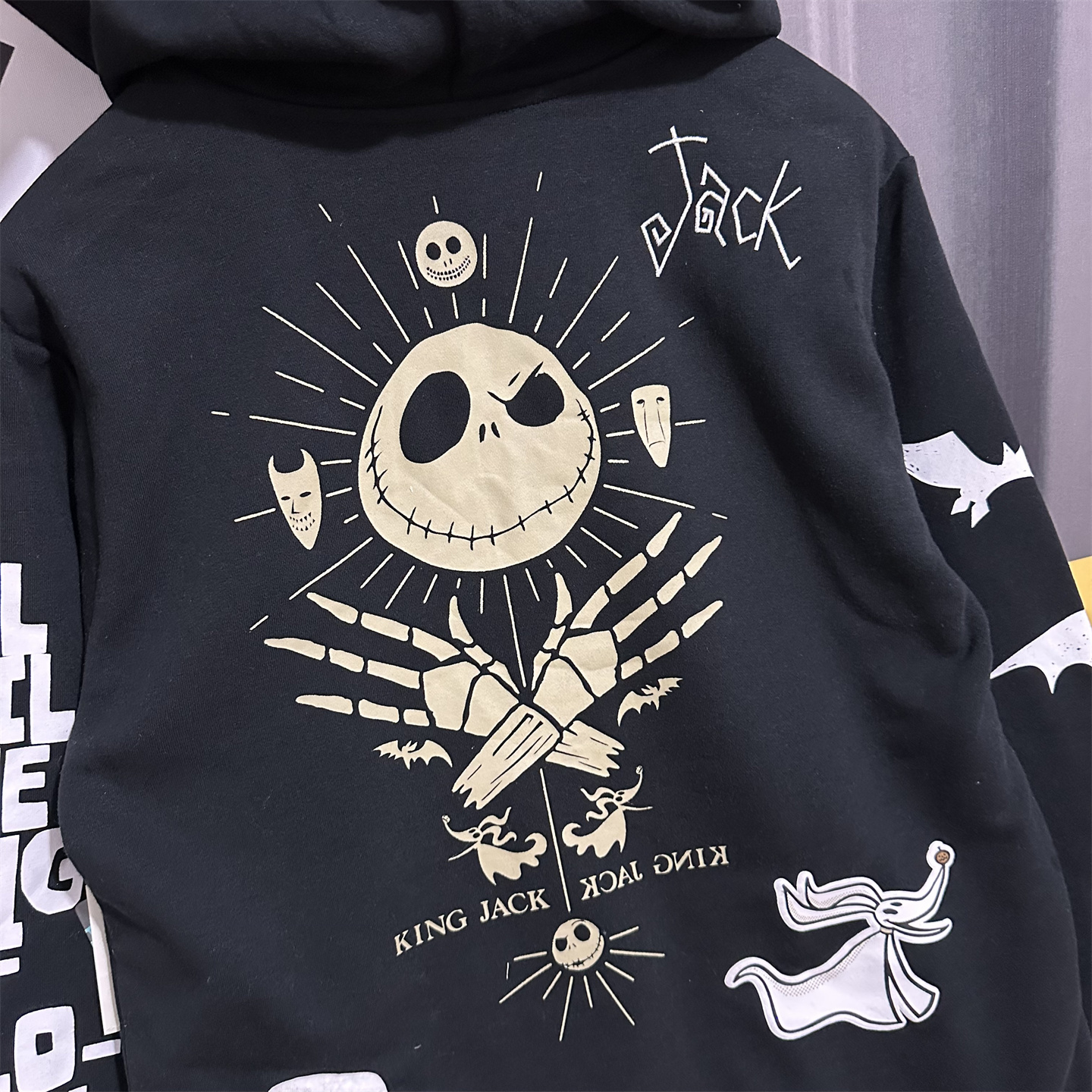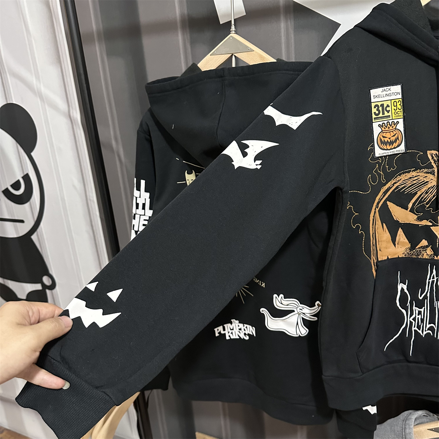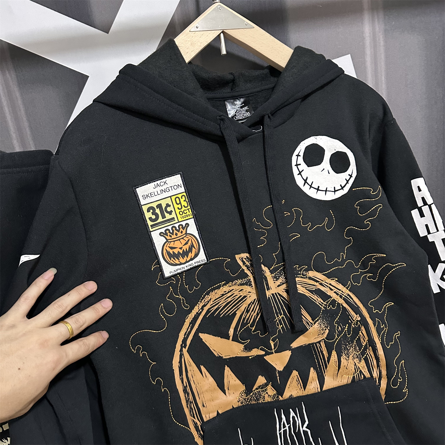美單男女士衛衣帽衫加絨刺綉印花卡通聖誕驚魂夜傑克骷髏美式休閒