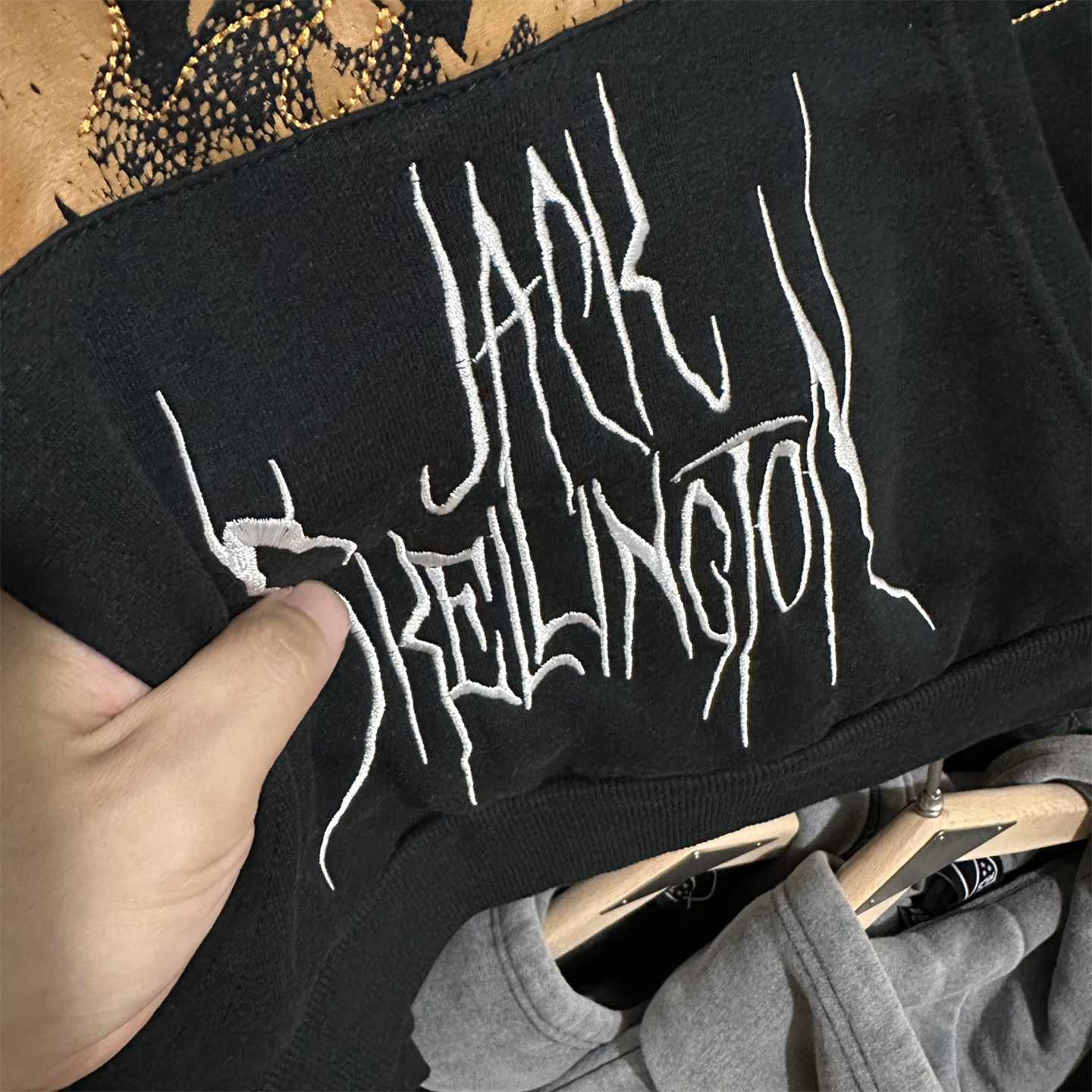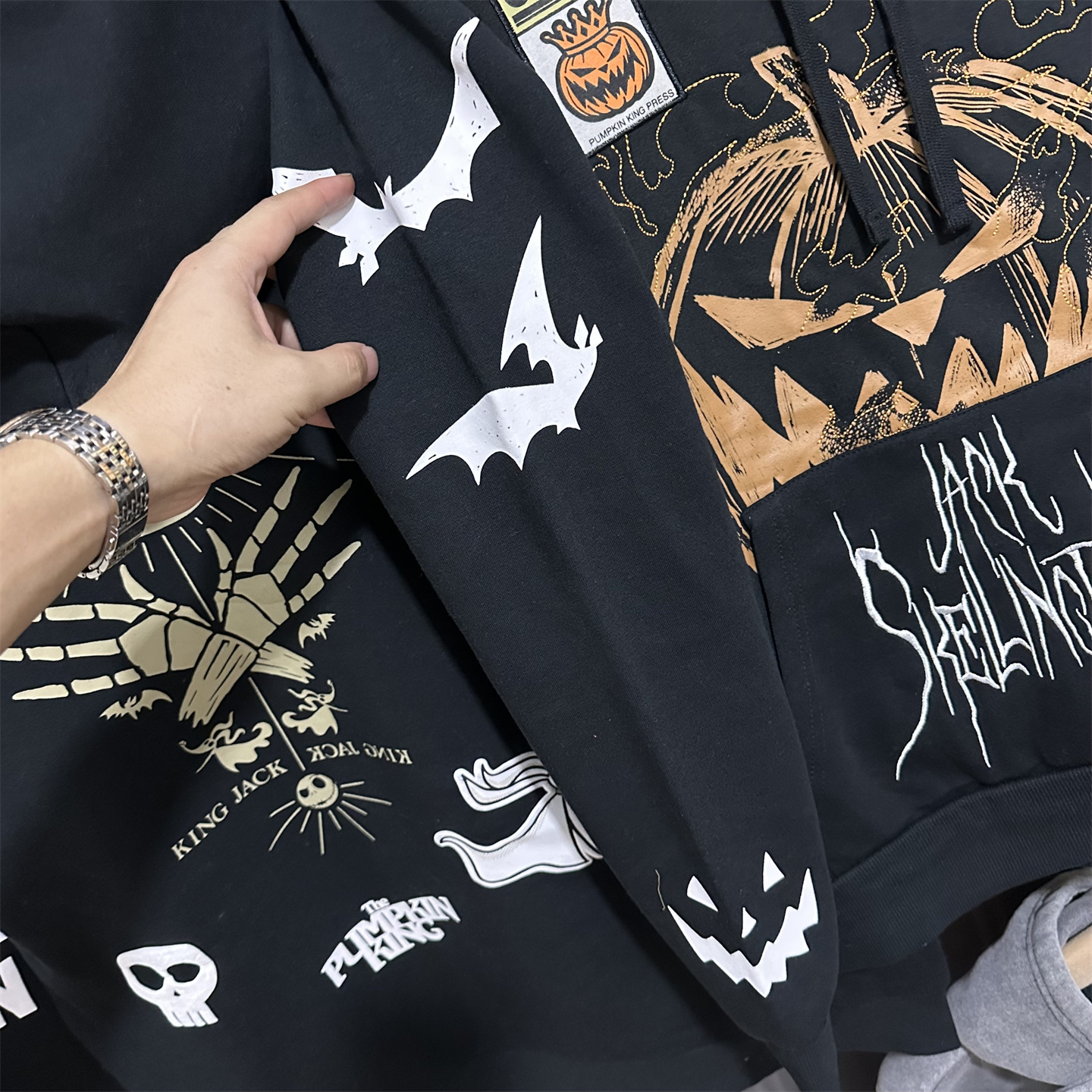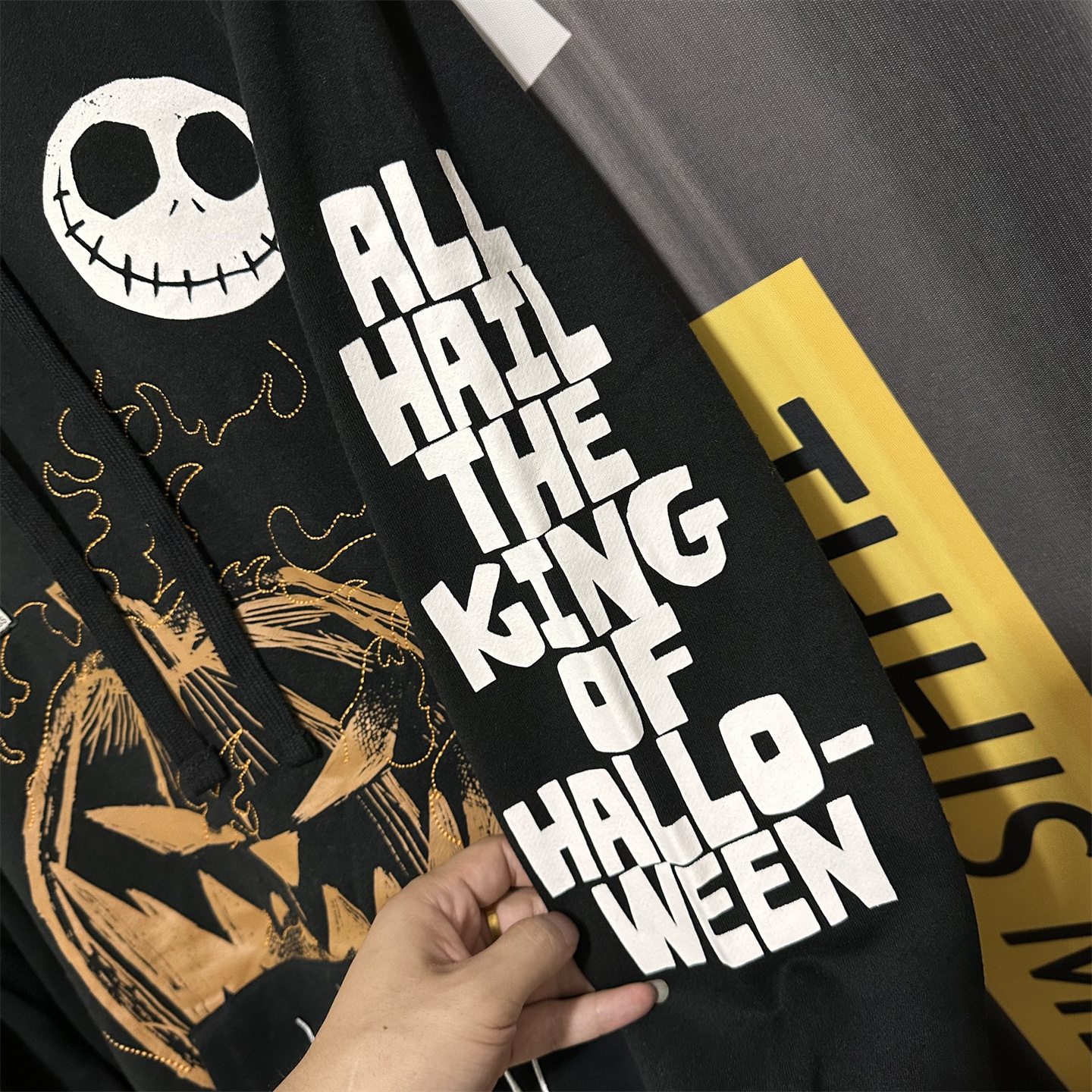 美單男女士衛衣帽衫加絨刺綉印花卡通聖誕驚魂夜傑克骷髏美式休閒