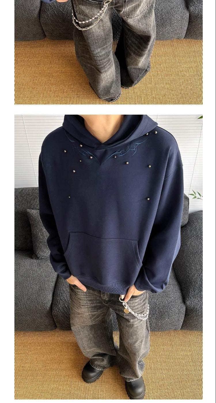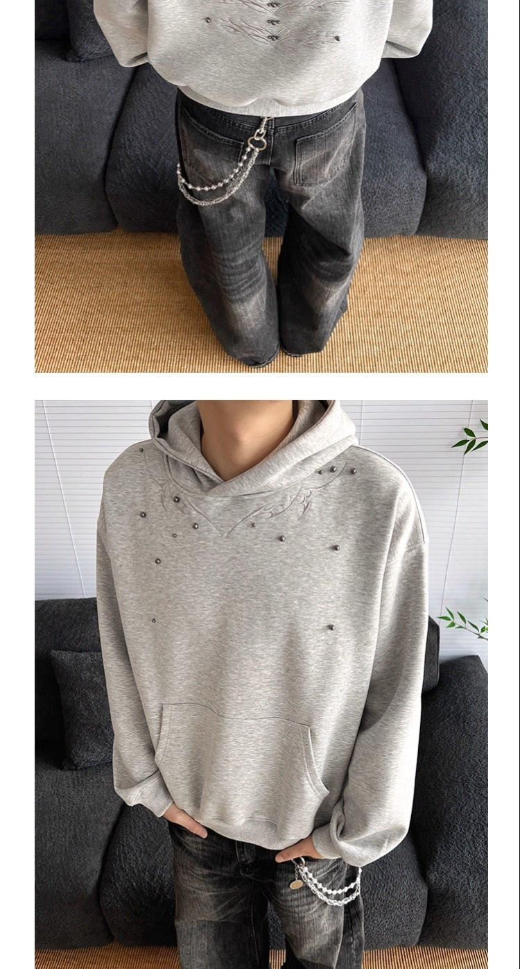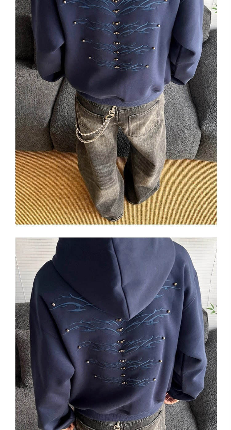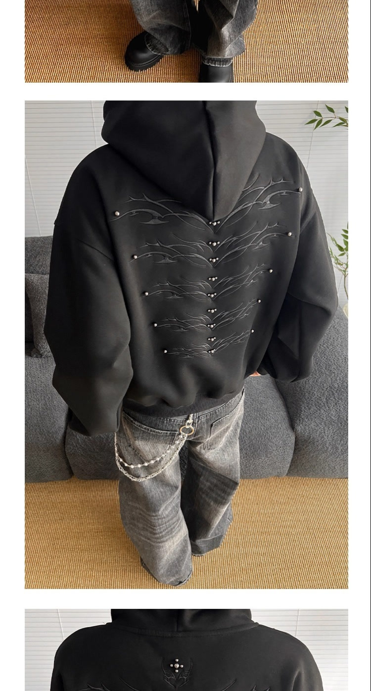 設計感痞帥鉚釘拼接連帽衛衣男女春秋季美式高街小衆情侶開衫外套