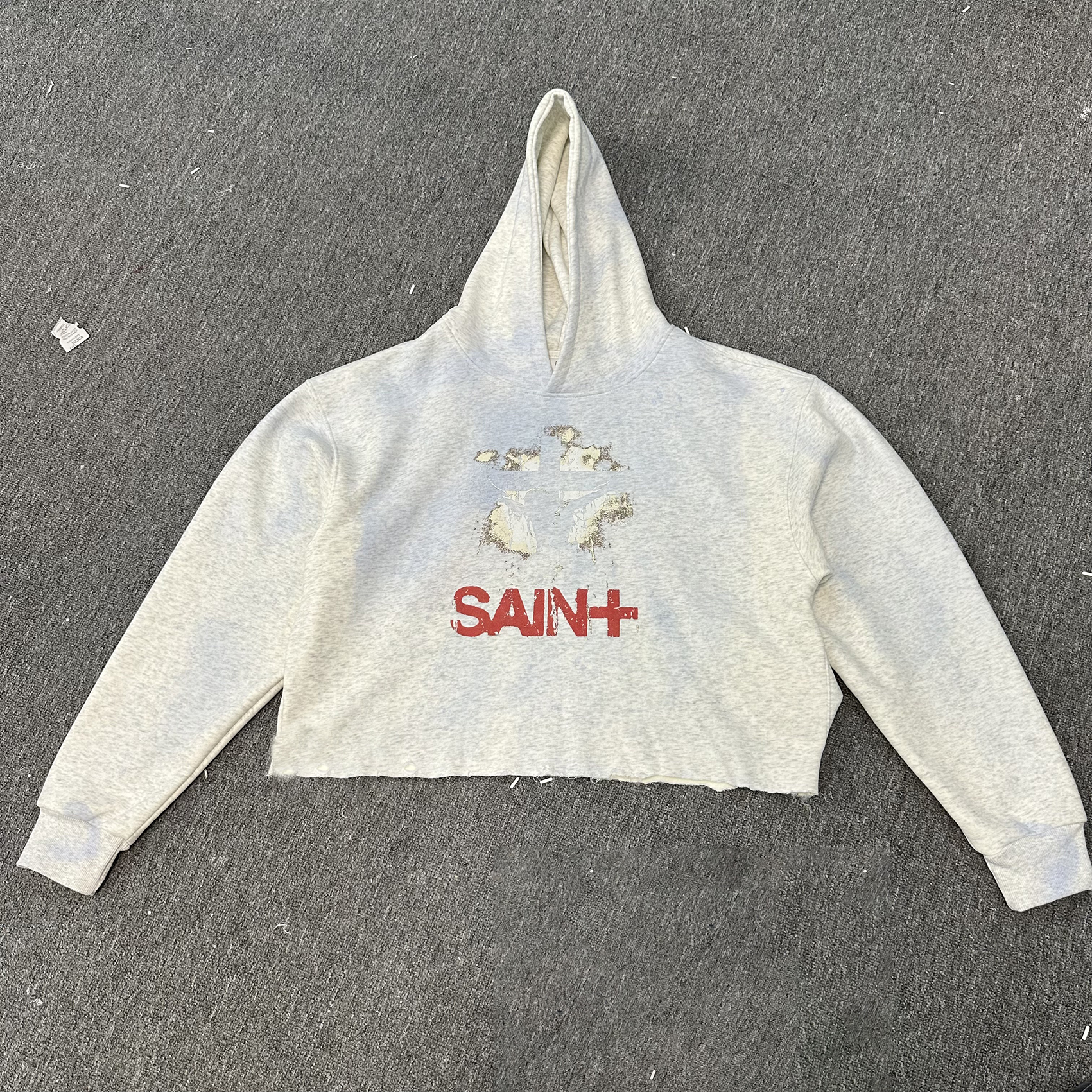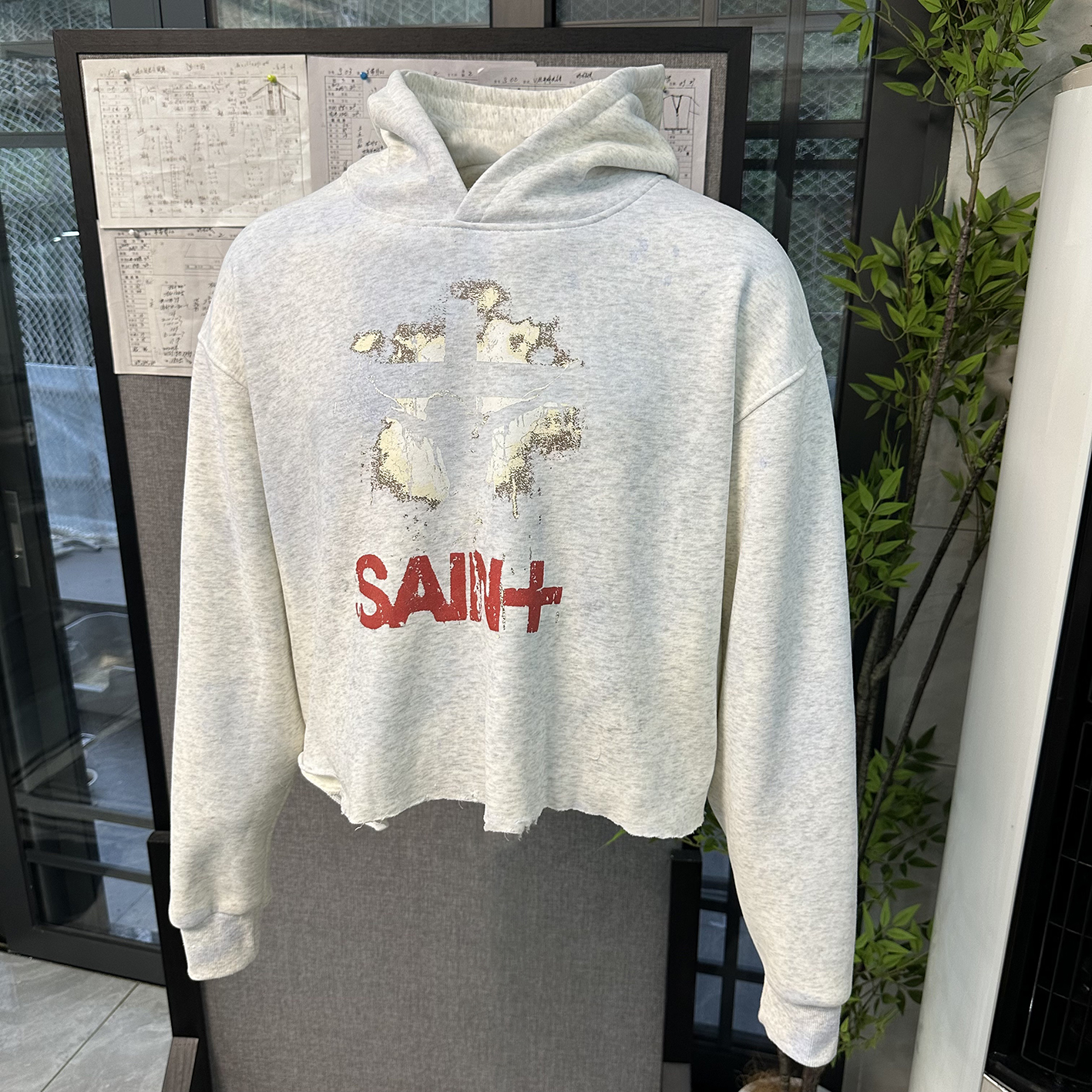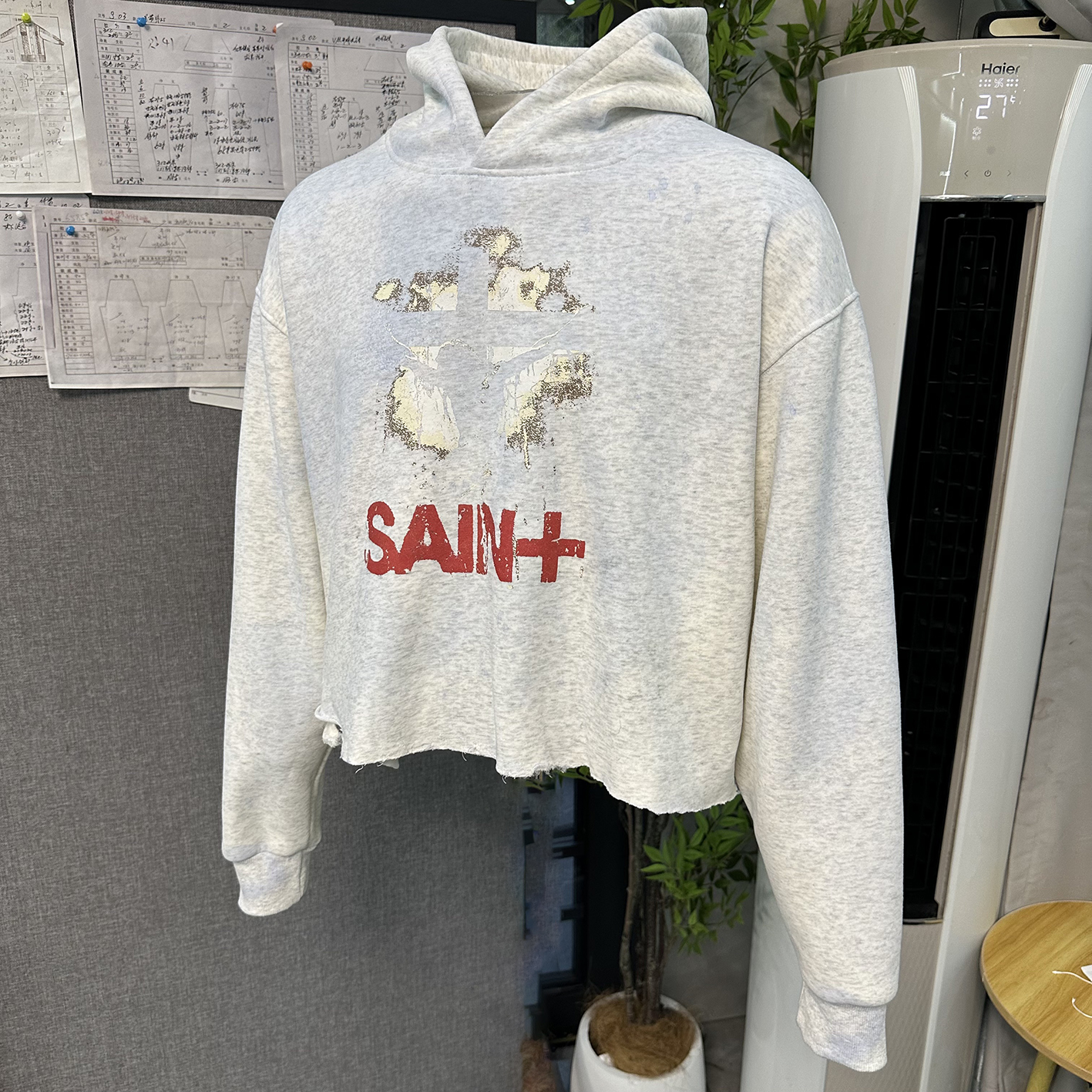 Basic annals美式復古做舊水洗衛衣boxy fit外套短寬漸變藍色上衣
