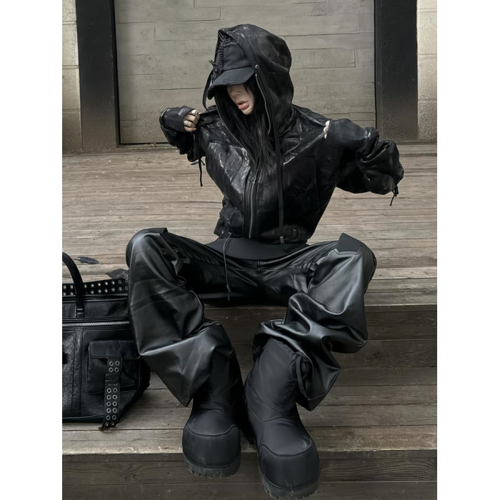 ATANOTHINGNESS25AW 金屬刷蠟連帽拉鍊衛衣外套暗黑先鋒外套opium