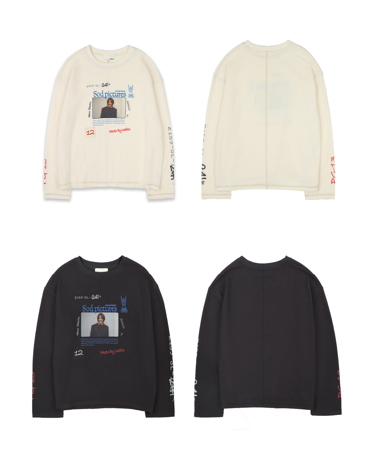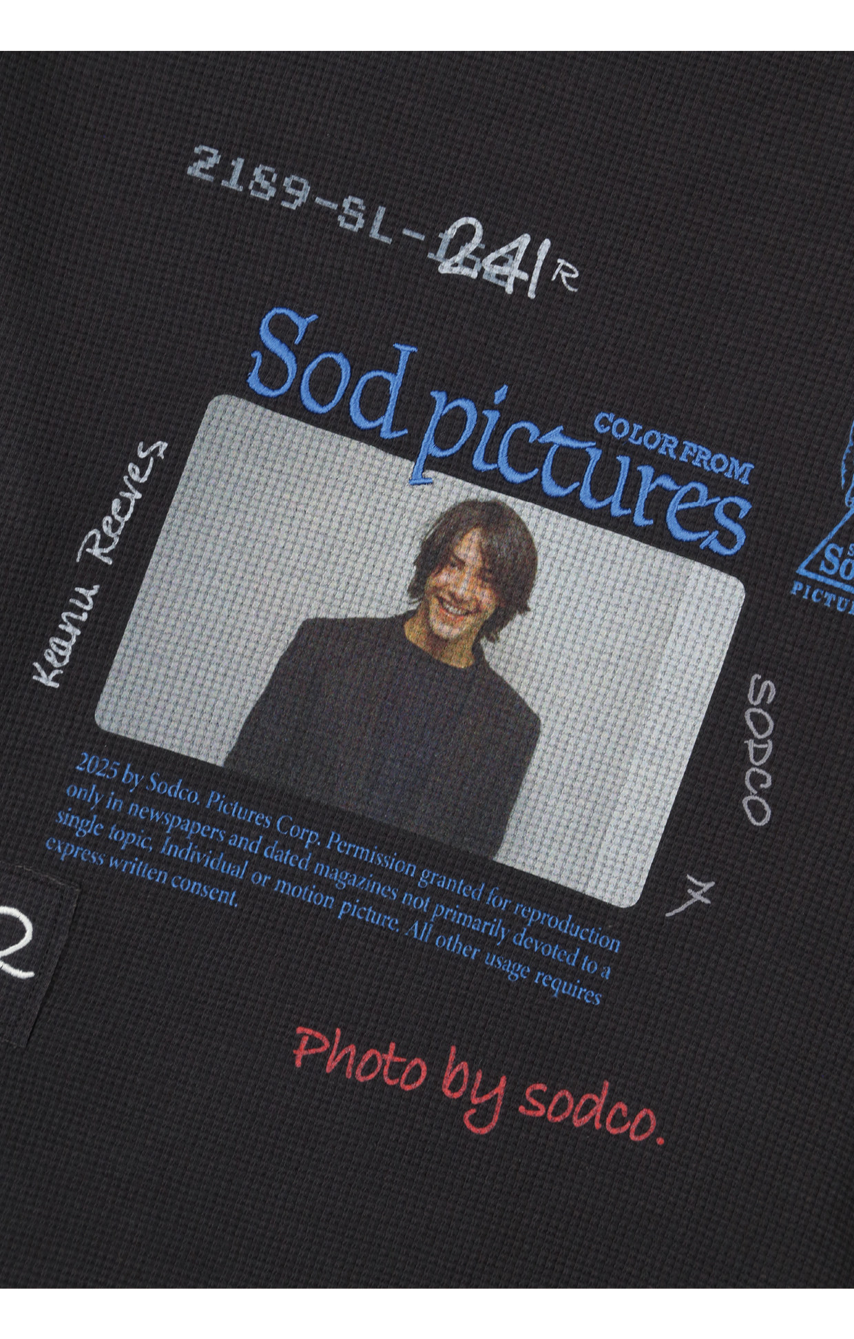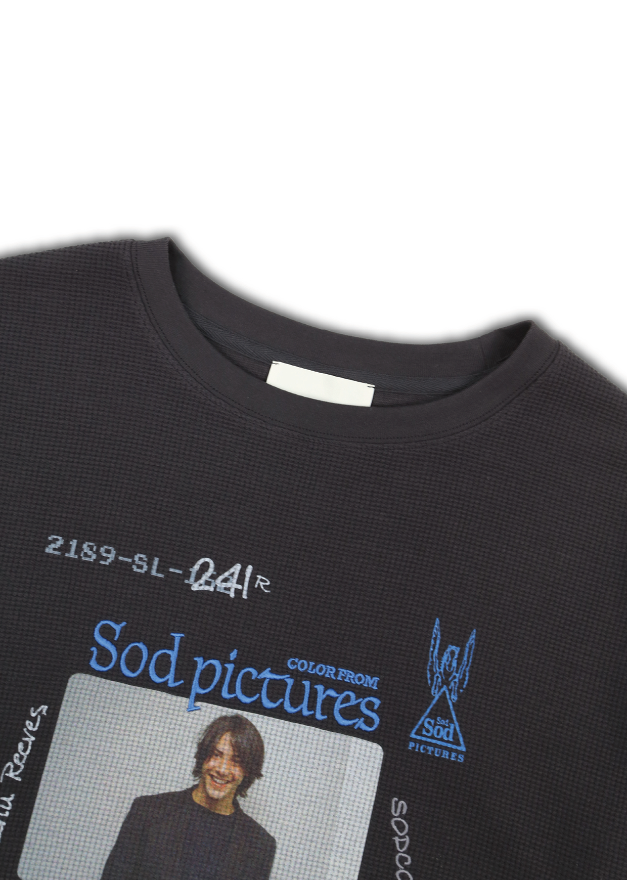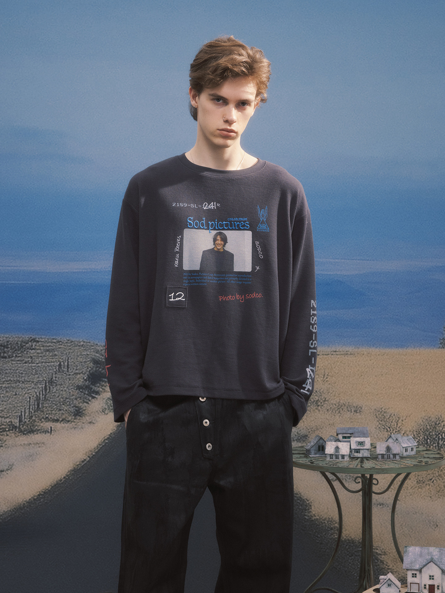 SOD Co. 華夫格長袖 “基努”米白色 廓形人物印花復古衛衣長T恤