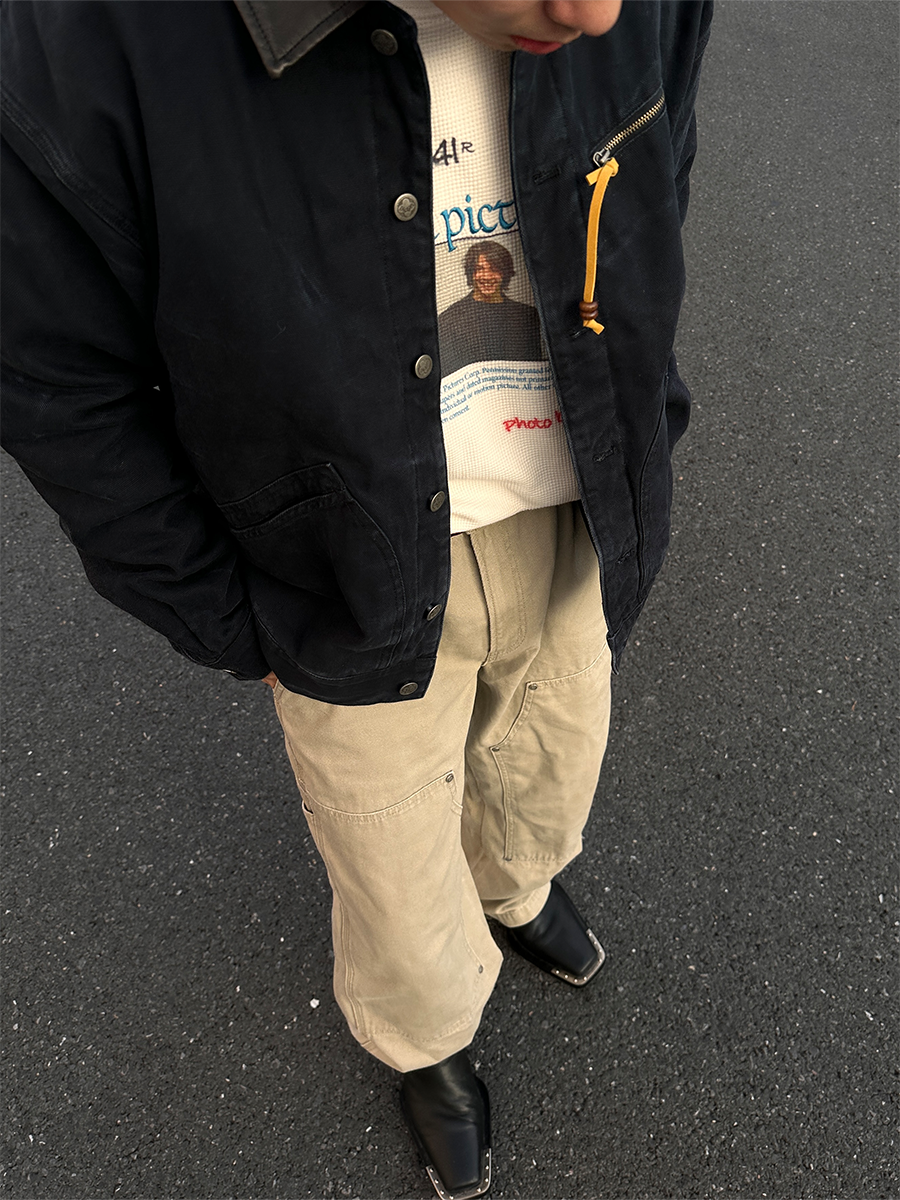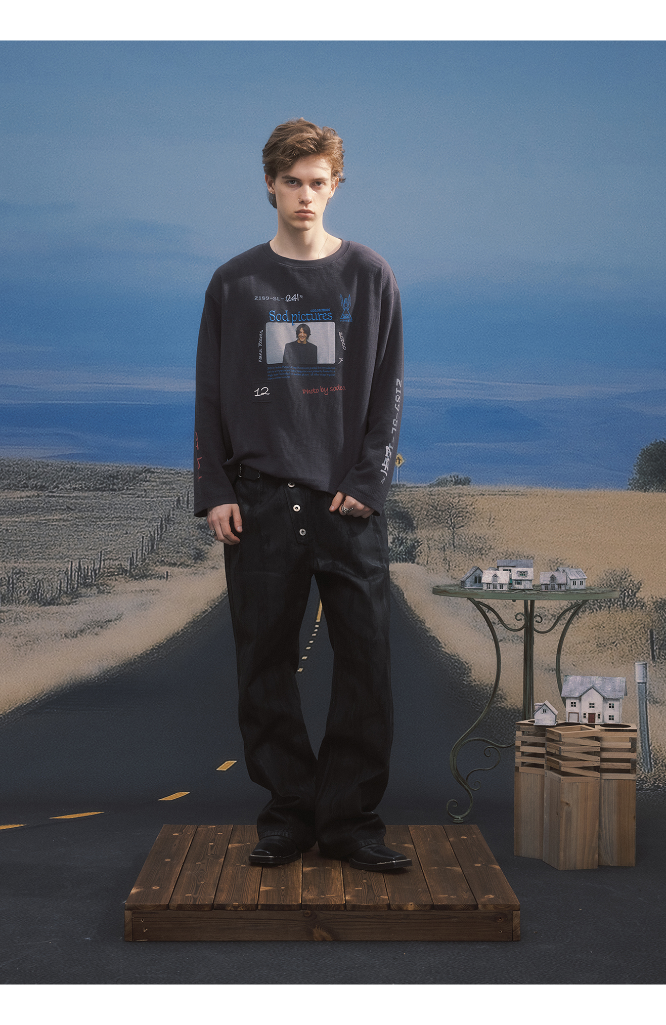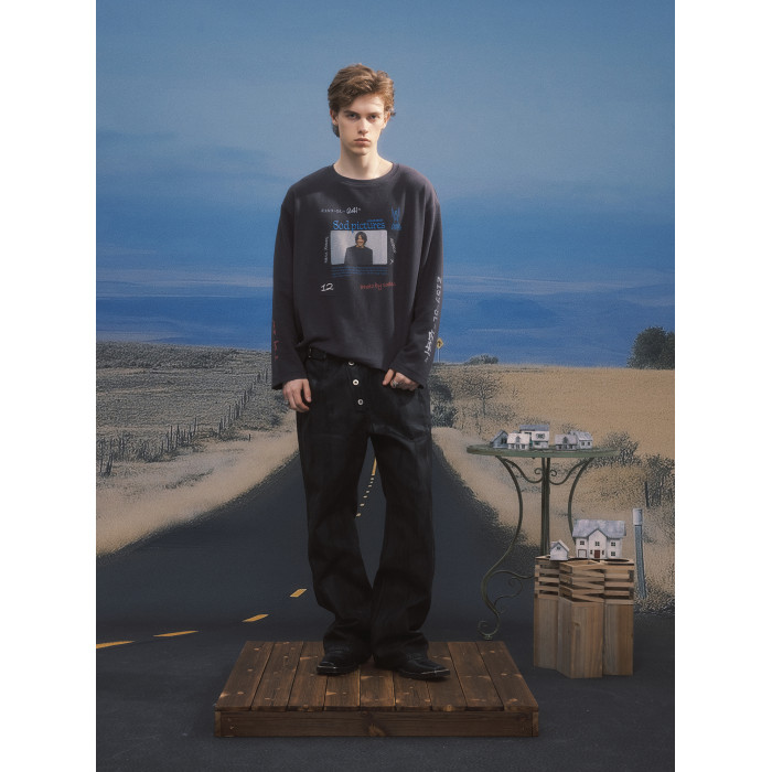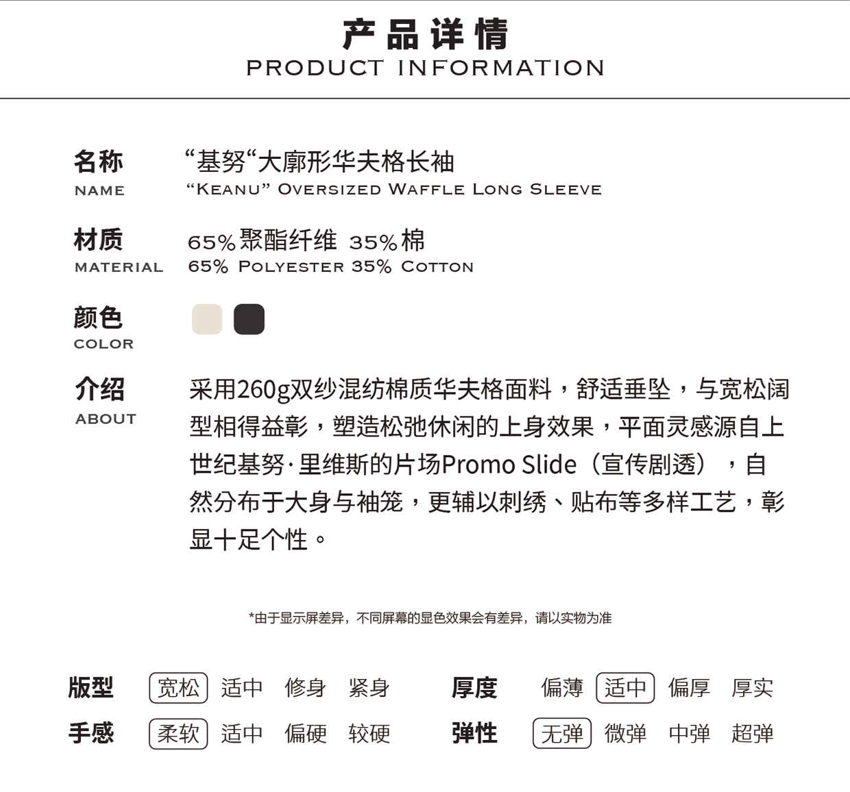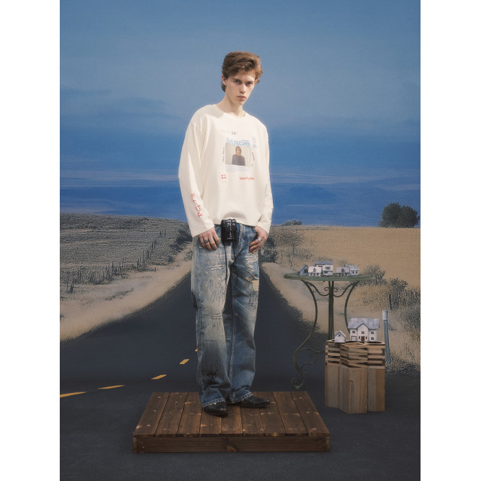 SOD Co. 華夫格長袖 “基努”米白色 廓形人物印花復古衛衣長T恤