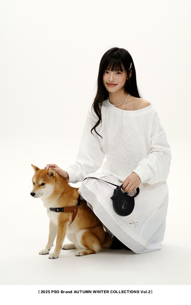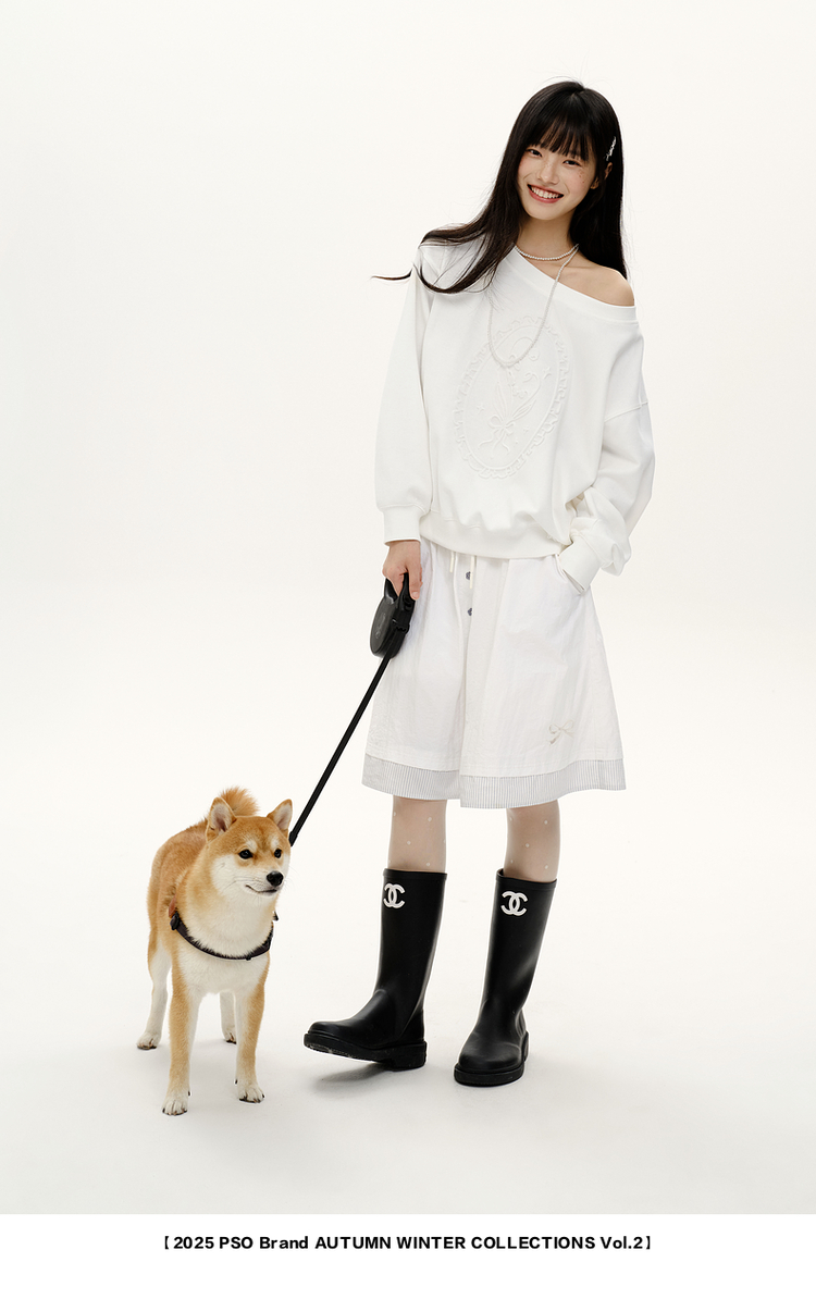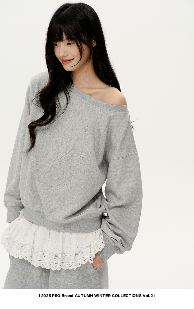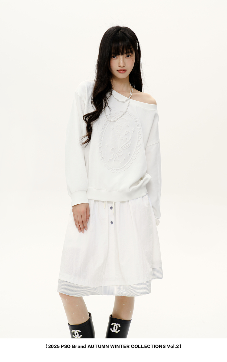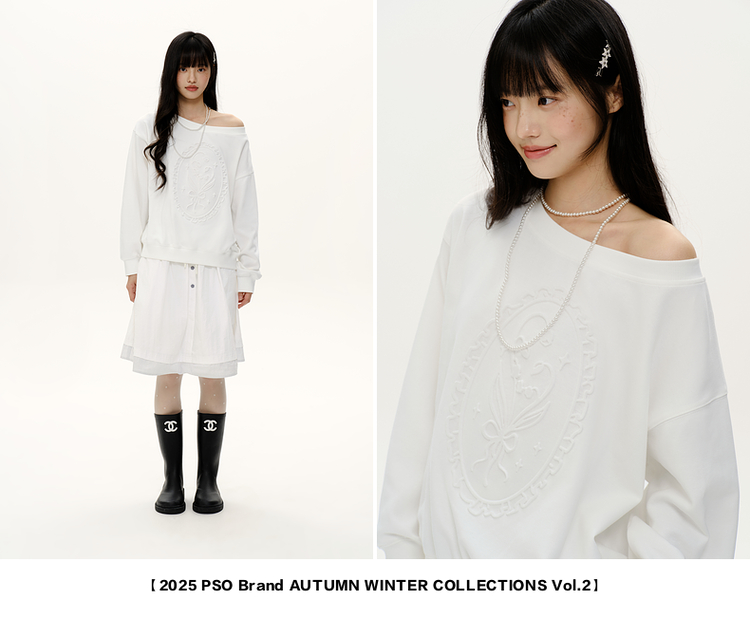PSO Brand女裝【一字肩/斜肩領】浮雕花束長袖衛衣寬松上衣秋裝