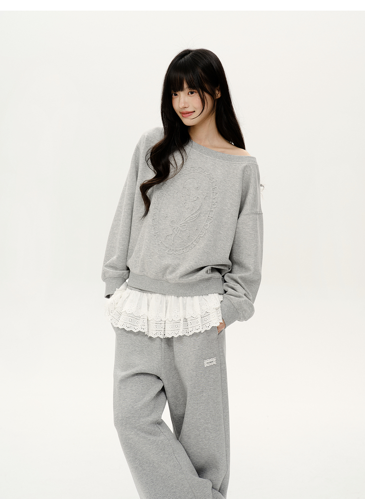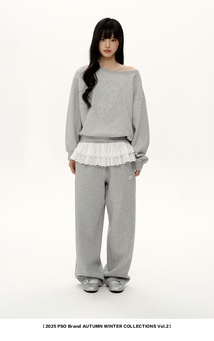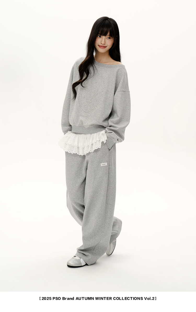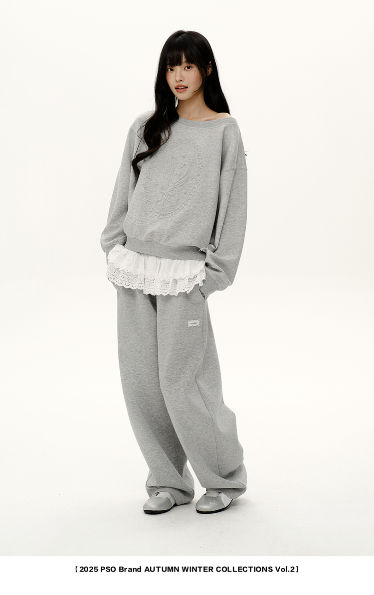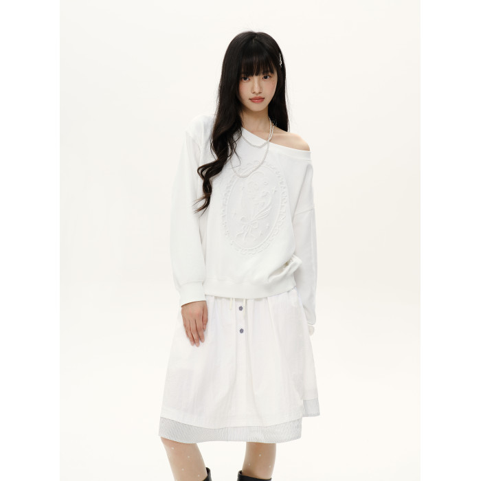 PSO Brand女裝【一字肩/斜肩領】浮雕花束長袖衛衣寬松上衣秋裝