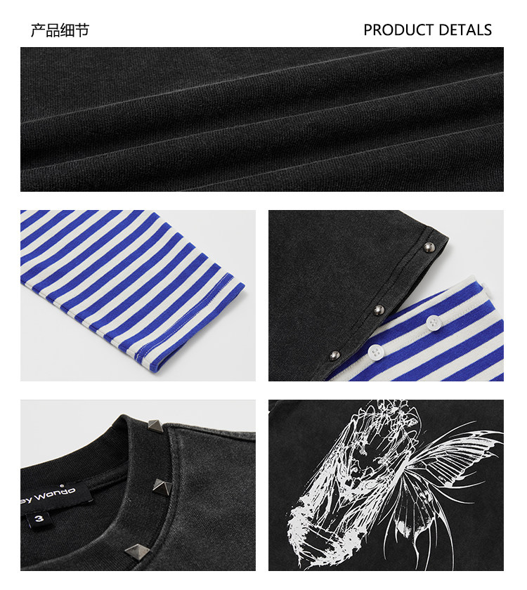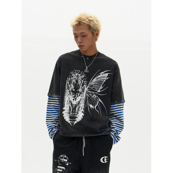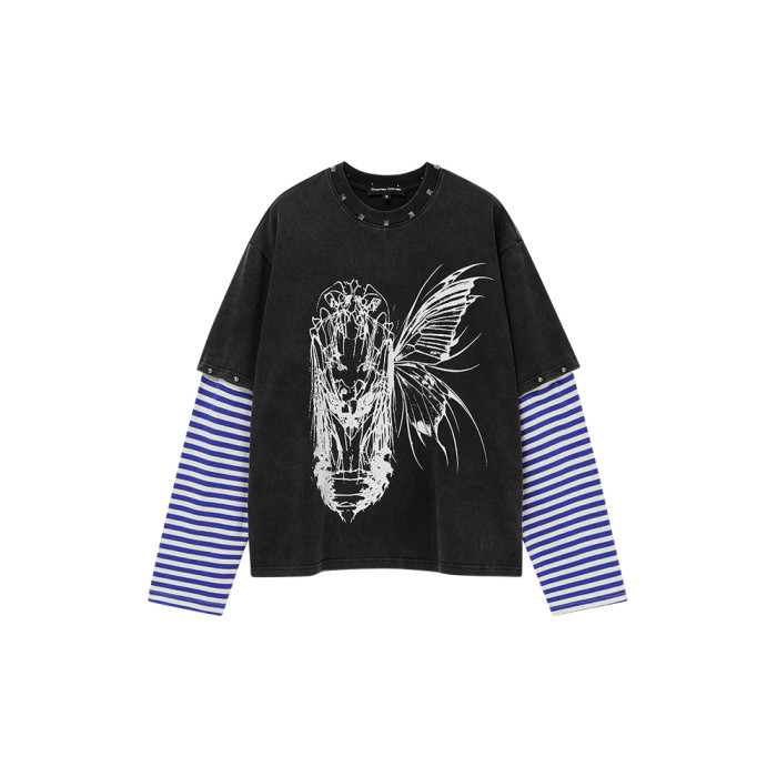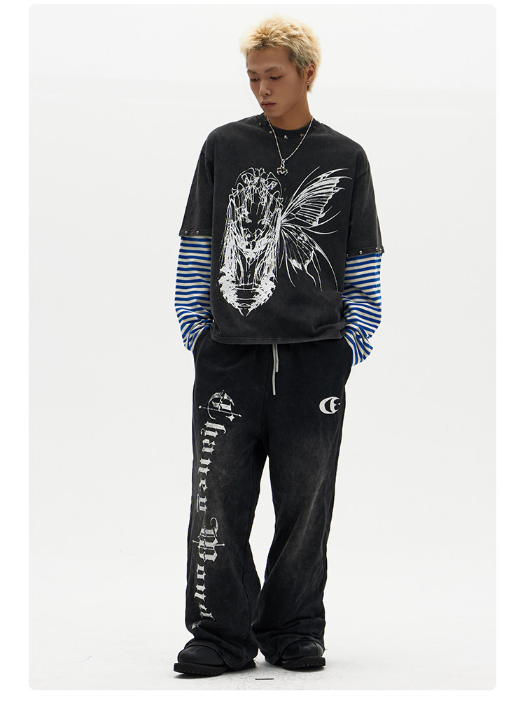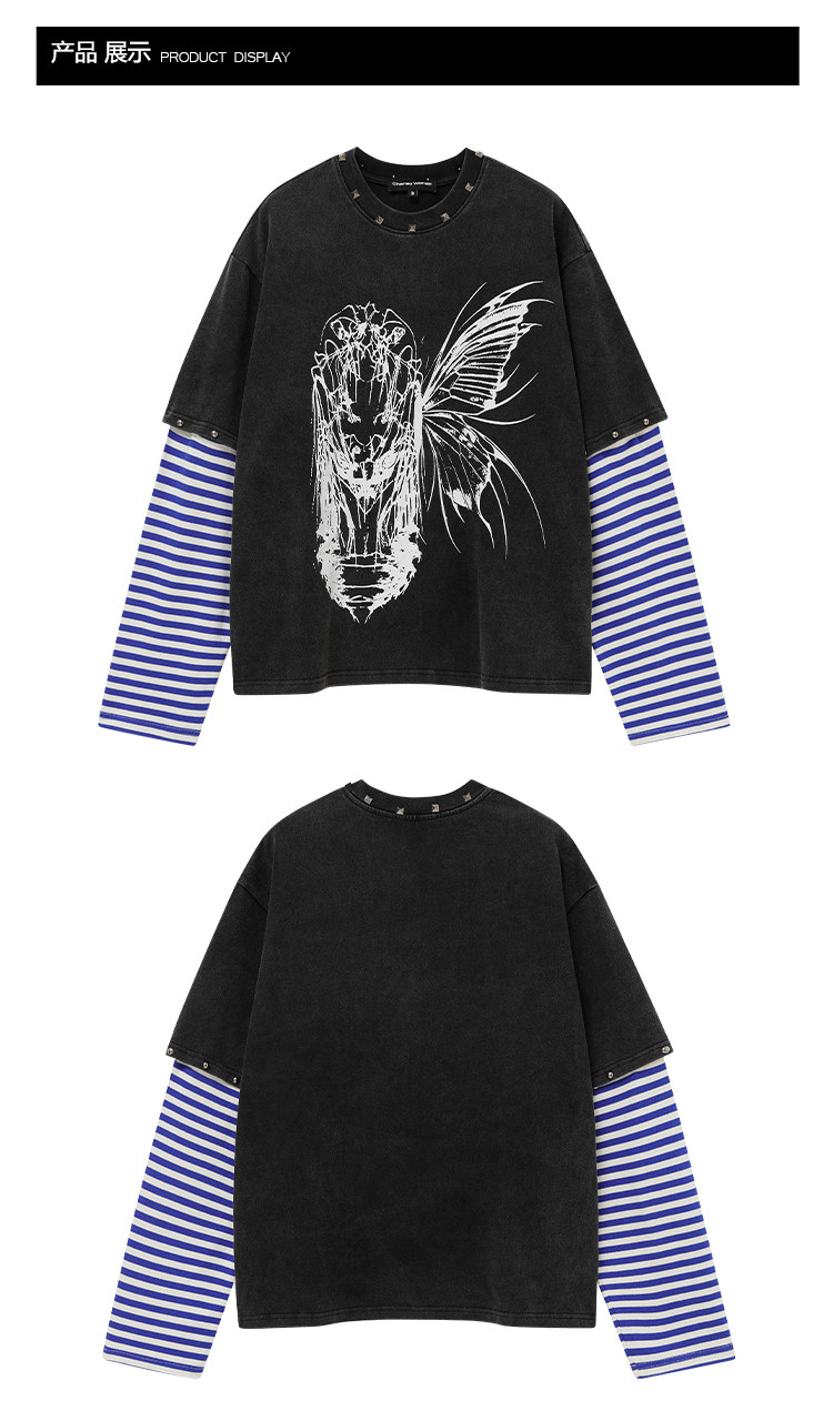 ChaneyWondo閾限之蝶-可拆卸假兩件衛衣寬松圓領潮牌高街印花上衣