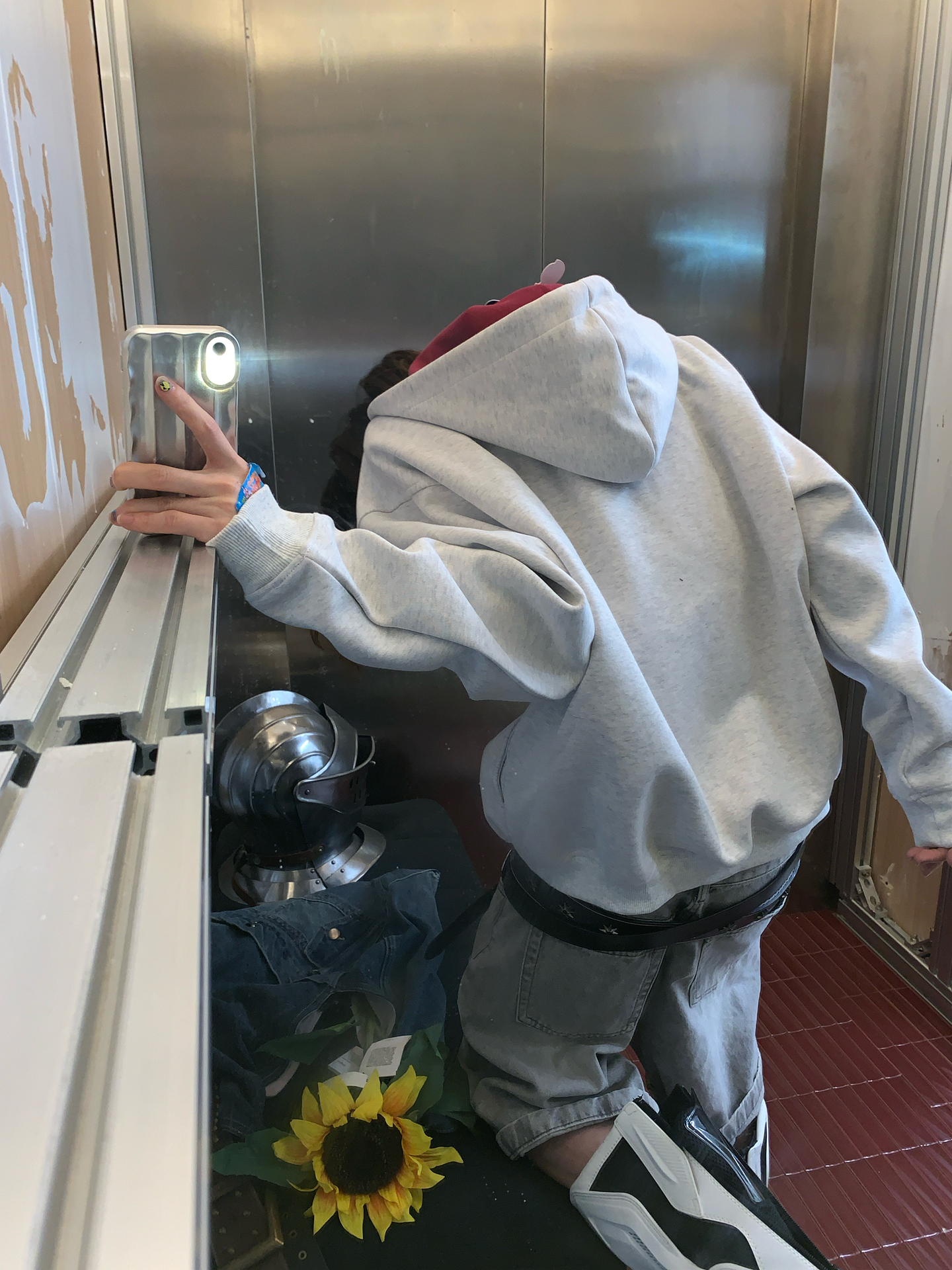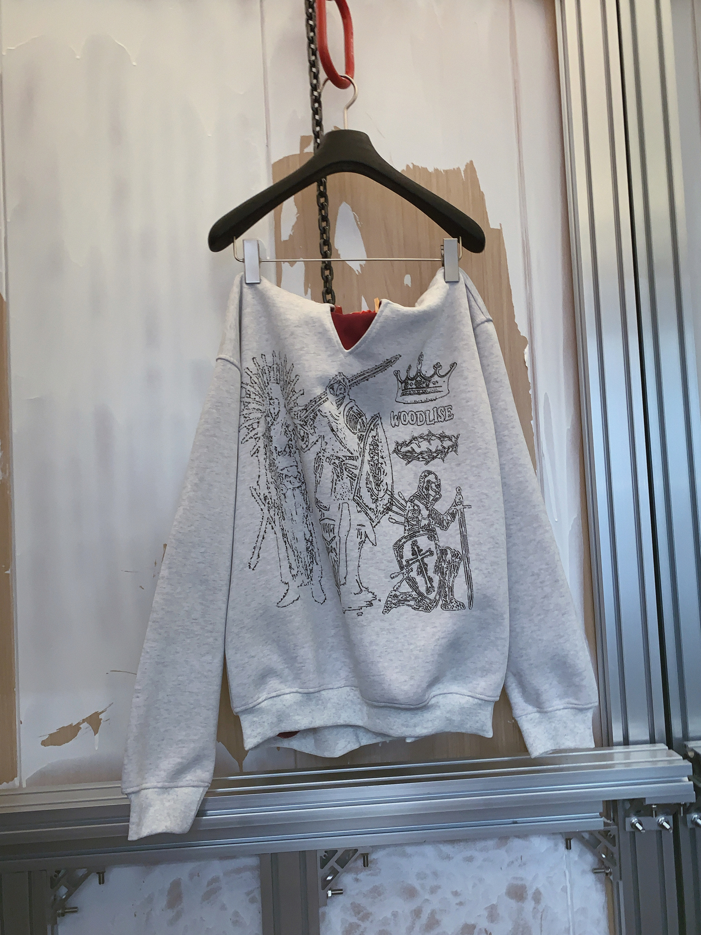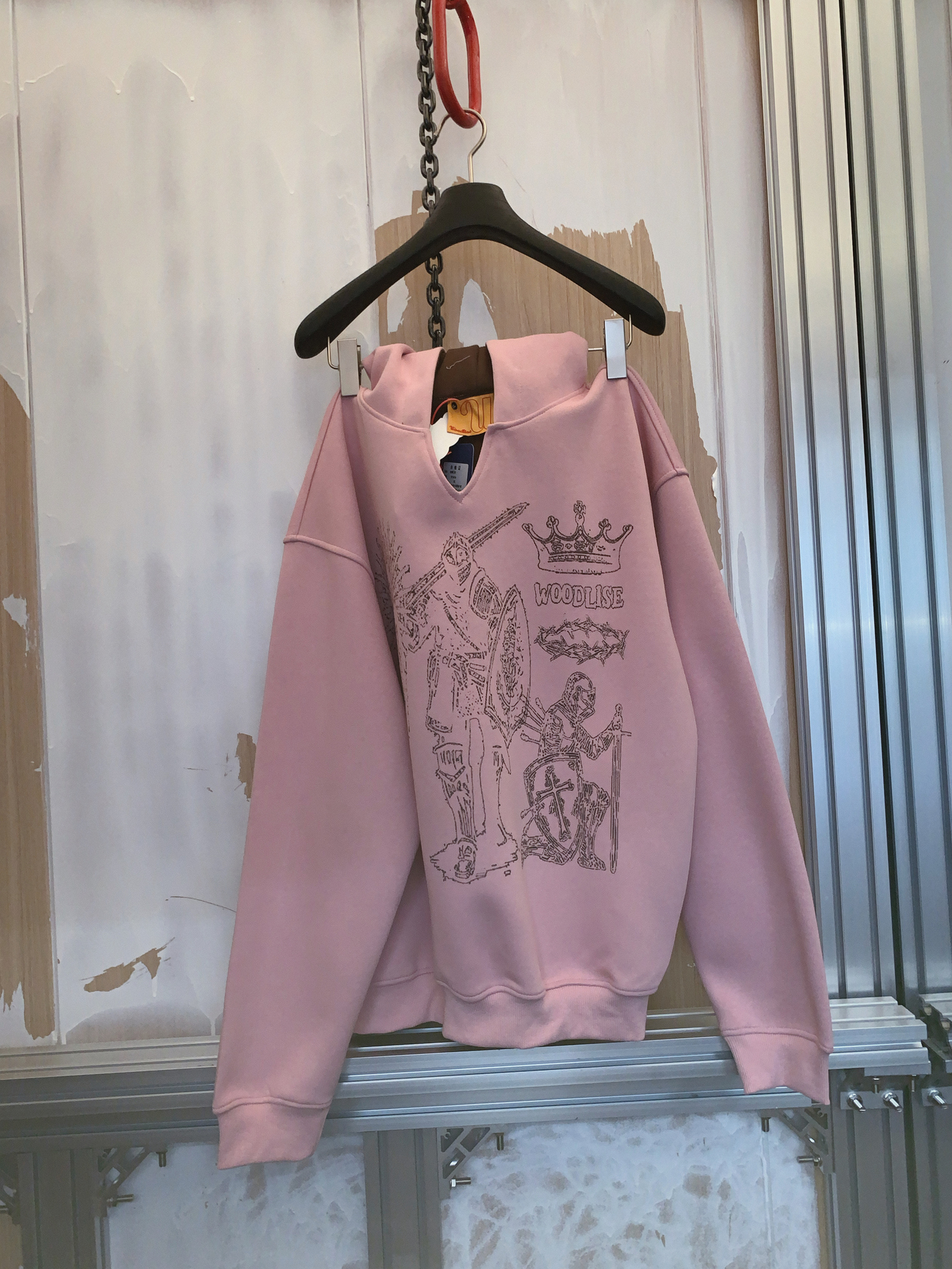 阿荒與阿鹵*美式盾牌騎士筆繪印花復古寬連帽V領設計感衛衣外套