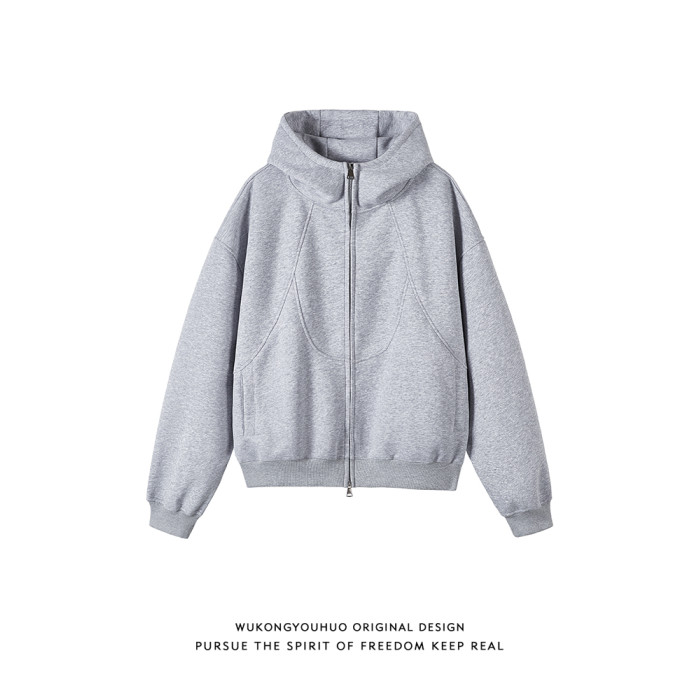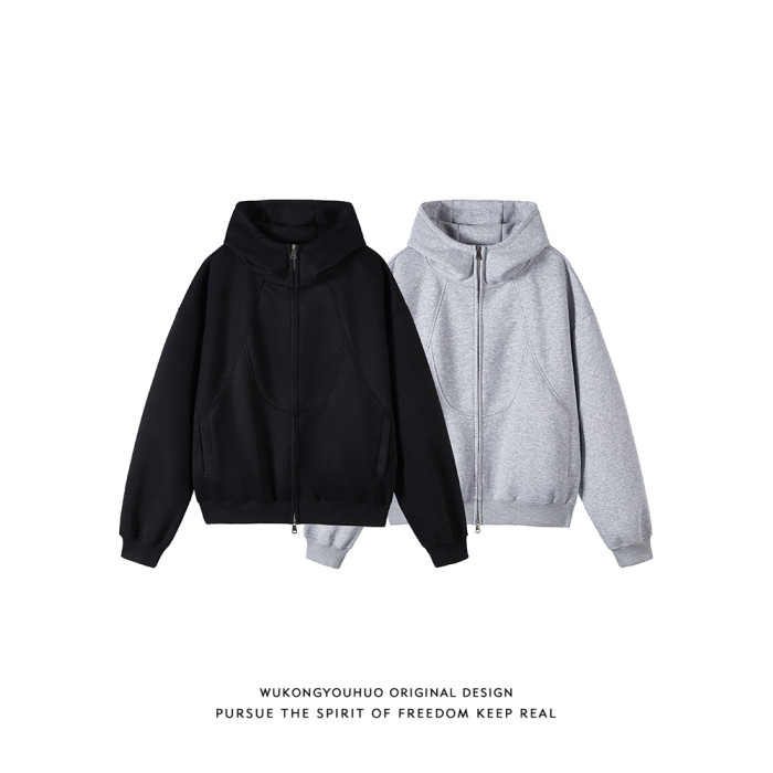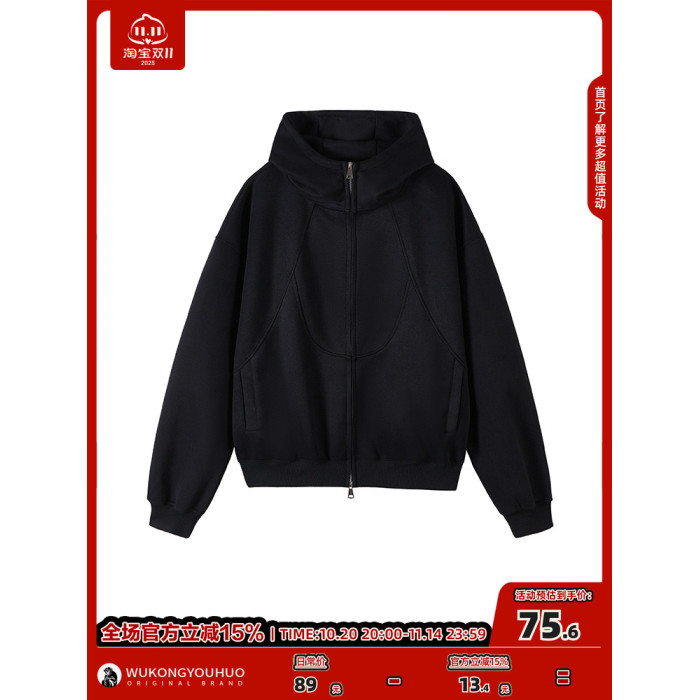悟空有貨重磅設計感解搆拼接開衫連帽衛衣男潮牌寬松休閒百搭外套