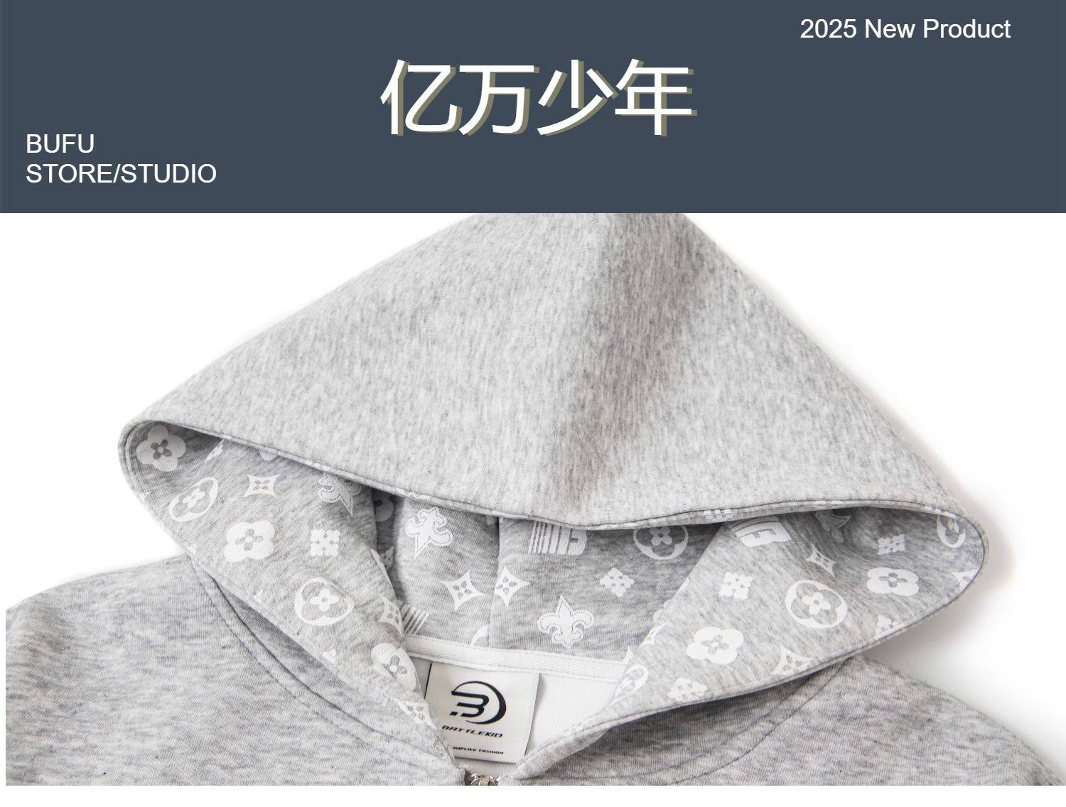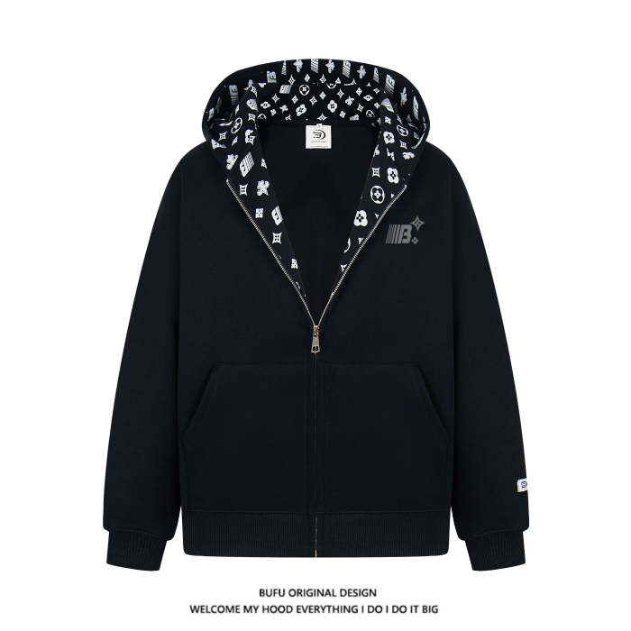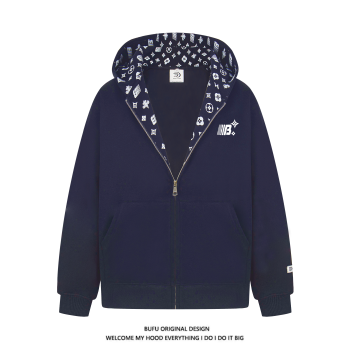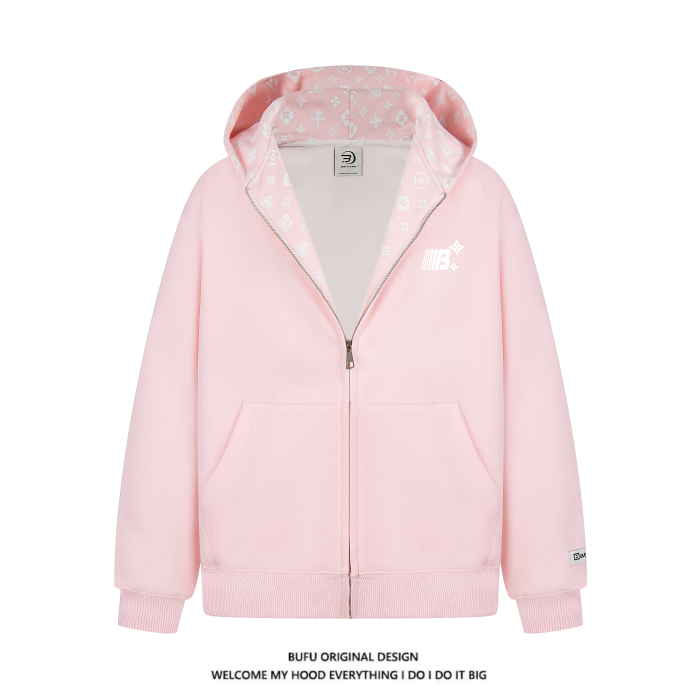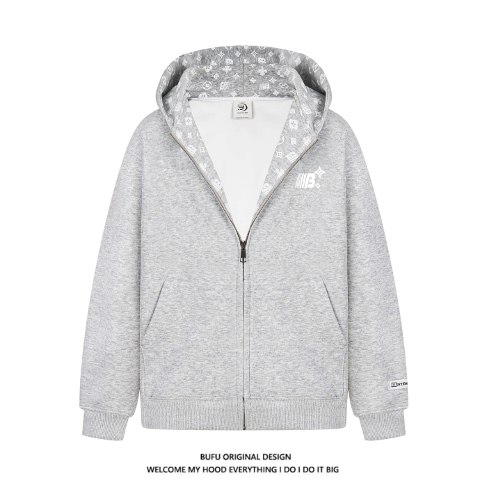 億萬少年BUFU美式印花開衫連帽衛衣外套男女秋季潮牌情侶拉鍊上衣