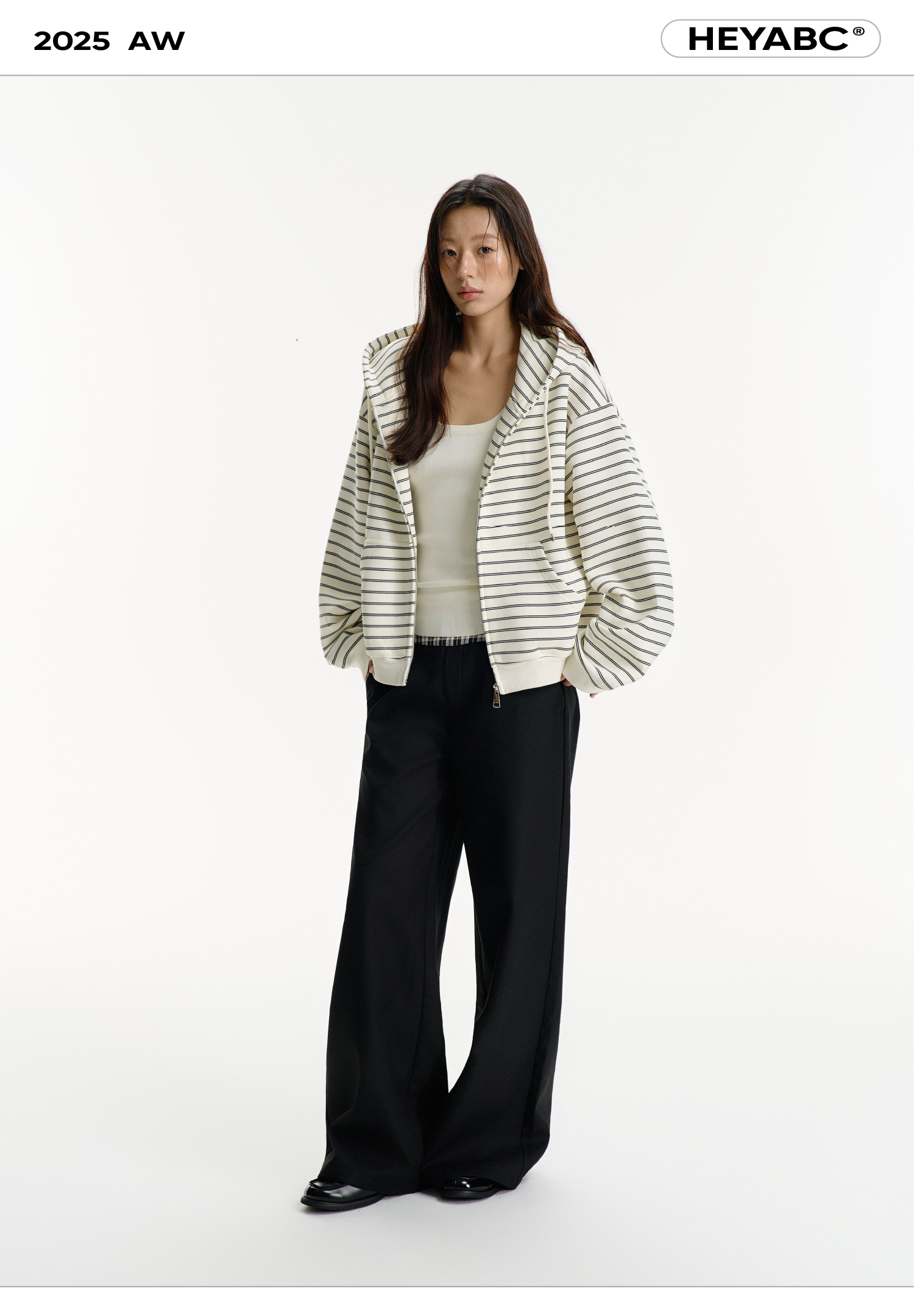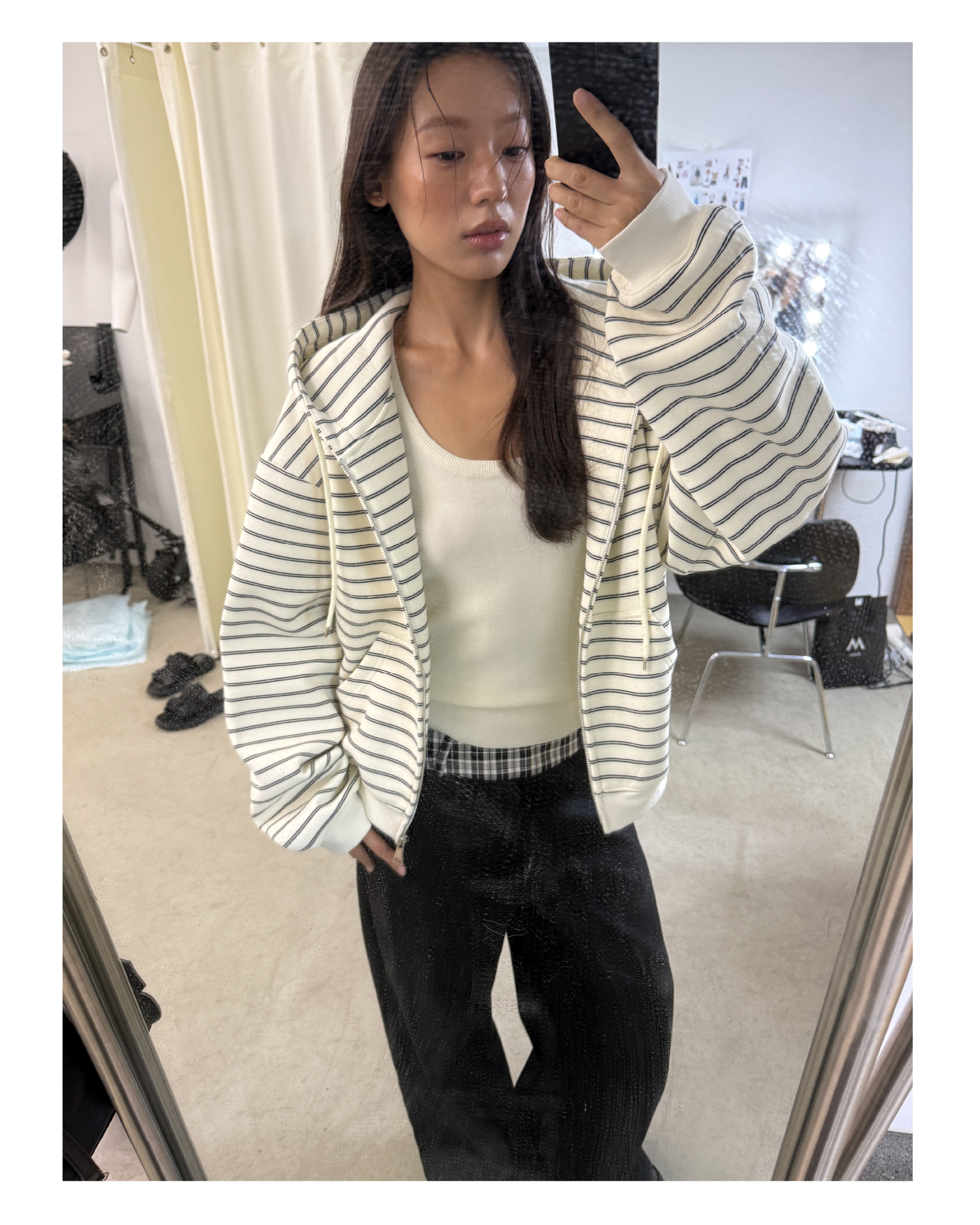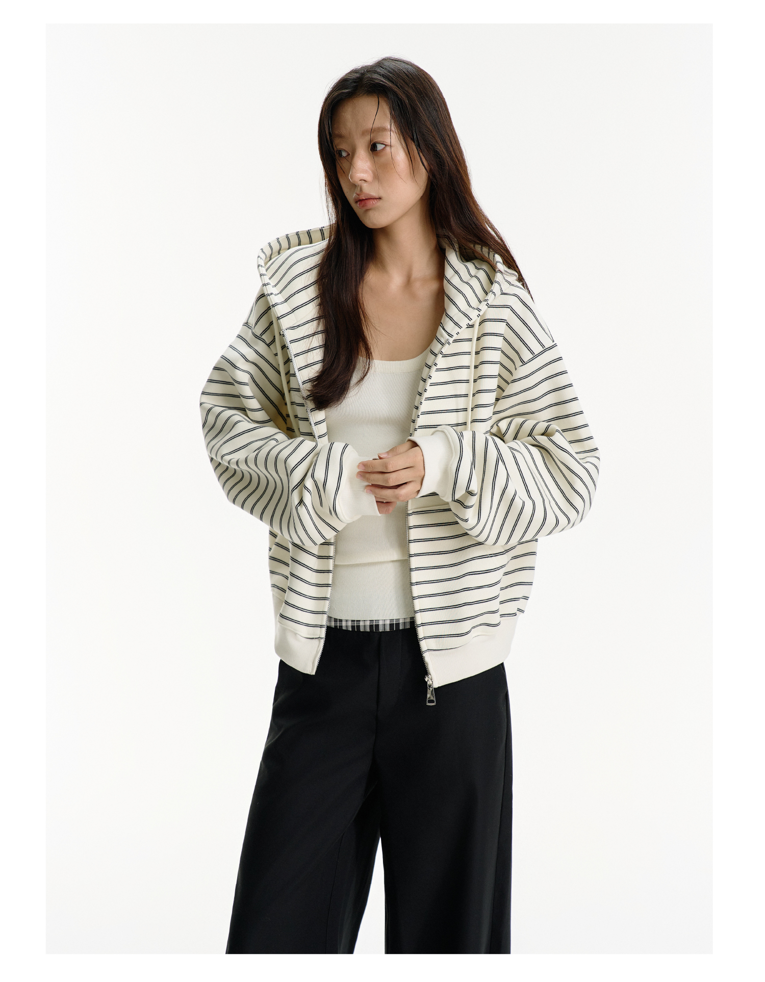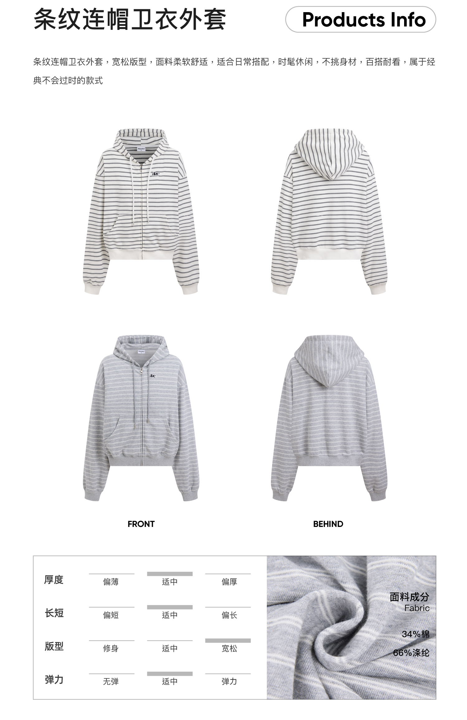 HEYABC 秋冬條紋連帽衛衣開衫女2025寬松休閒百搭慵懶風外套上衣