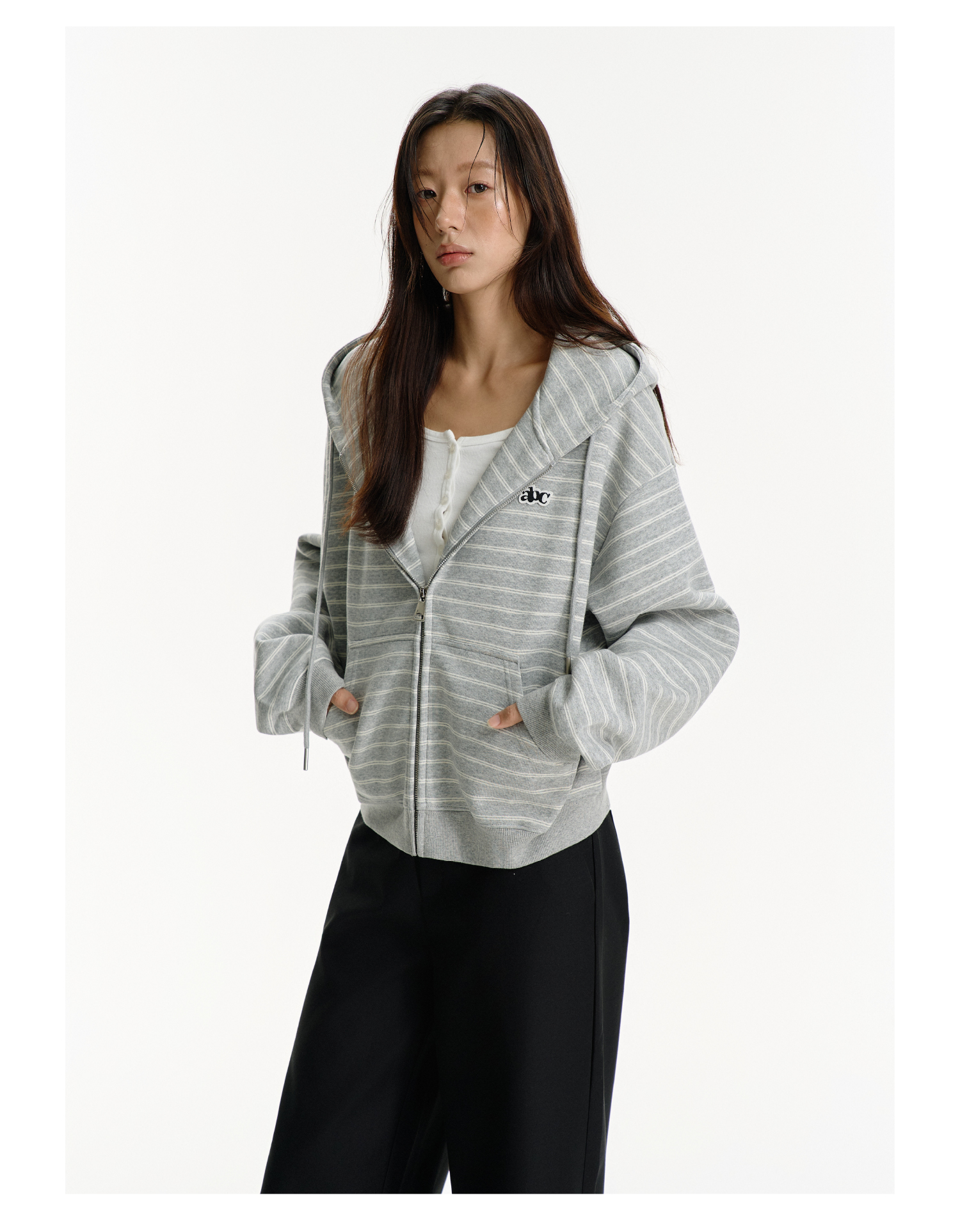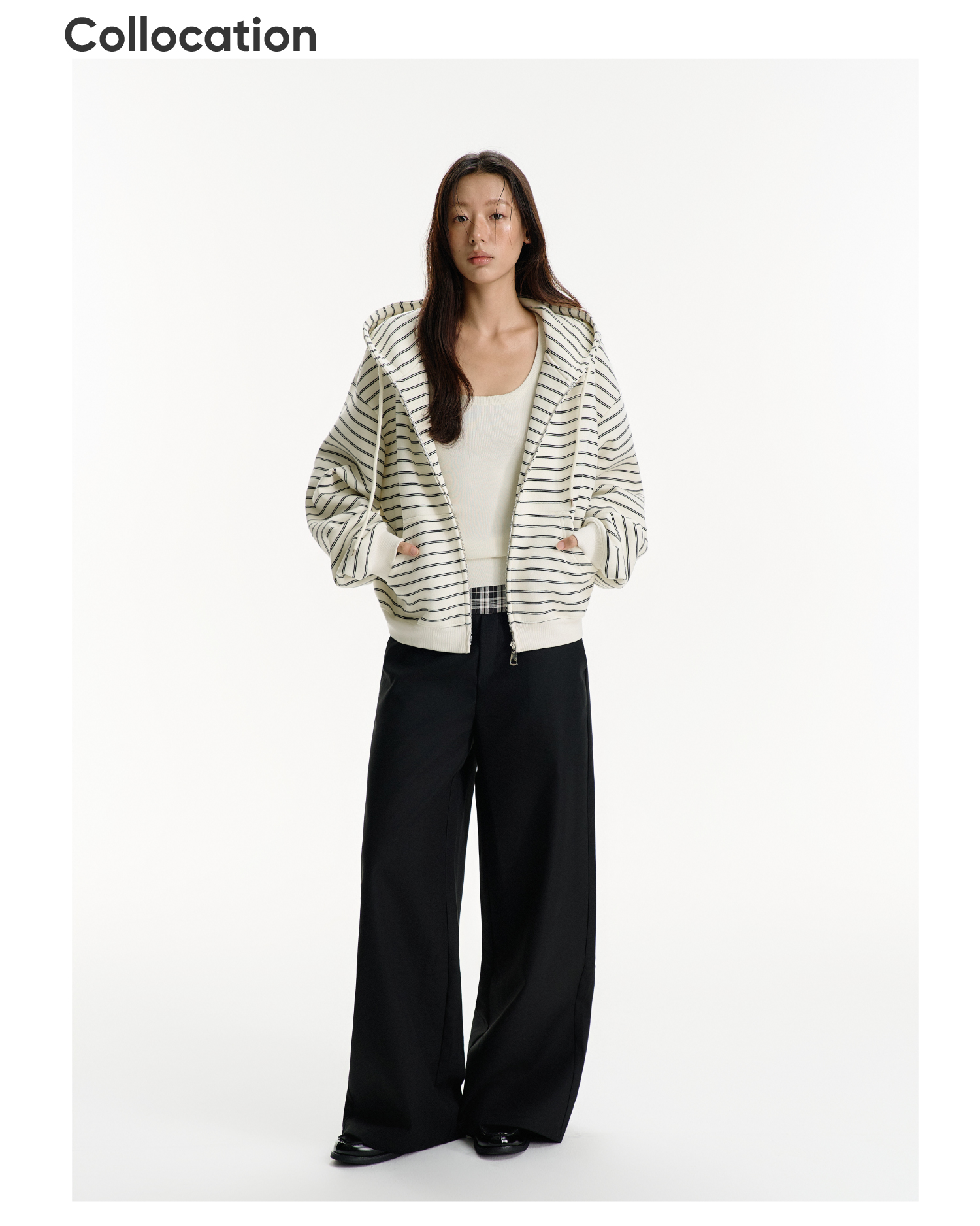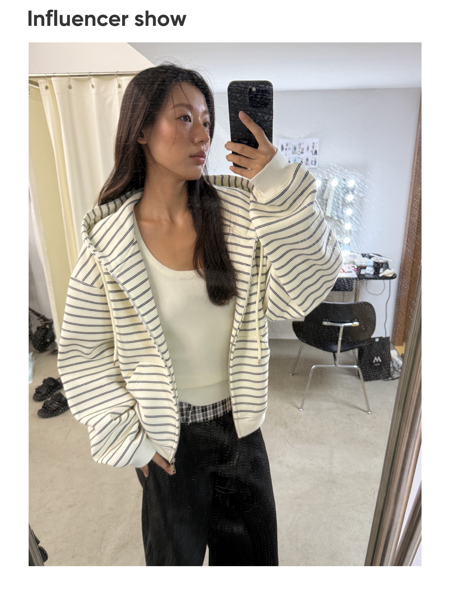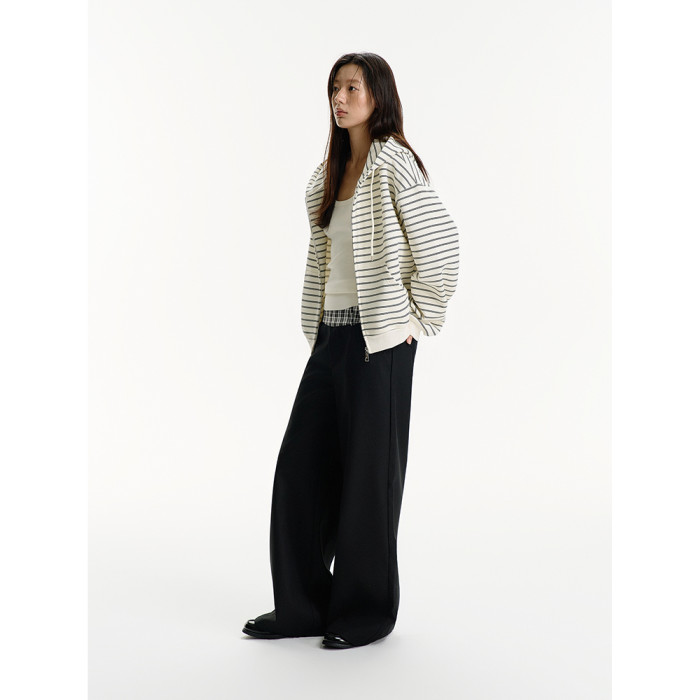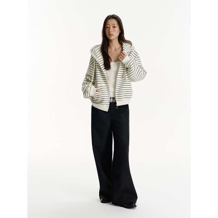 HEYABC 秋冬條紋連帽衛衣開衫女2025寬松休閒百搭慵懶風外套上衣