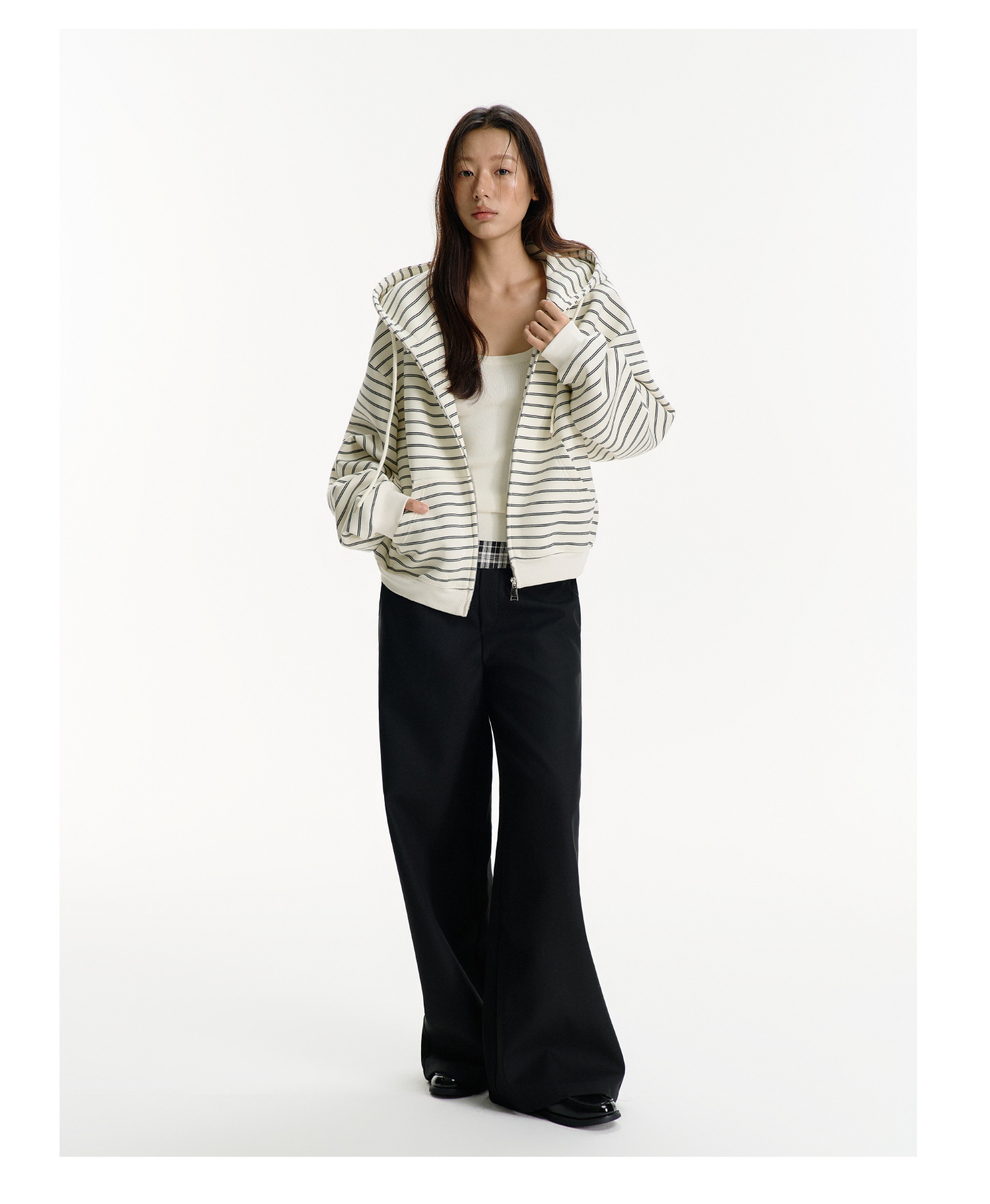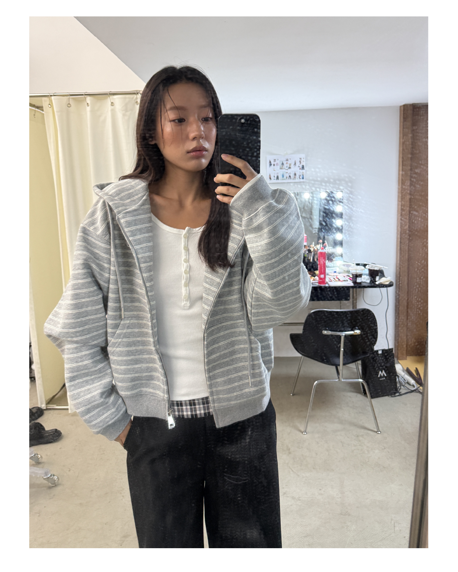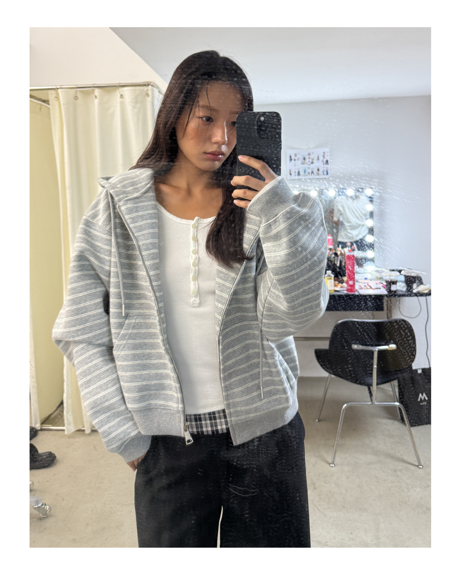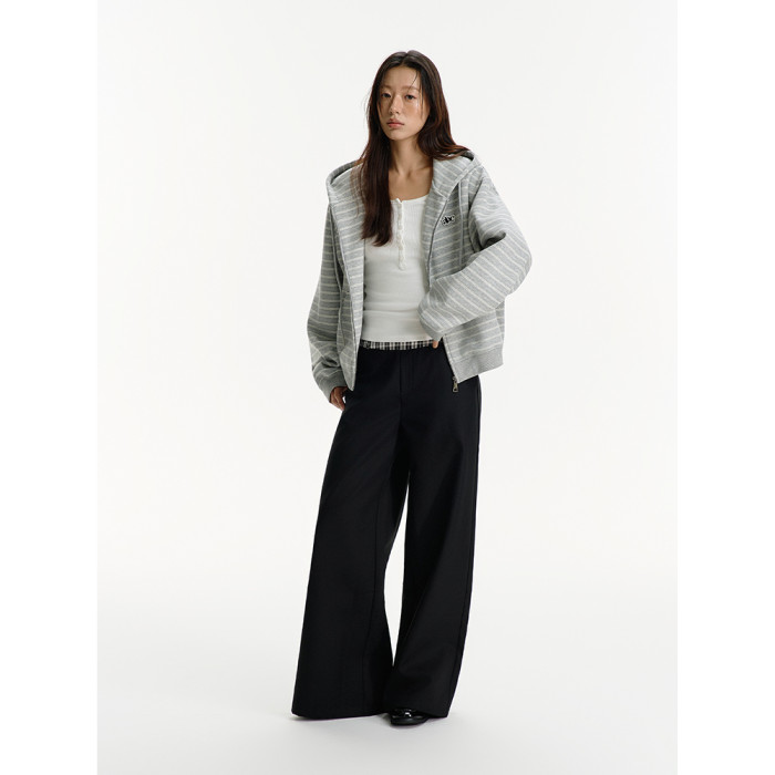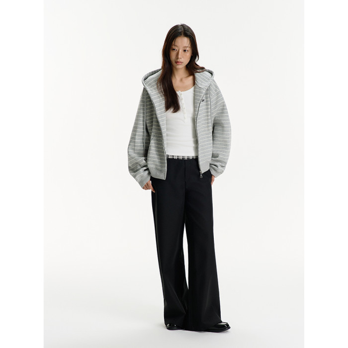 HEYABC 秋冬條紋連帽衛衣開衫女2025寬松休閒百搭慵懶風外套上衣