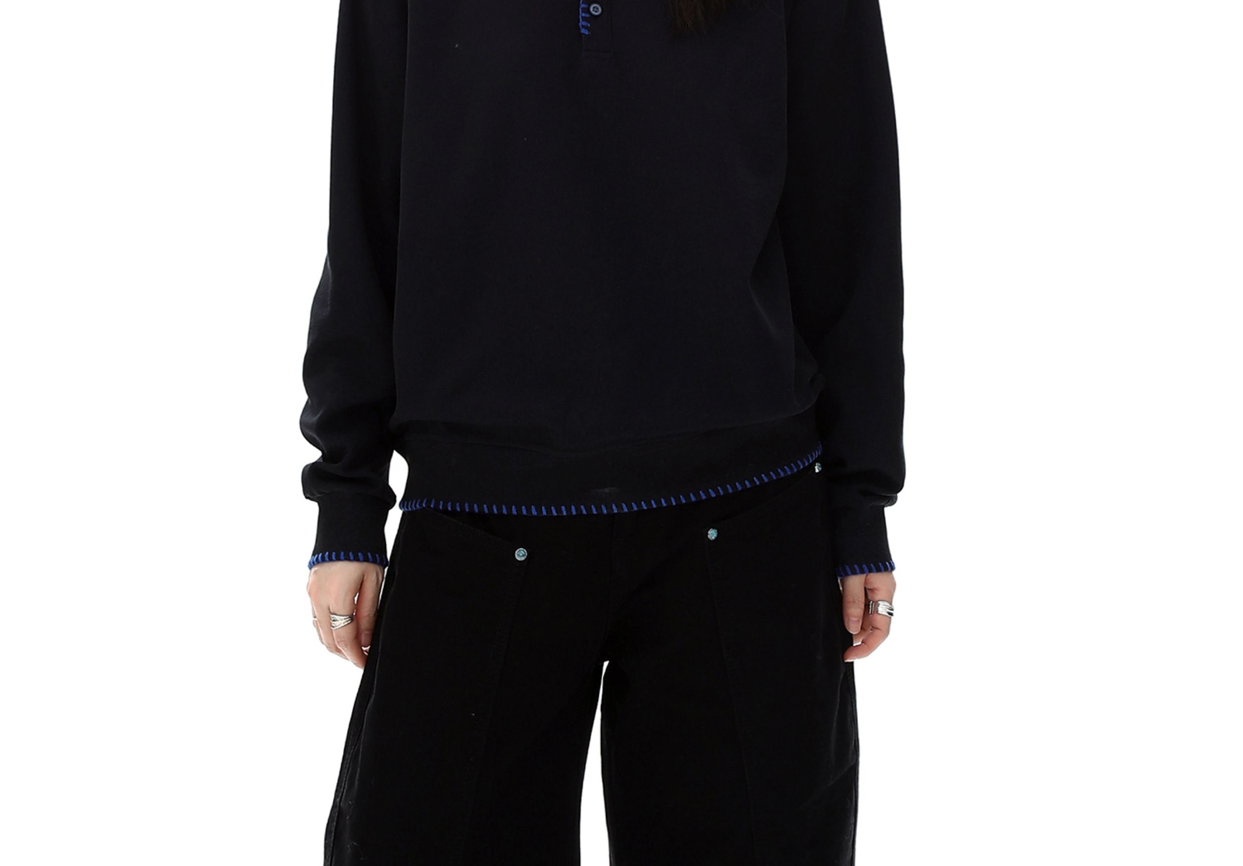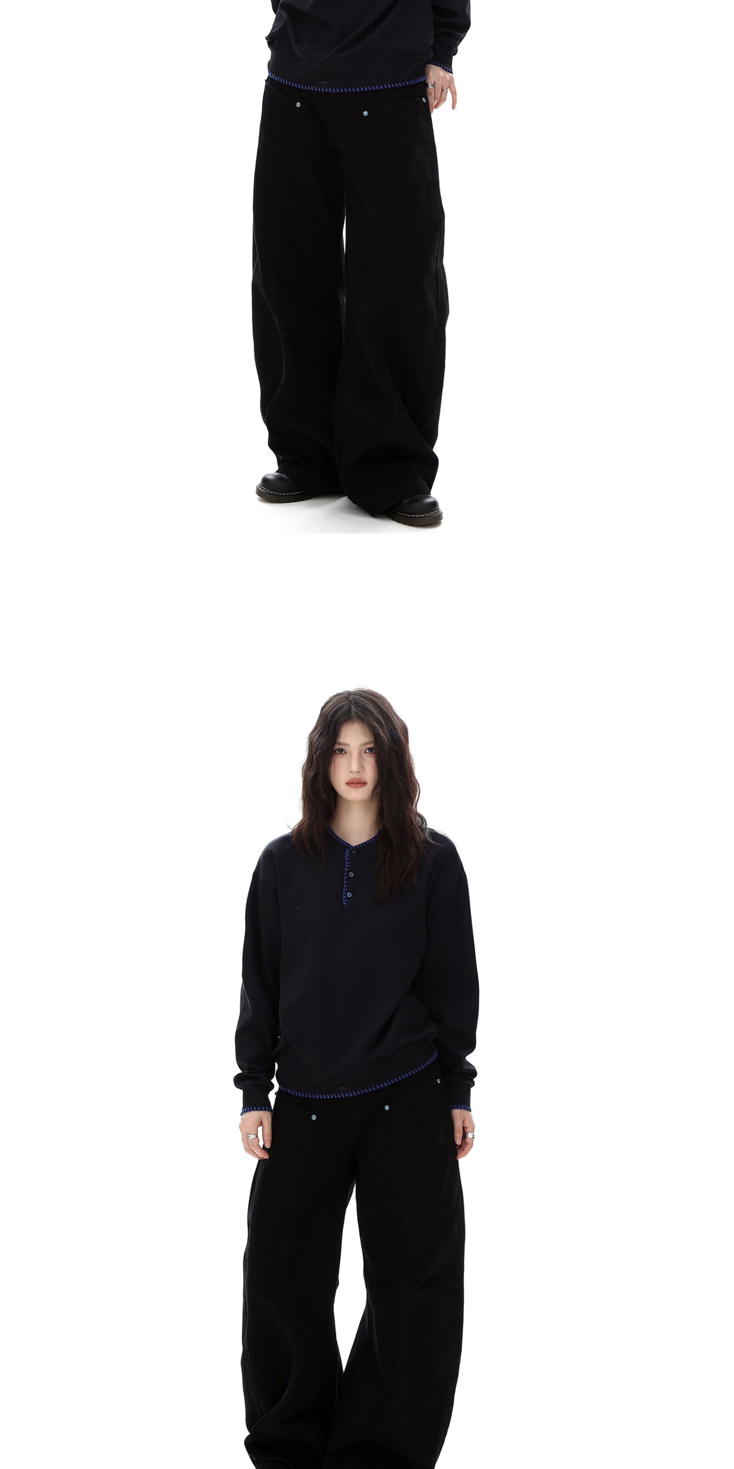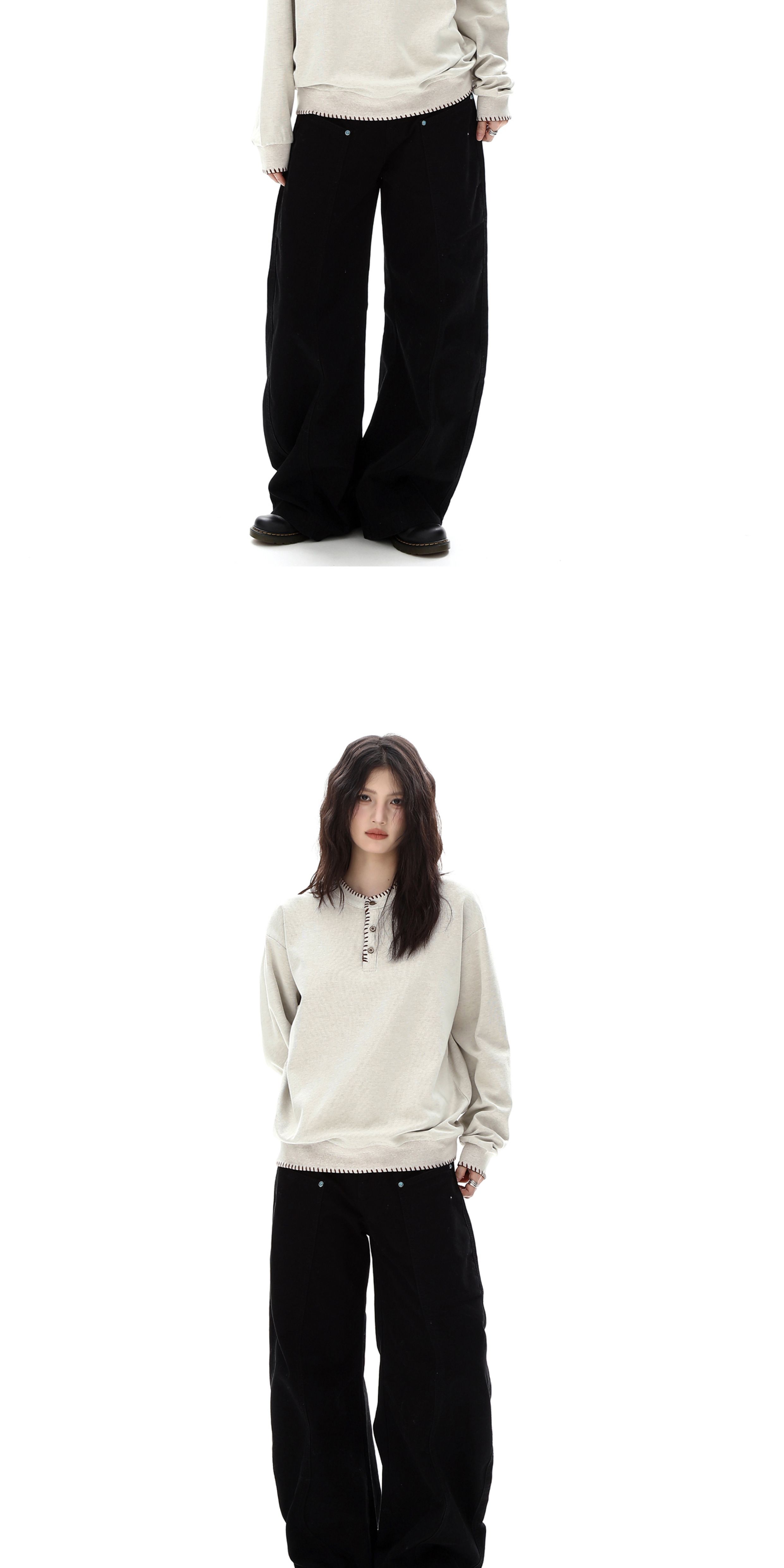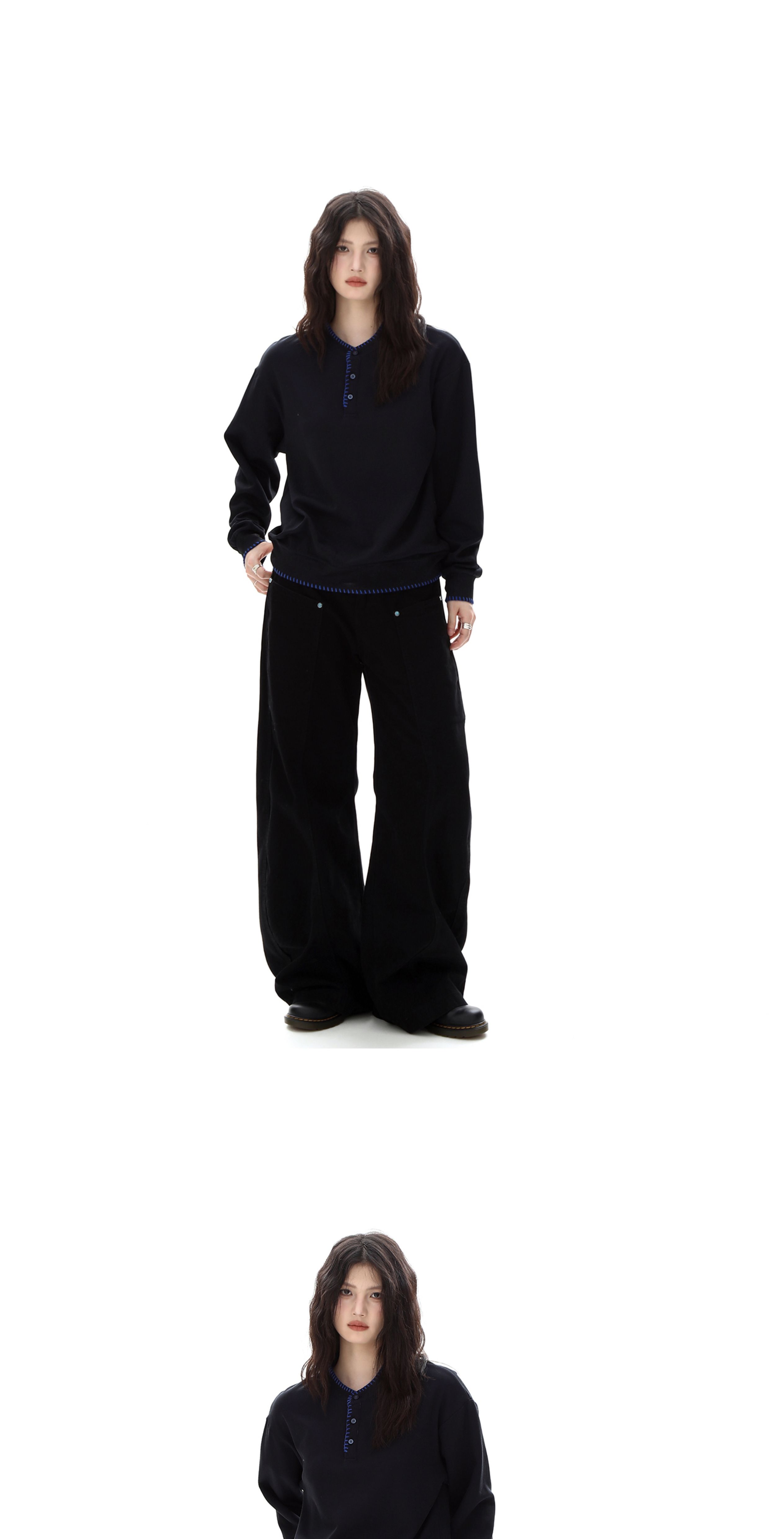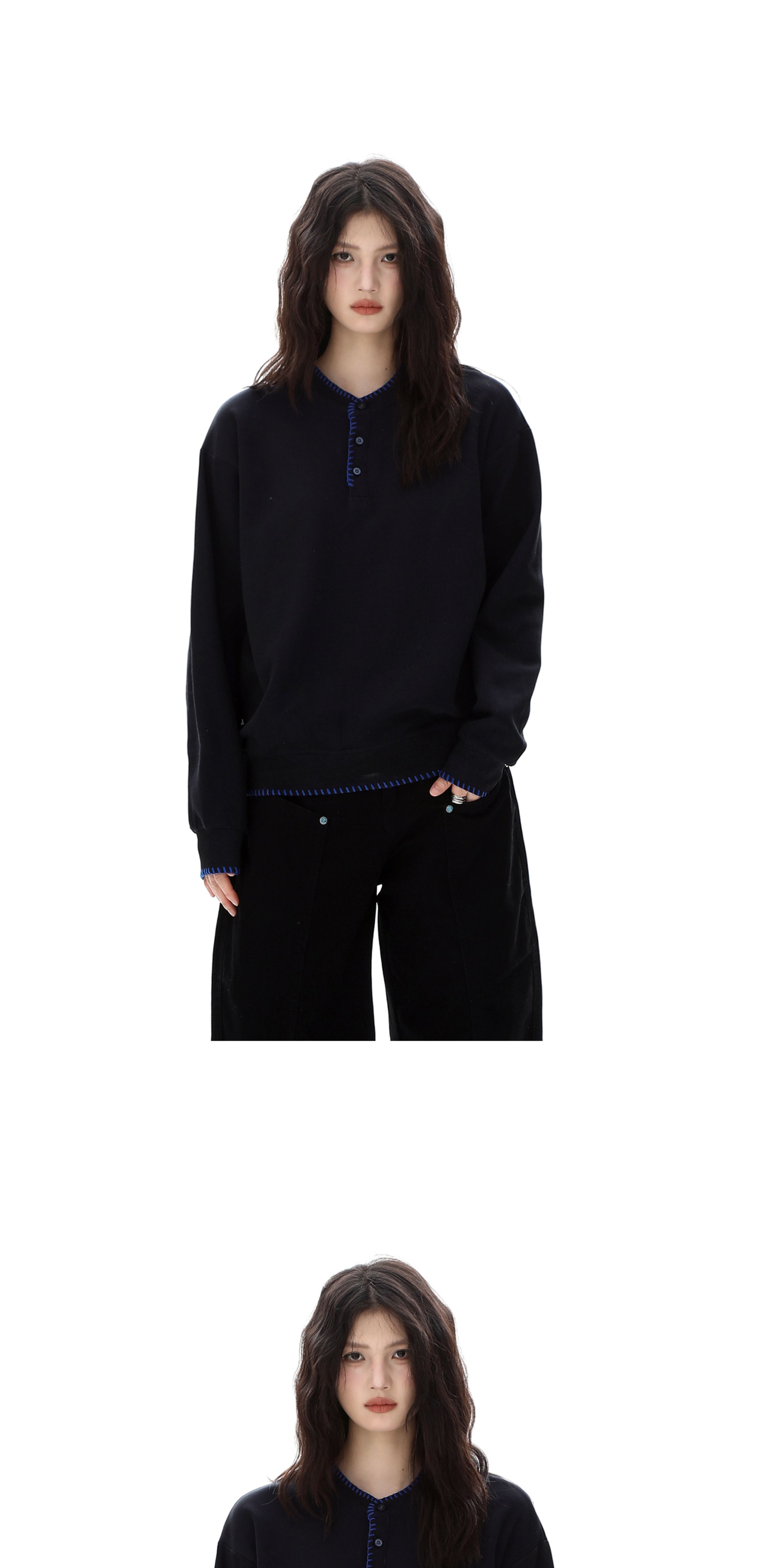 AFOEOT秋季美式手縫線亨利領針織衛衣男女老錢風休閒寬松長袖上衣