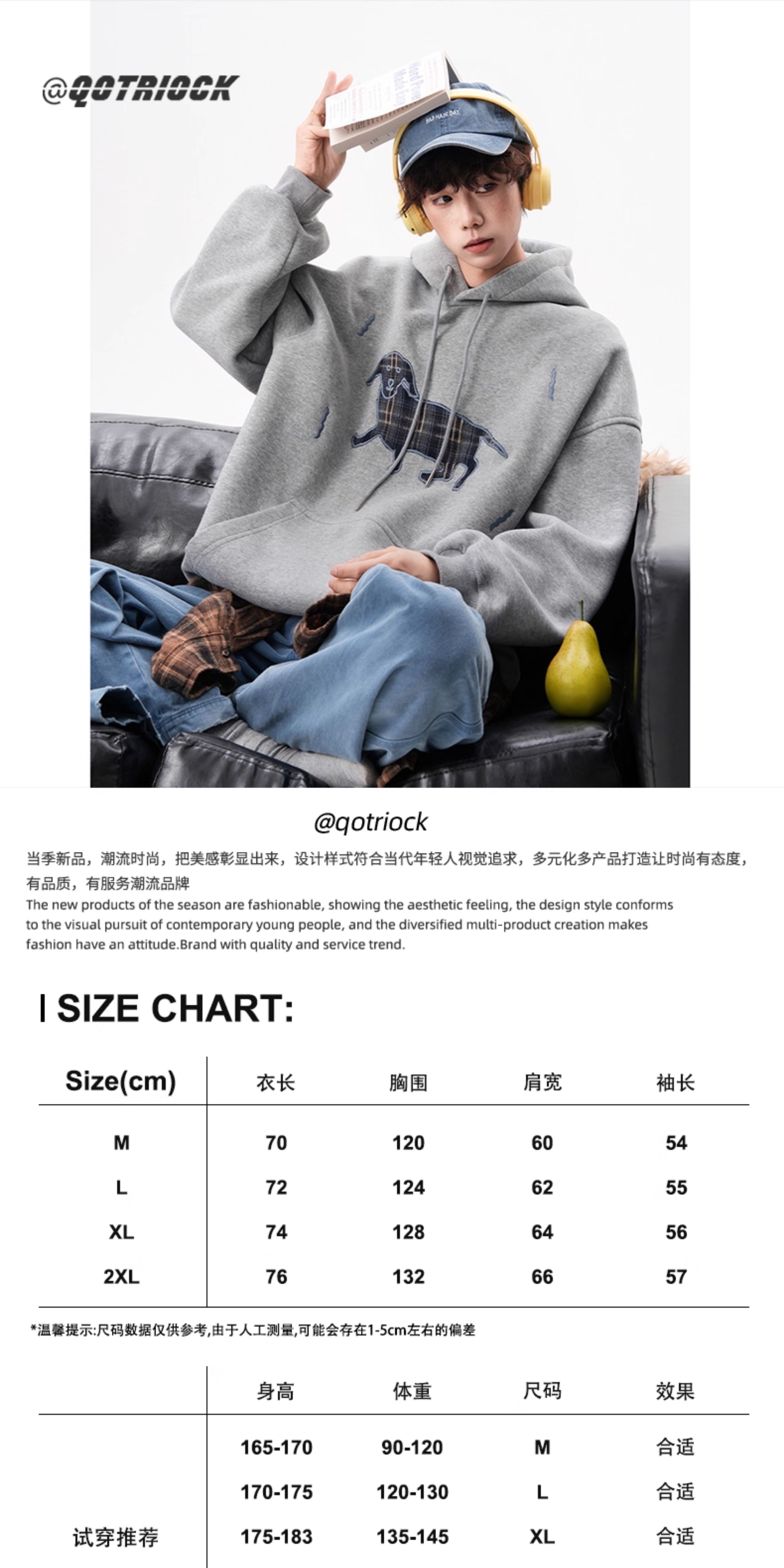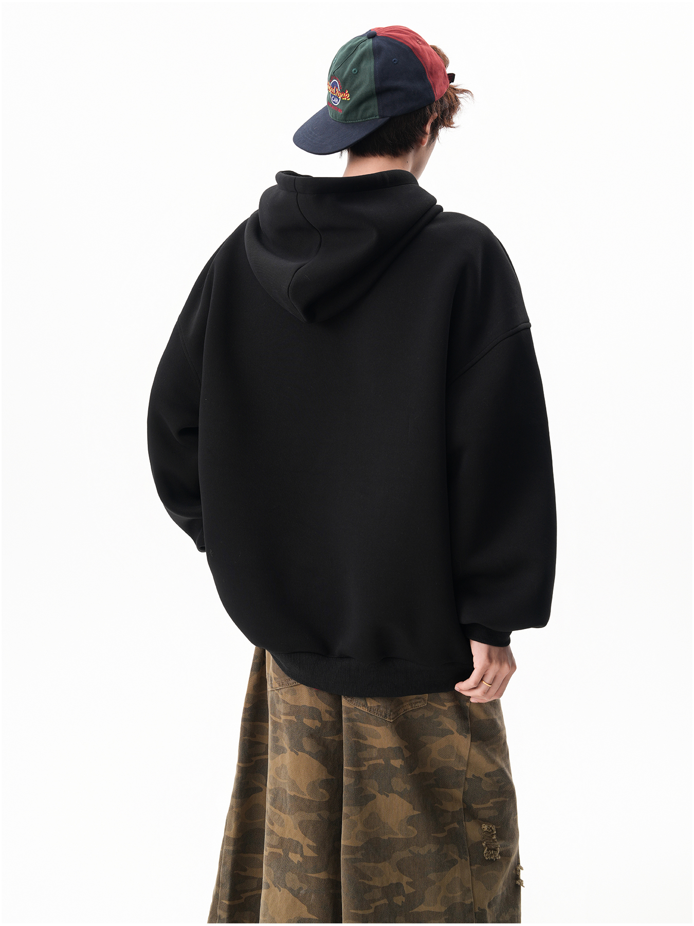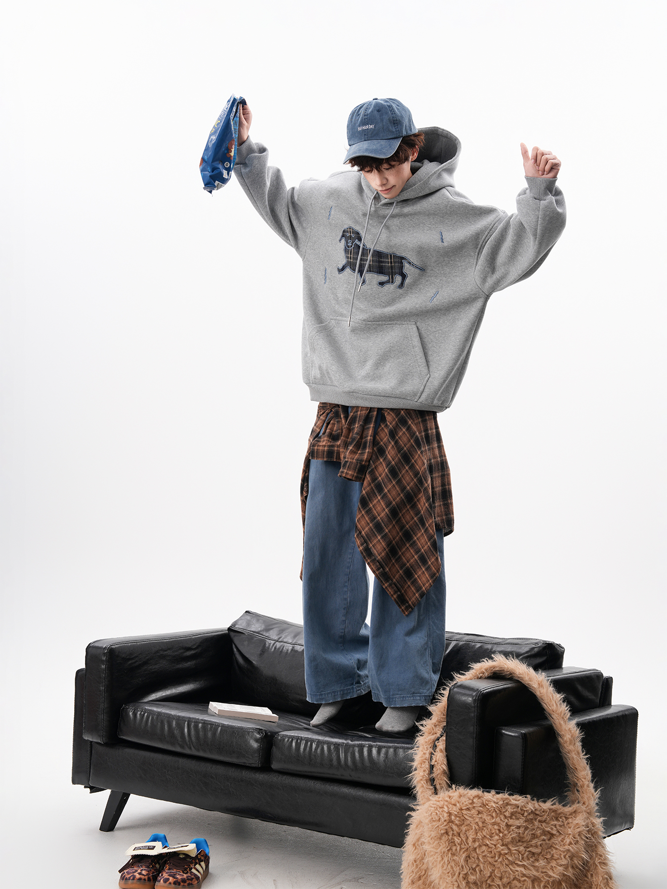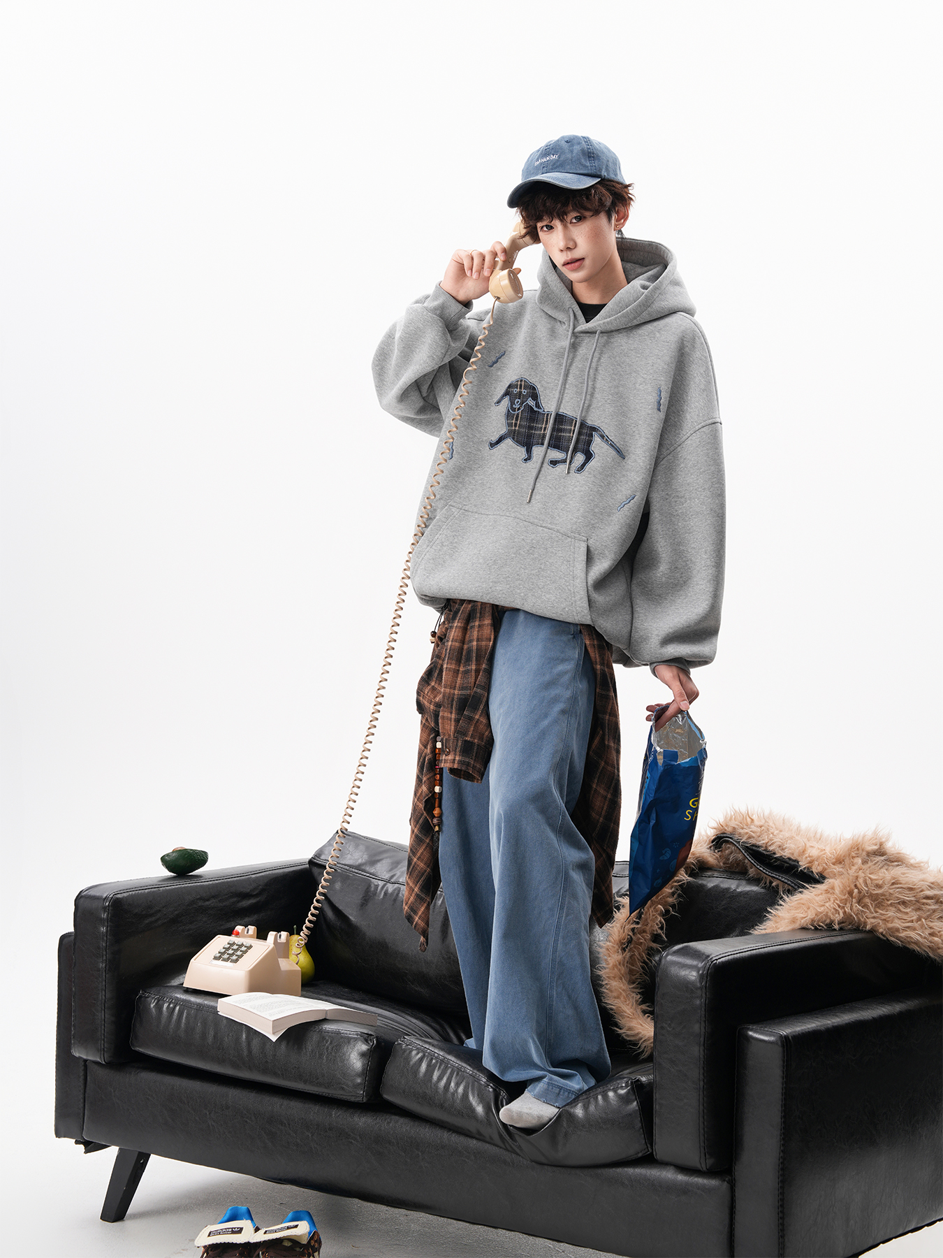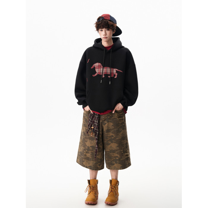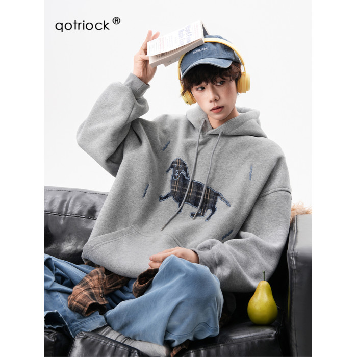 美式小狗貼布刺綉連帽衛衣男秋季新款寬松休閒上衣設計感情侶外套