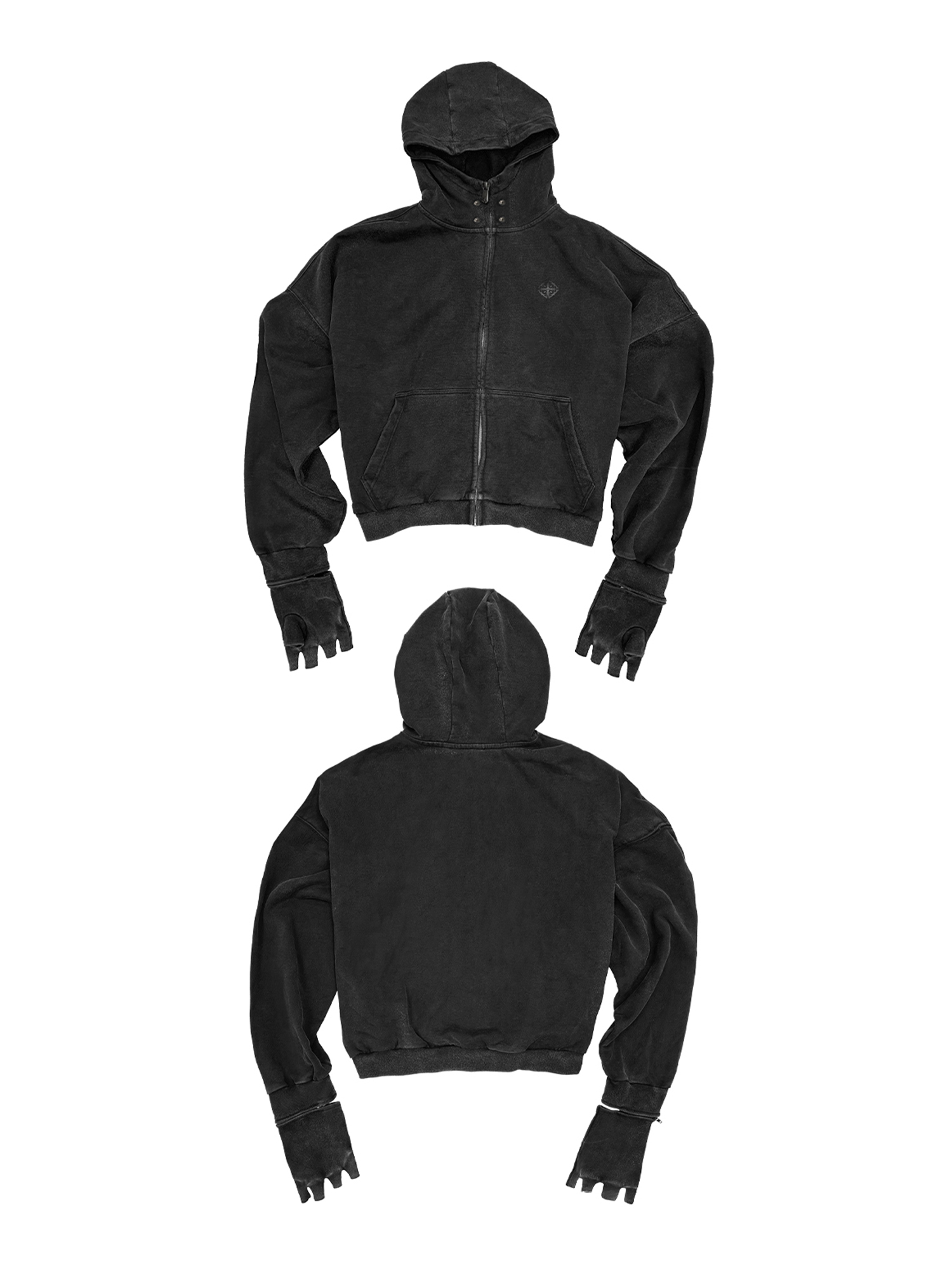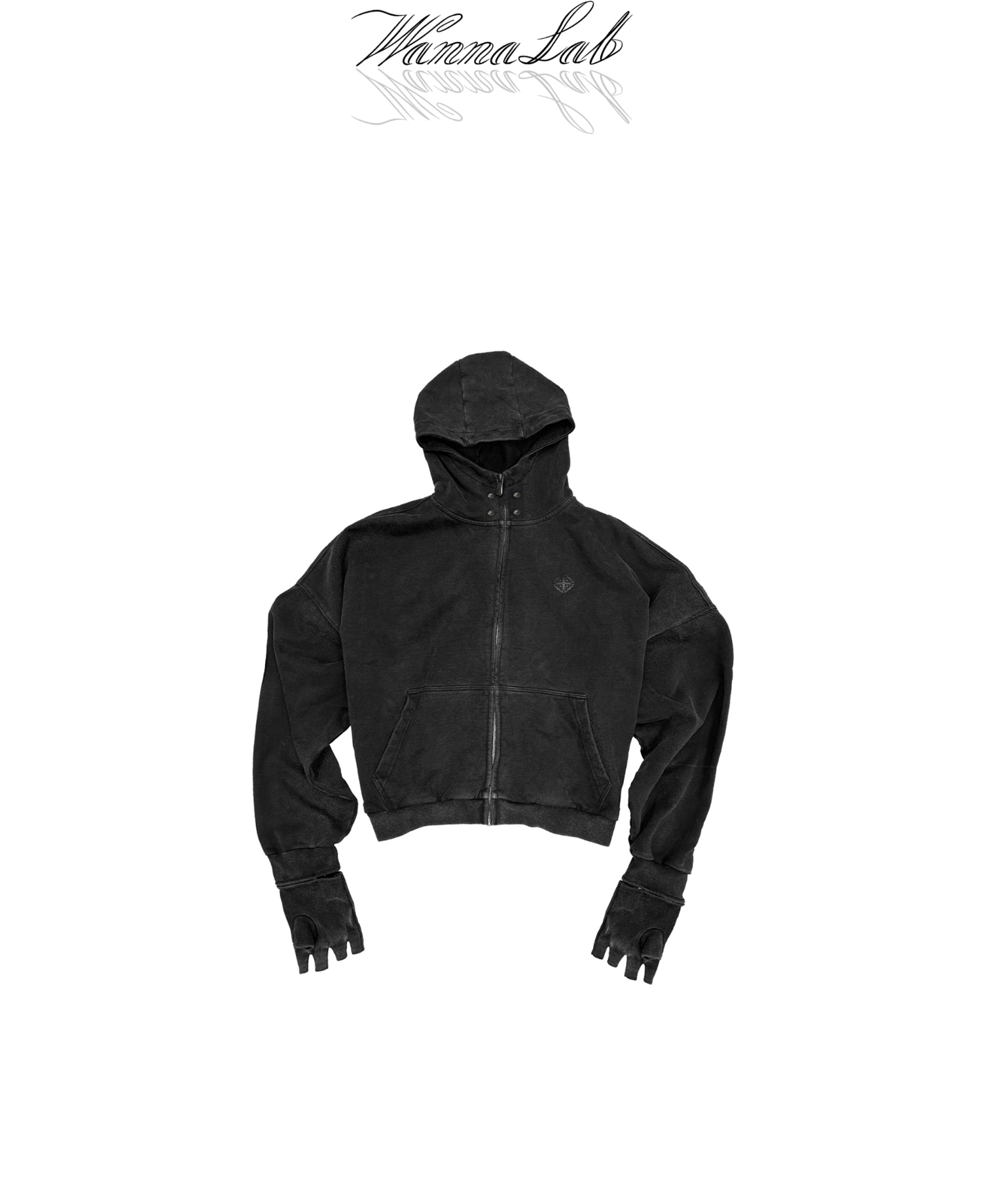 WANNA LAB 25FW拳擊手套刺綉鉚釘水洗做舊連帽衫衛衣boxy合體版型