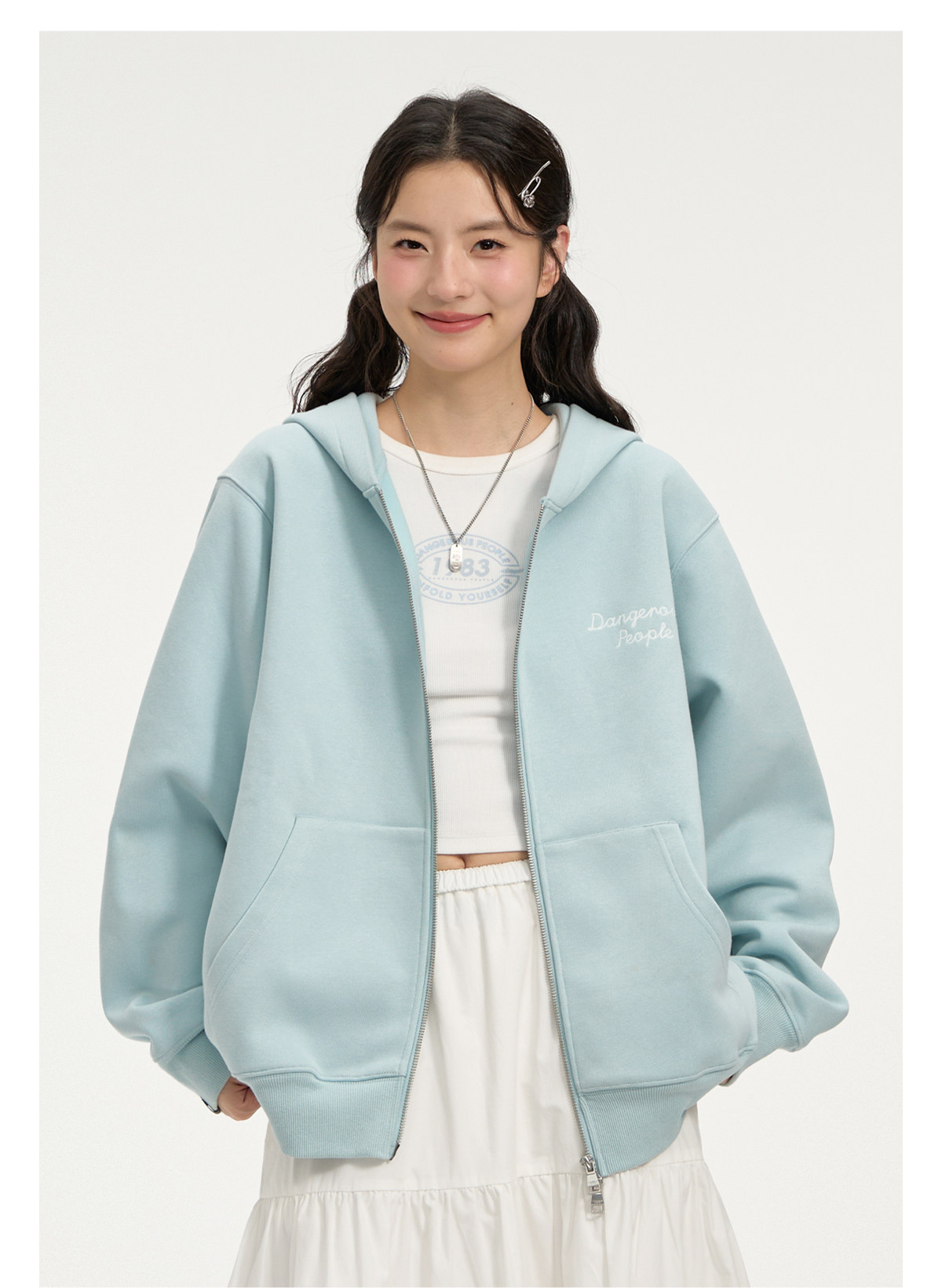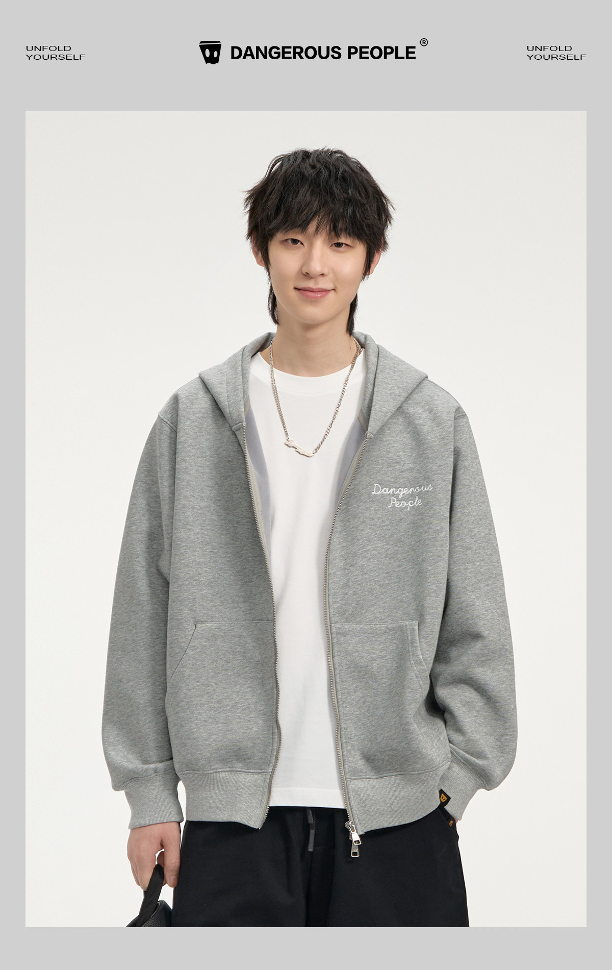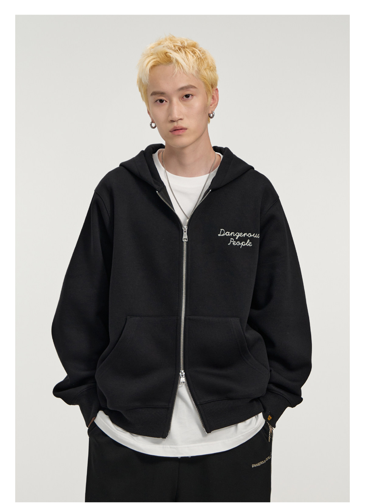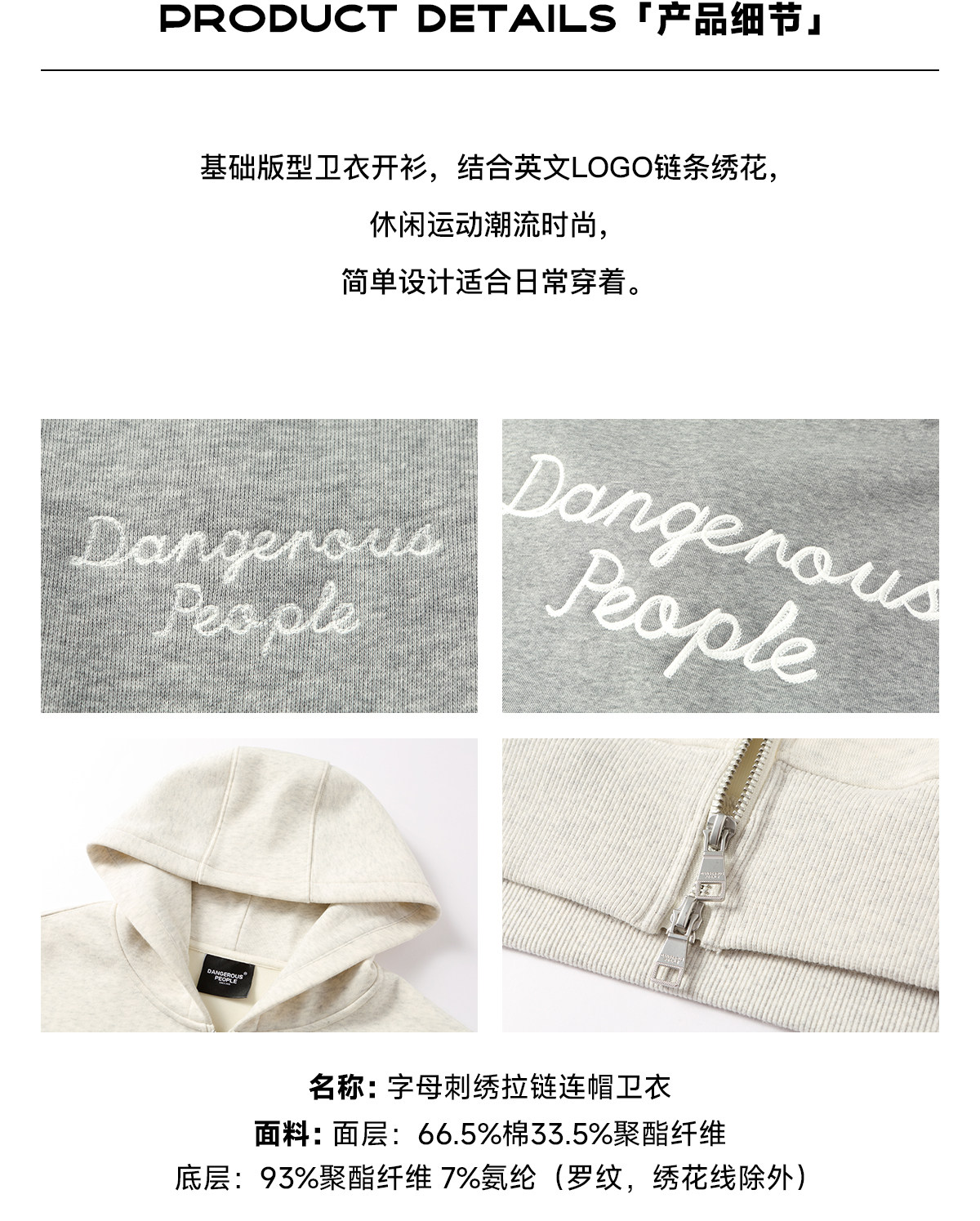 【明星同款】Dangerouspeople薛之謙dsp刺綉開衫加絨連帽衛衣